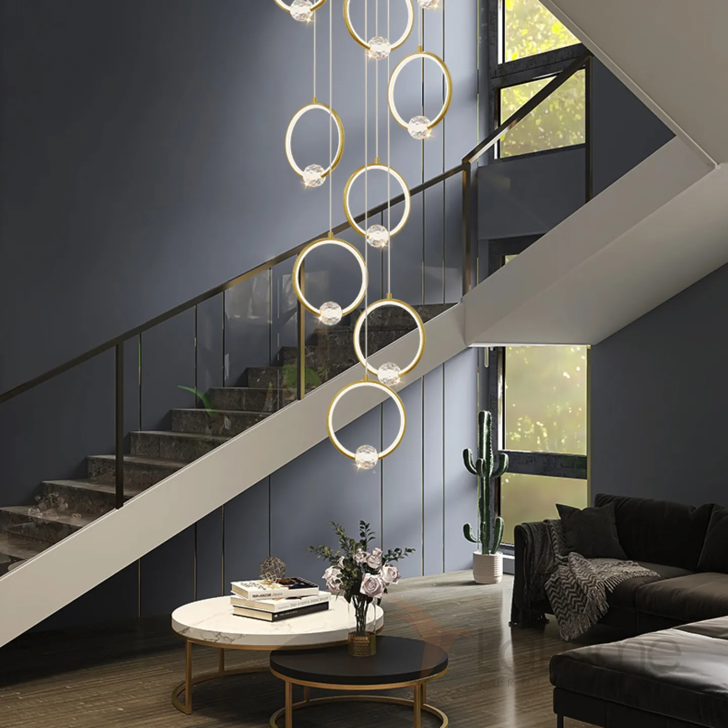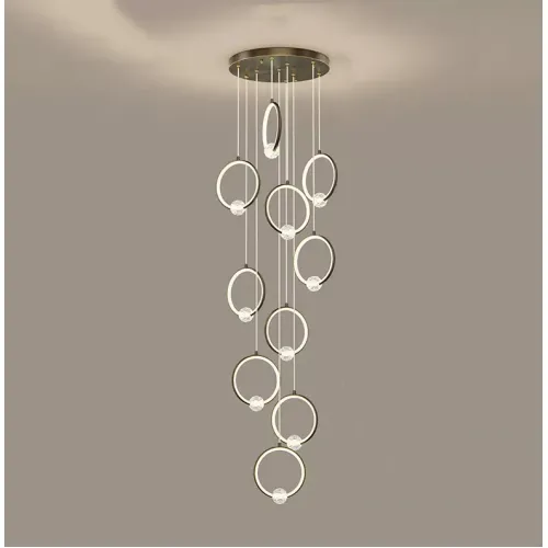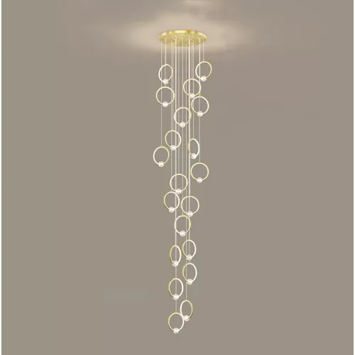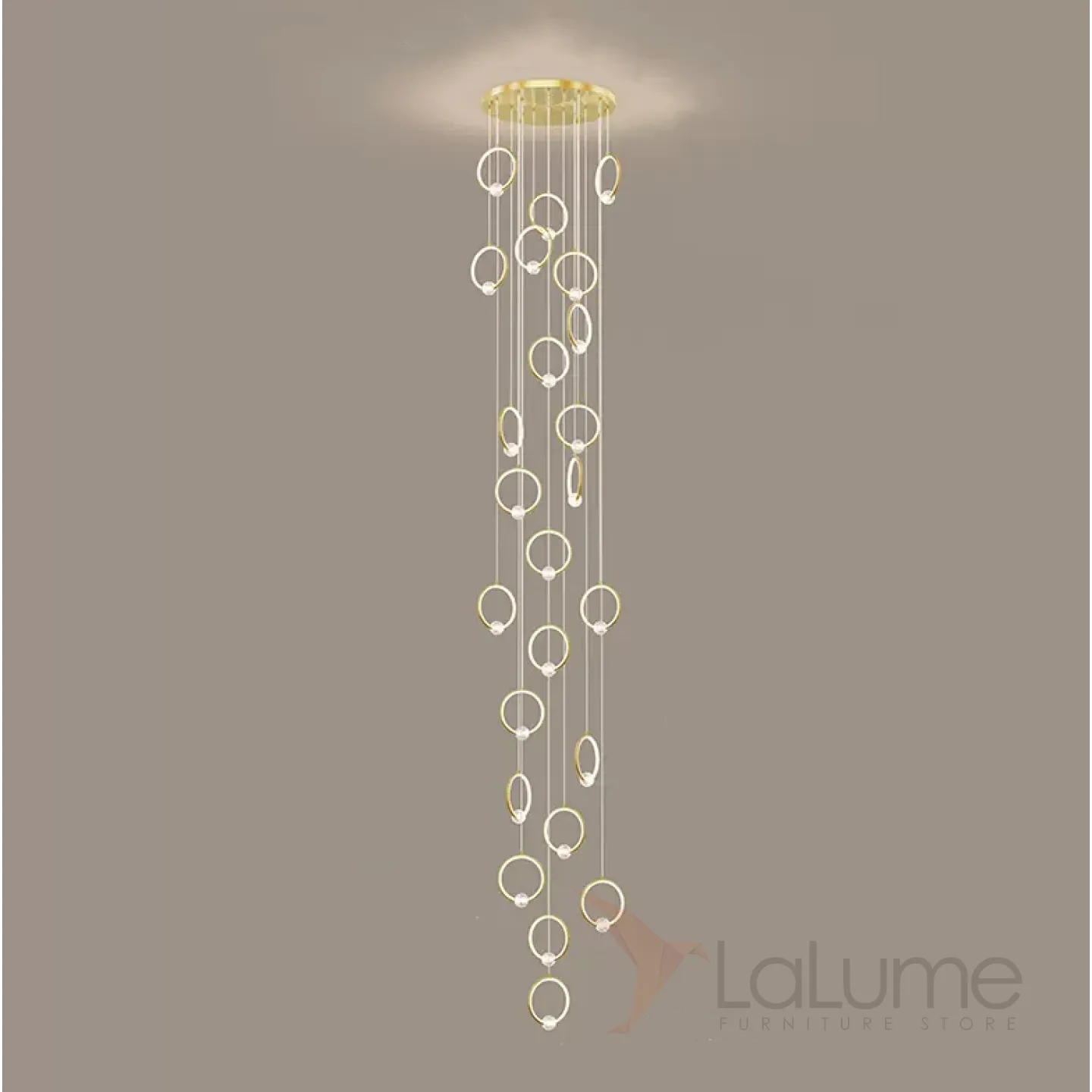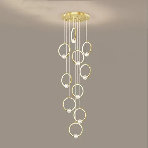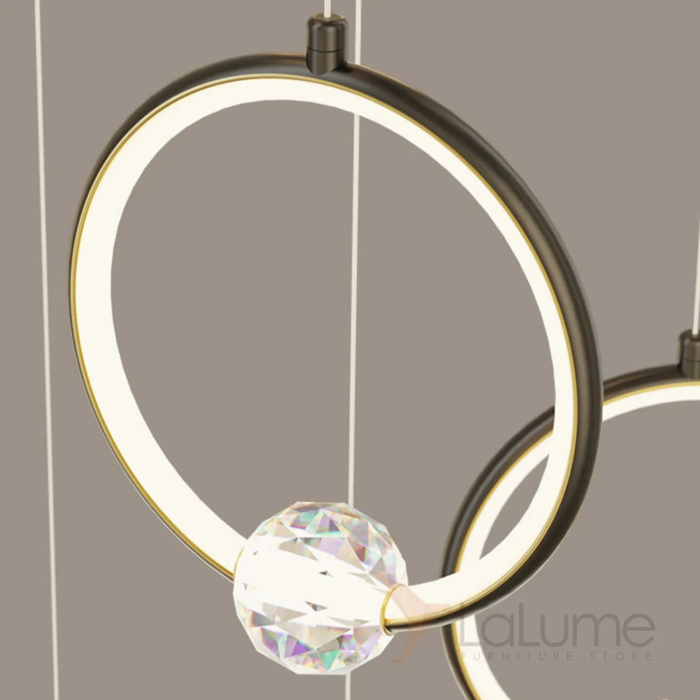 Готовая комбинация подвесных светильников с шарообразными хрустальными плафонами на металлических кольцах с внутренней LED-подсветкой LUANA MORE L24 Brass