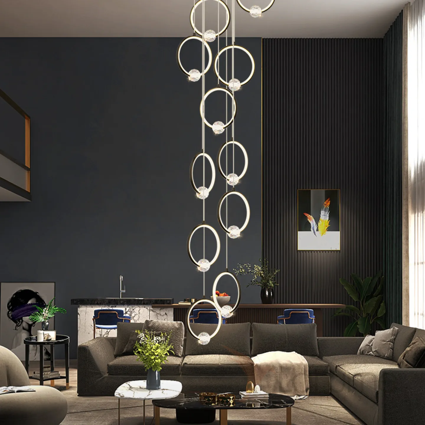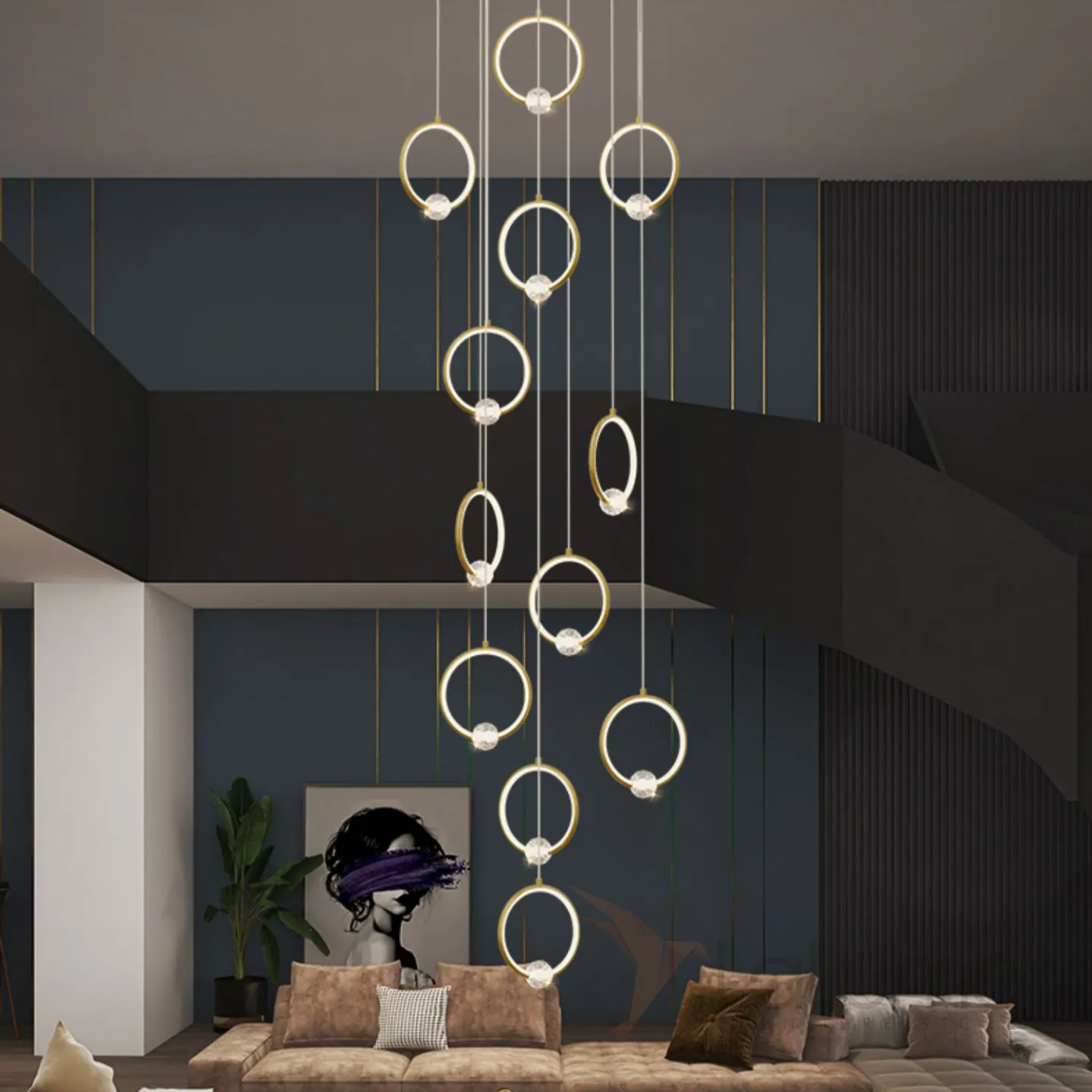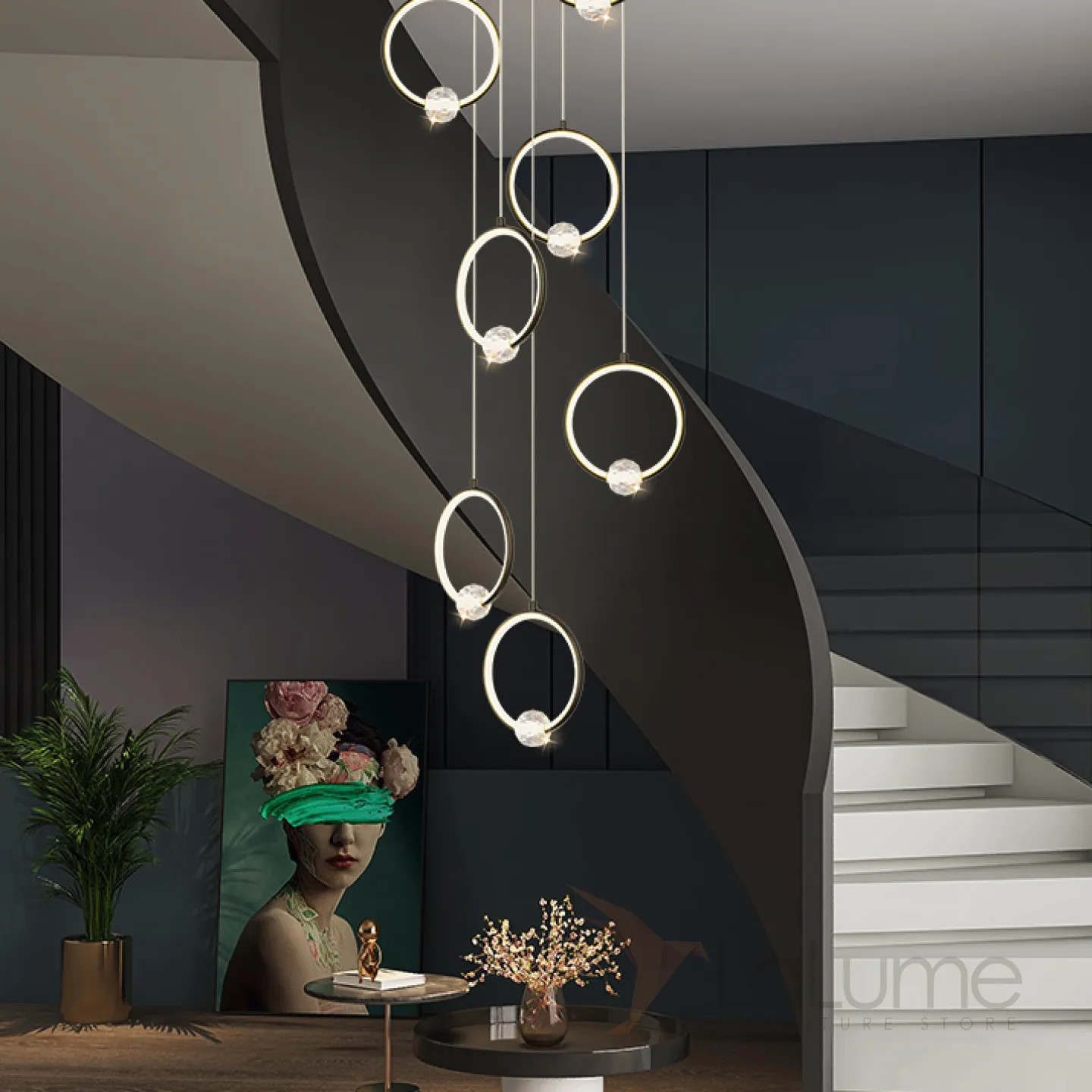 Готовая комбинация подвесных светильников с шарообразными хрустальными плафонами на металлических кольцах с внутренней LED-подсветкой LUANA MORE L24 Brass