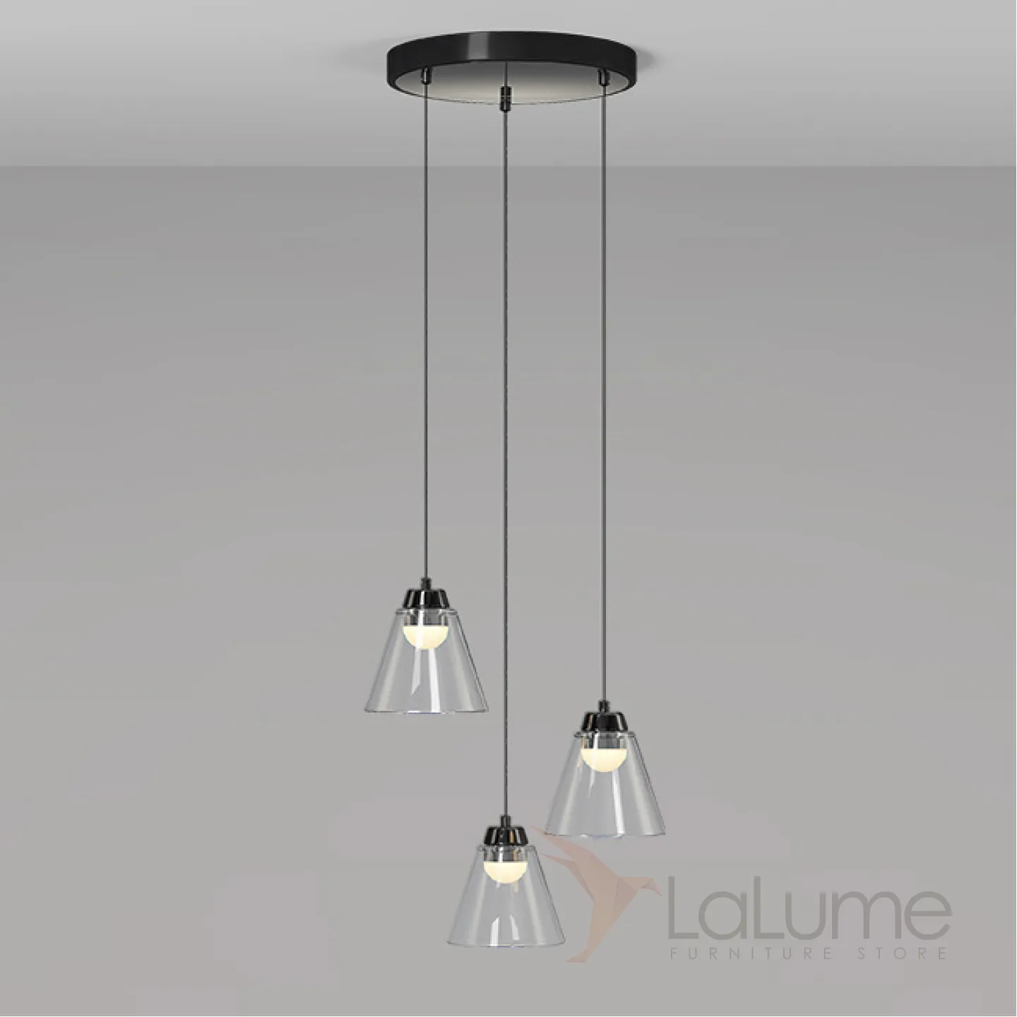 Готовая комбинация подвесных светодиодных светильников c округлыми источниками в прозрачных конических рассеивателях MARX TRIO D33