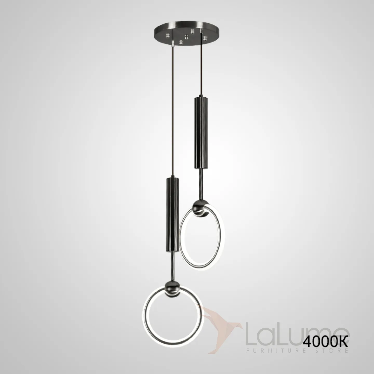 Готовая комбинация светодиодных светильников в виде светящихся колец в цилиндрических стержнях с шарами RING DUO A Black 4000К