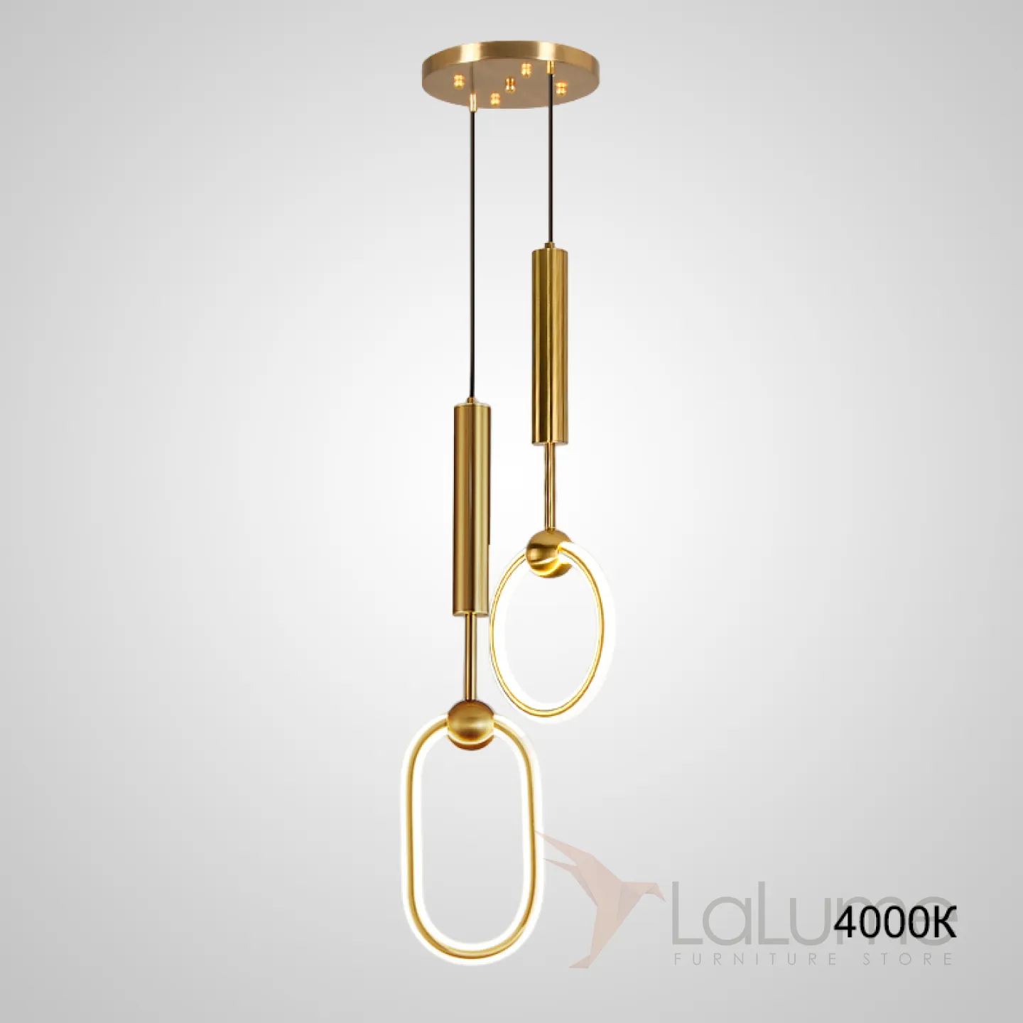 Готовая комбинация светодиодных светильников в виде светящихся колец в цилиндрических стержнях с шарами RING DUO B Brass 4000К
