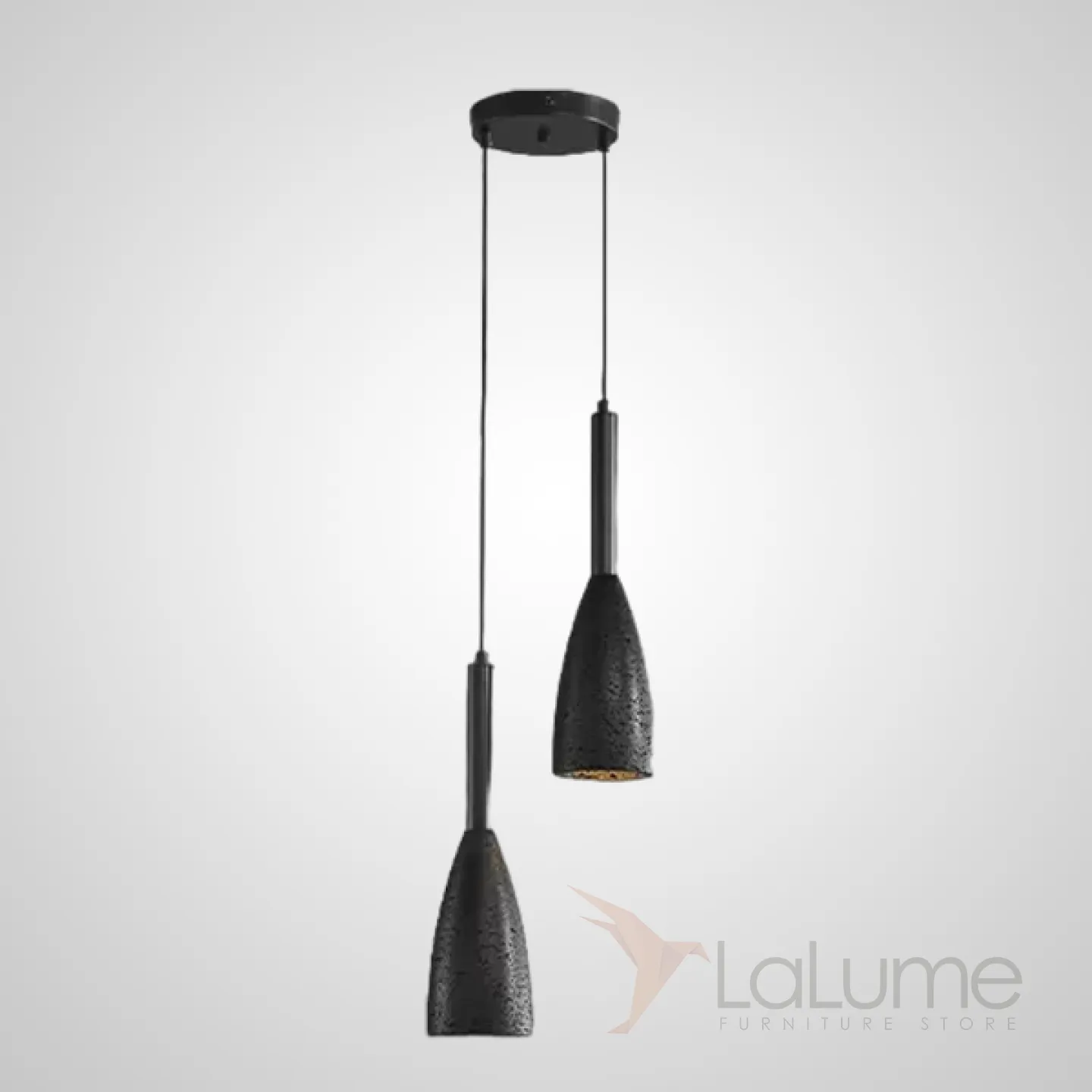 Готовая комбинация подвесных светильников с рельефными плафонами в форме кегель из черного лавового камня DALBY STONE COMBO D20