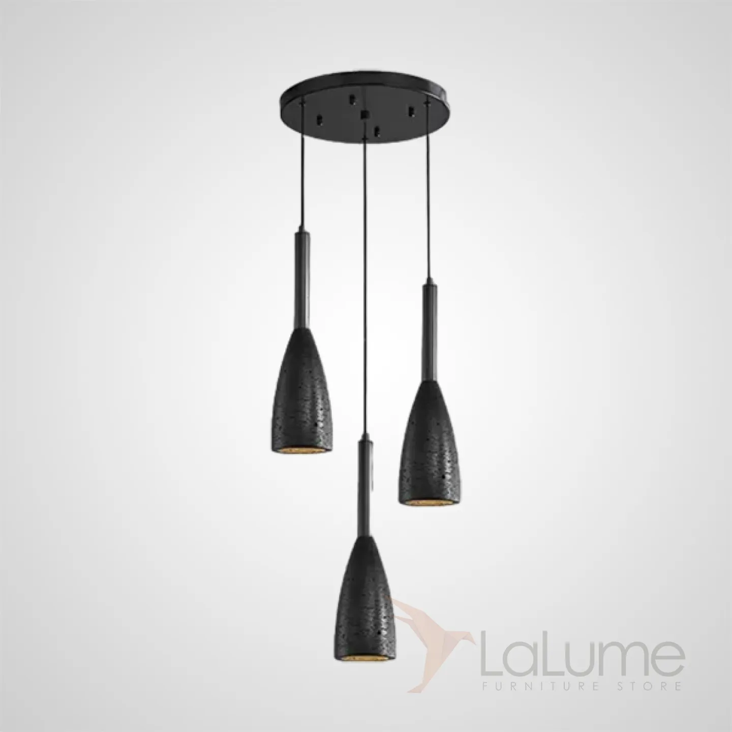 Готовая комбинация подвесных светильников с рельефными плафонами в форме кегель из черного лавового камня DALBY STONE COMBO D30