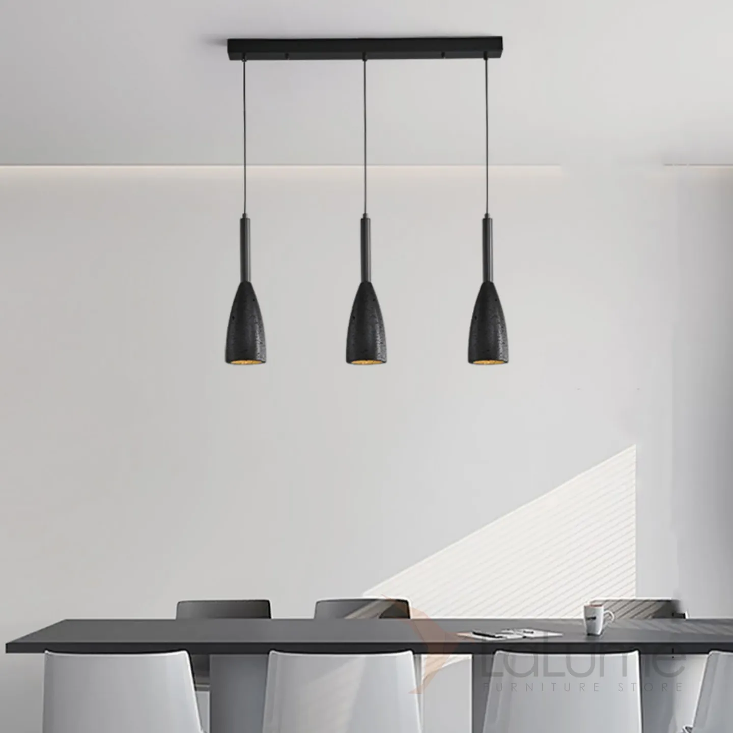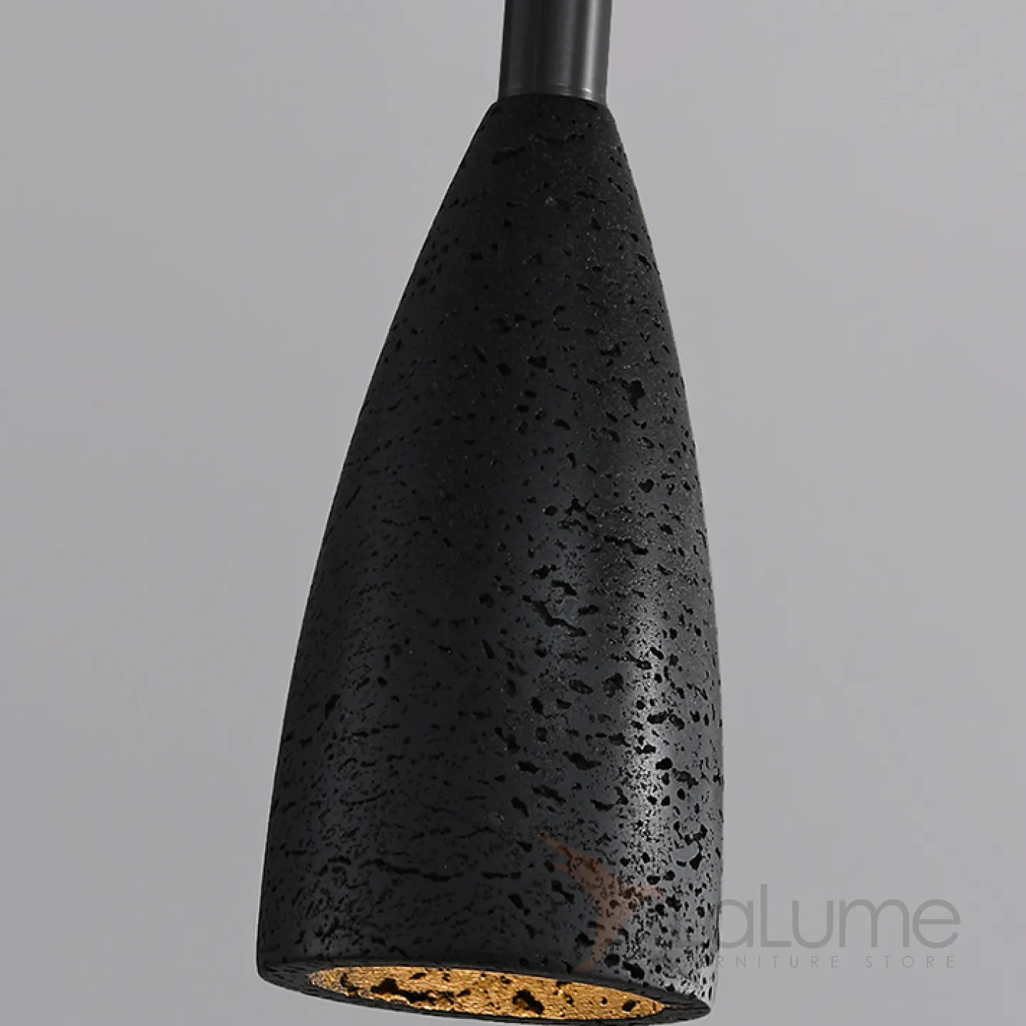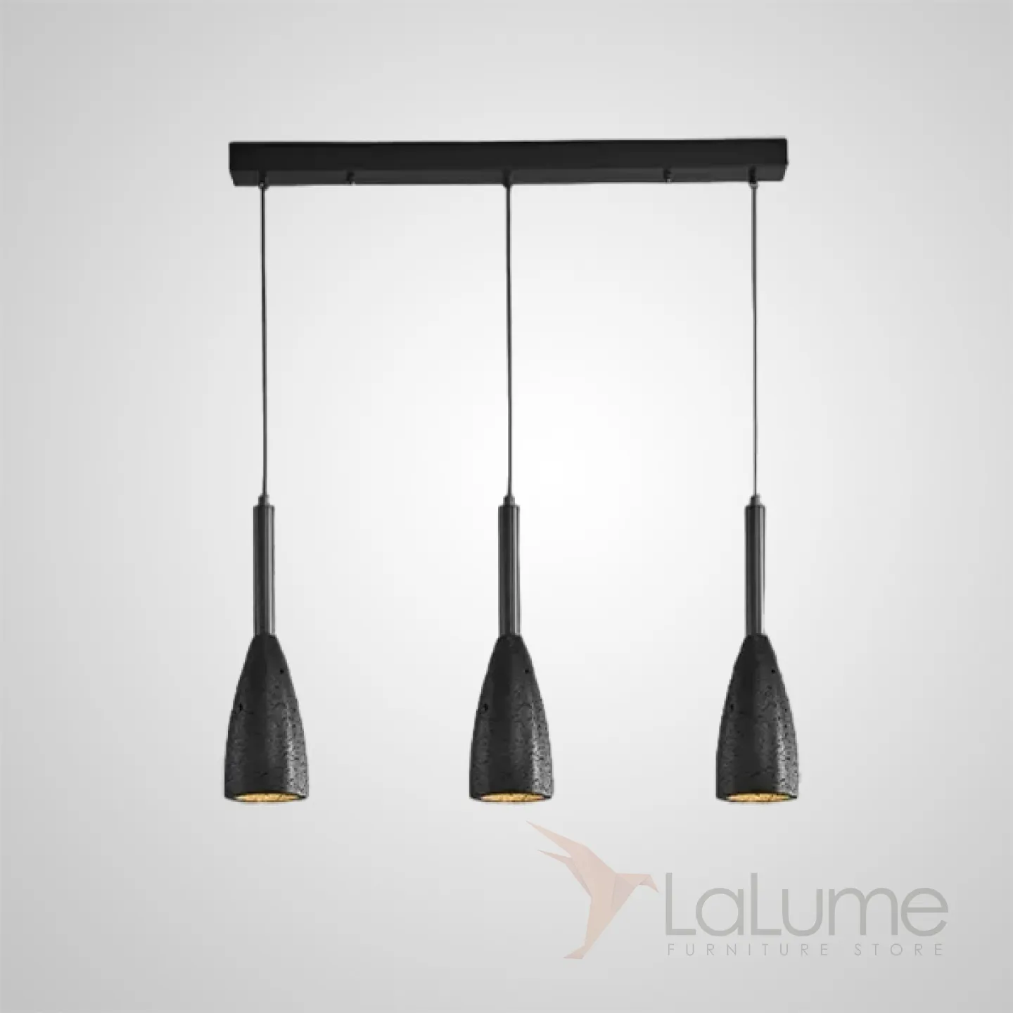 Готовая комбинация подвесных светильников с рельефными плафонами в форме кегель из черного лавового камня DALBY STONE COMBO L70