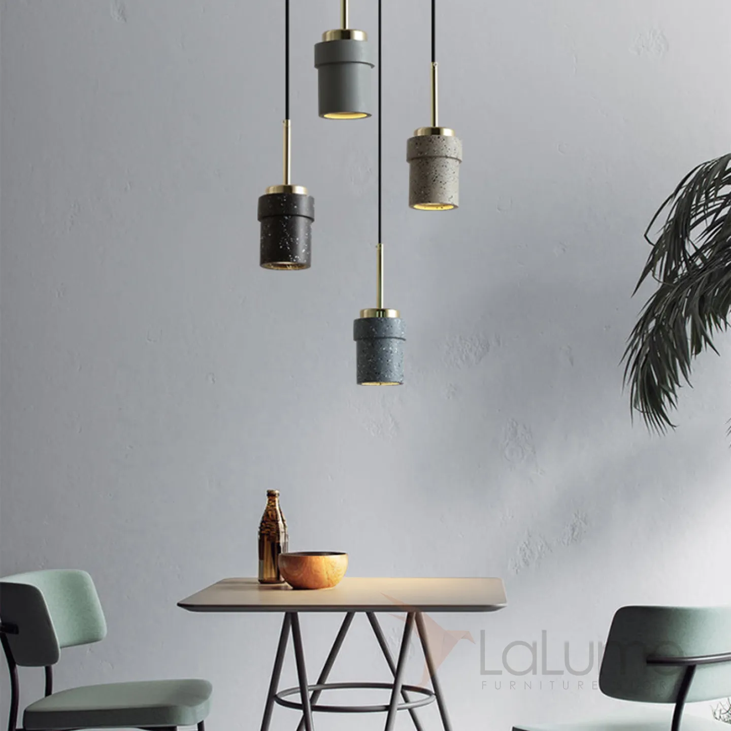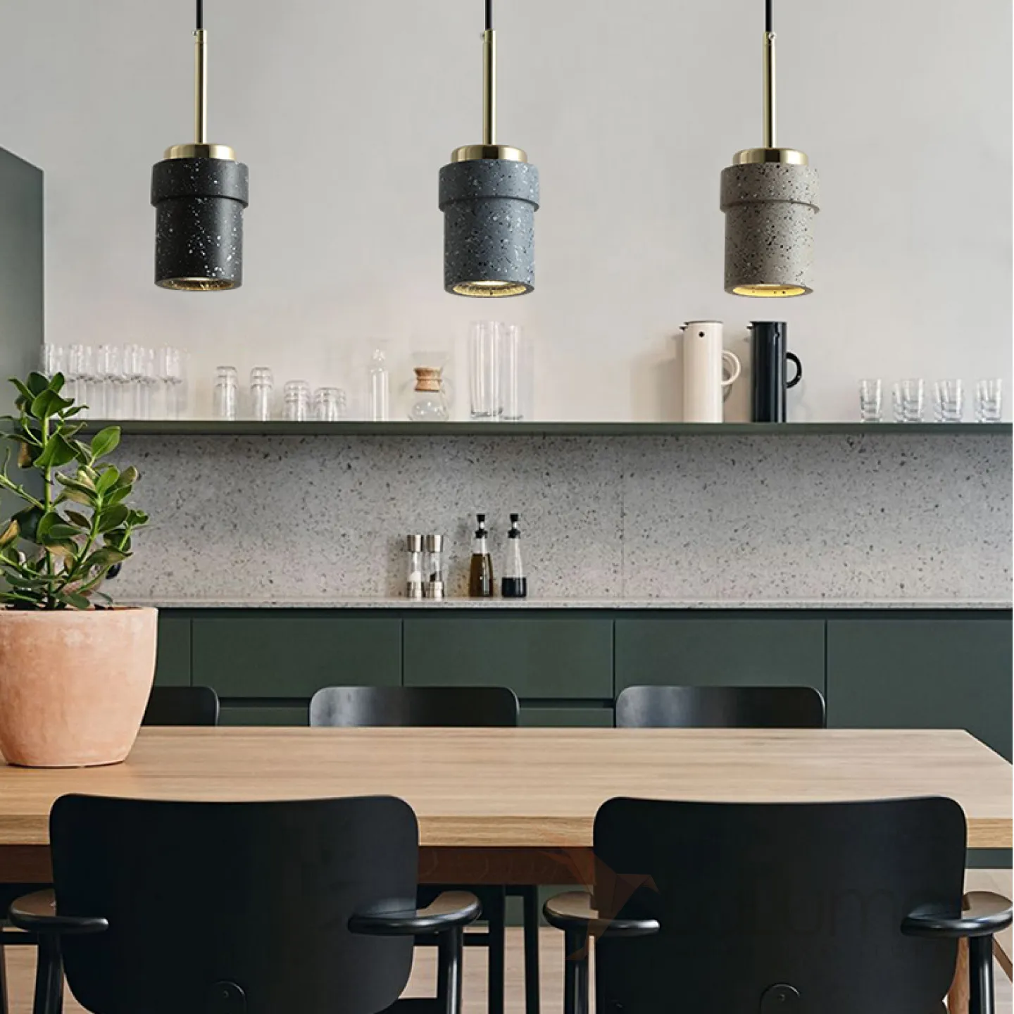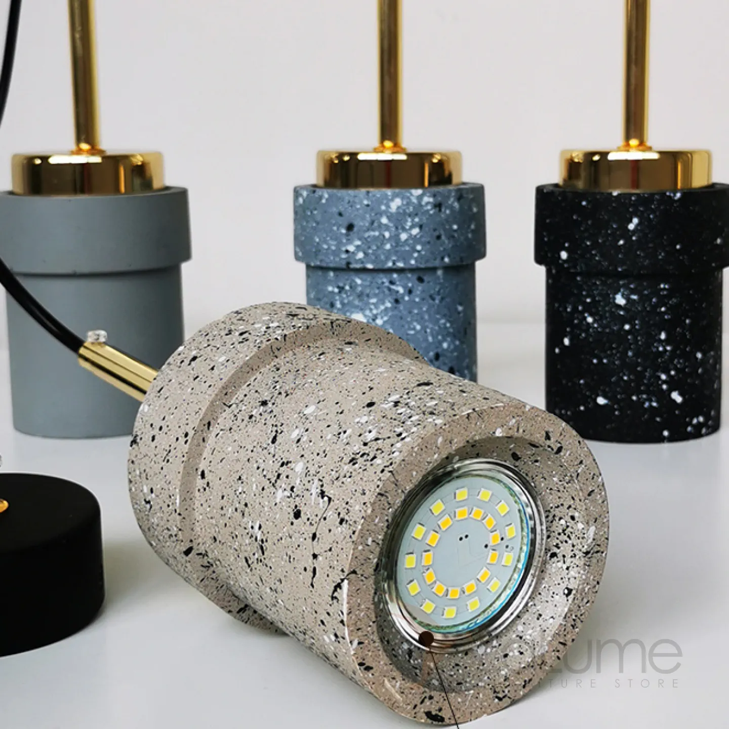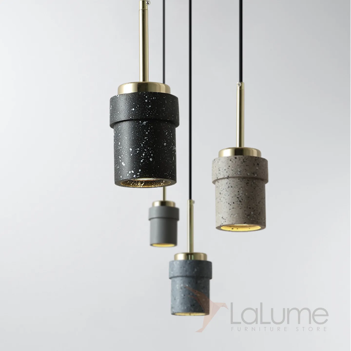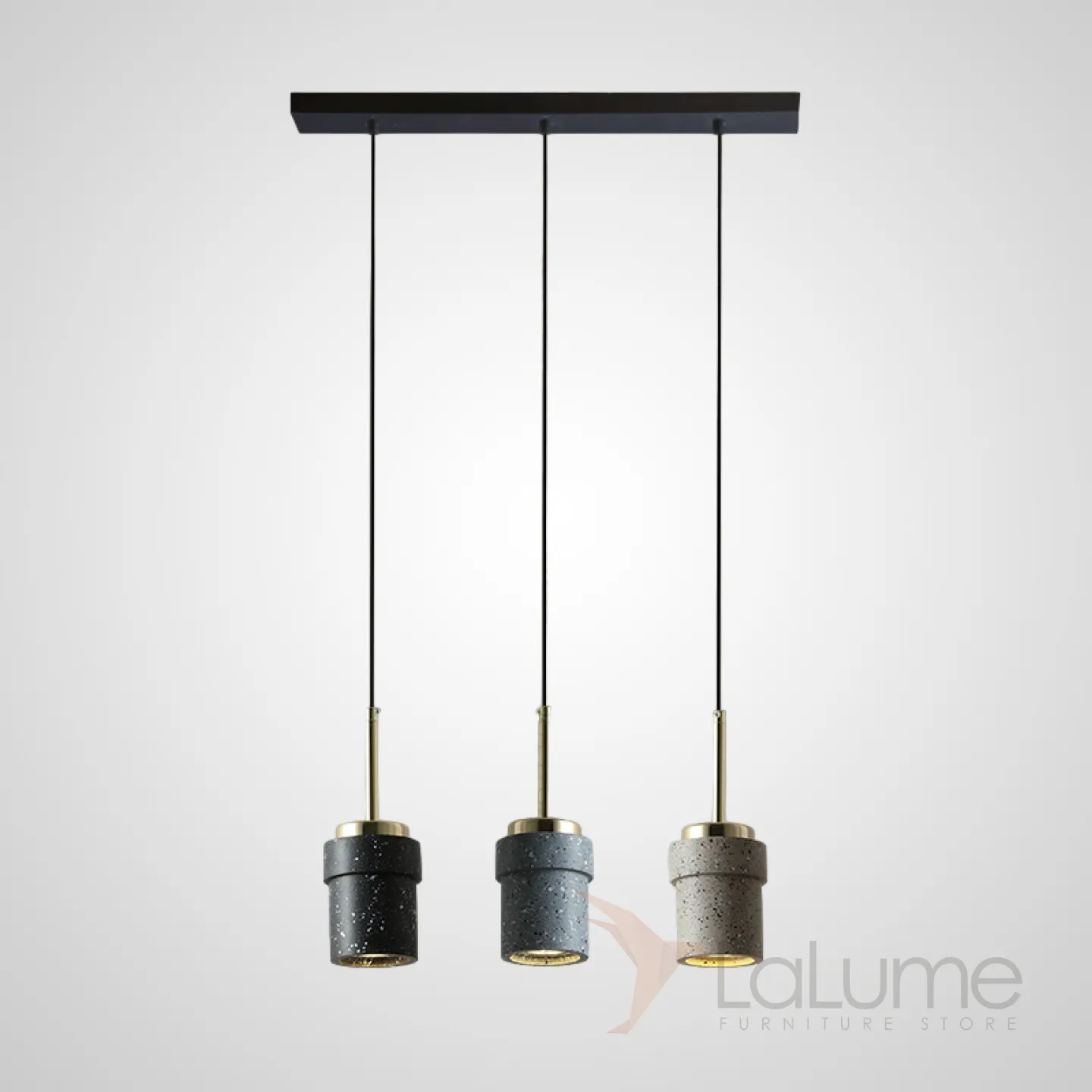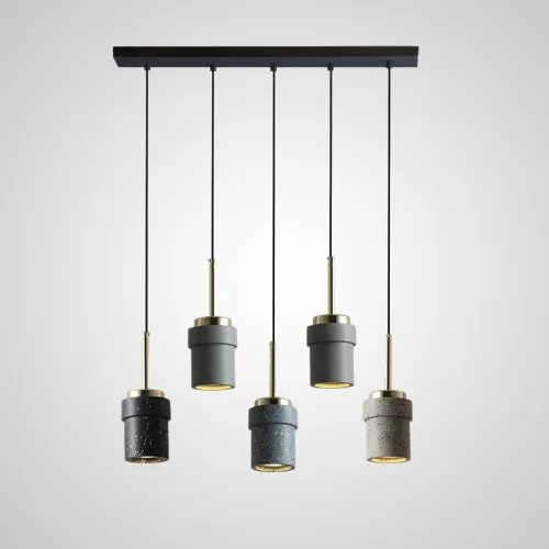 Готовая комбинация подвесных светодиодных светильников с цилиндрическими плафонами из цветного мрамора терраццо JERKEN COMBO L3 Планка