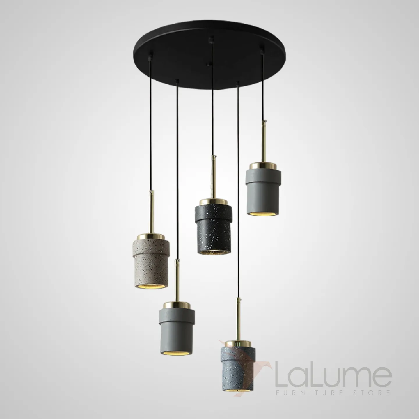 Готовая комбинация подвесных светодиодных светильников с цилиндрическими плафонами из цветного мрамора терраццо JERKEN COMBO L5 Диск