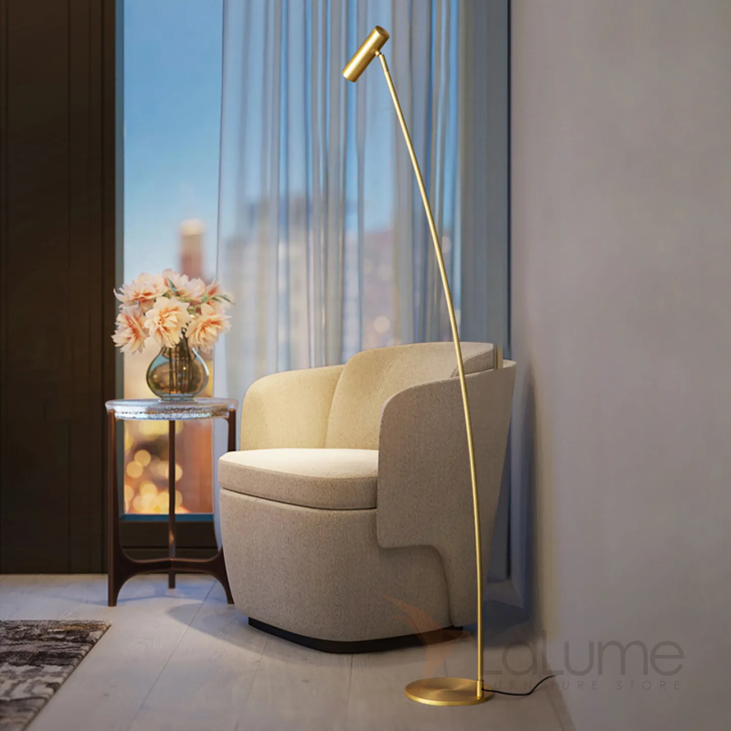 Серия светодиодных торшеров с цилиндрическим спотом на вертикальной и изогнутой стойках из настоящей латуни ADLAUG B B Brass