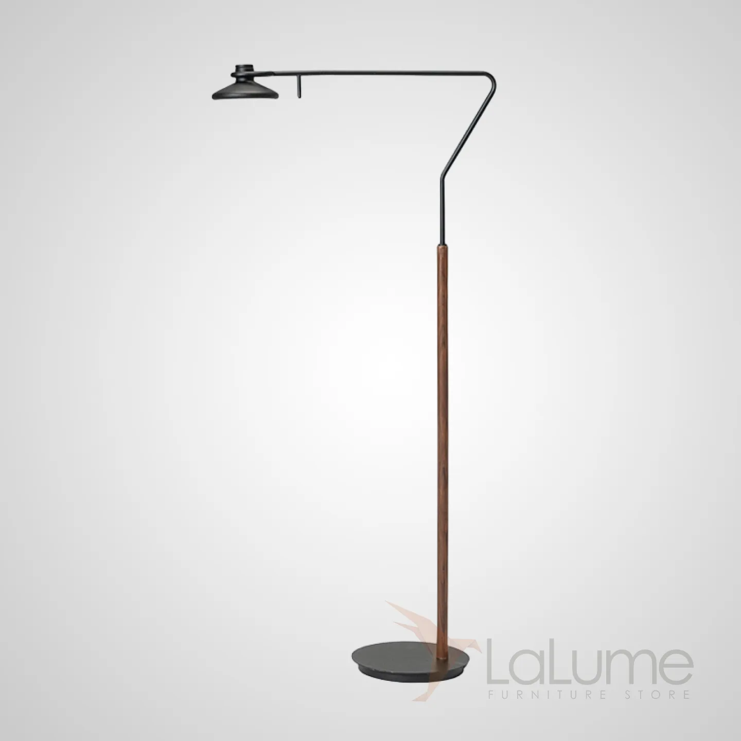 Торшер на угловом кронштейне с деревянной стойкой и вращающимся спотом с поворотным переключателем ENSIO Black