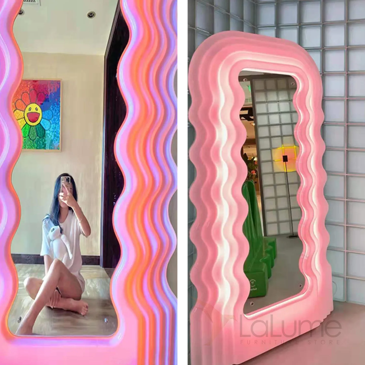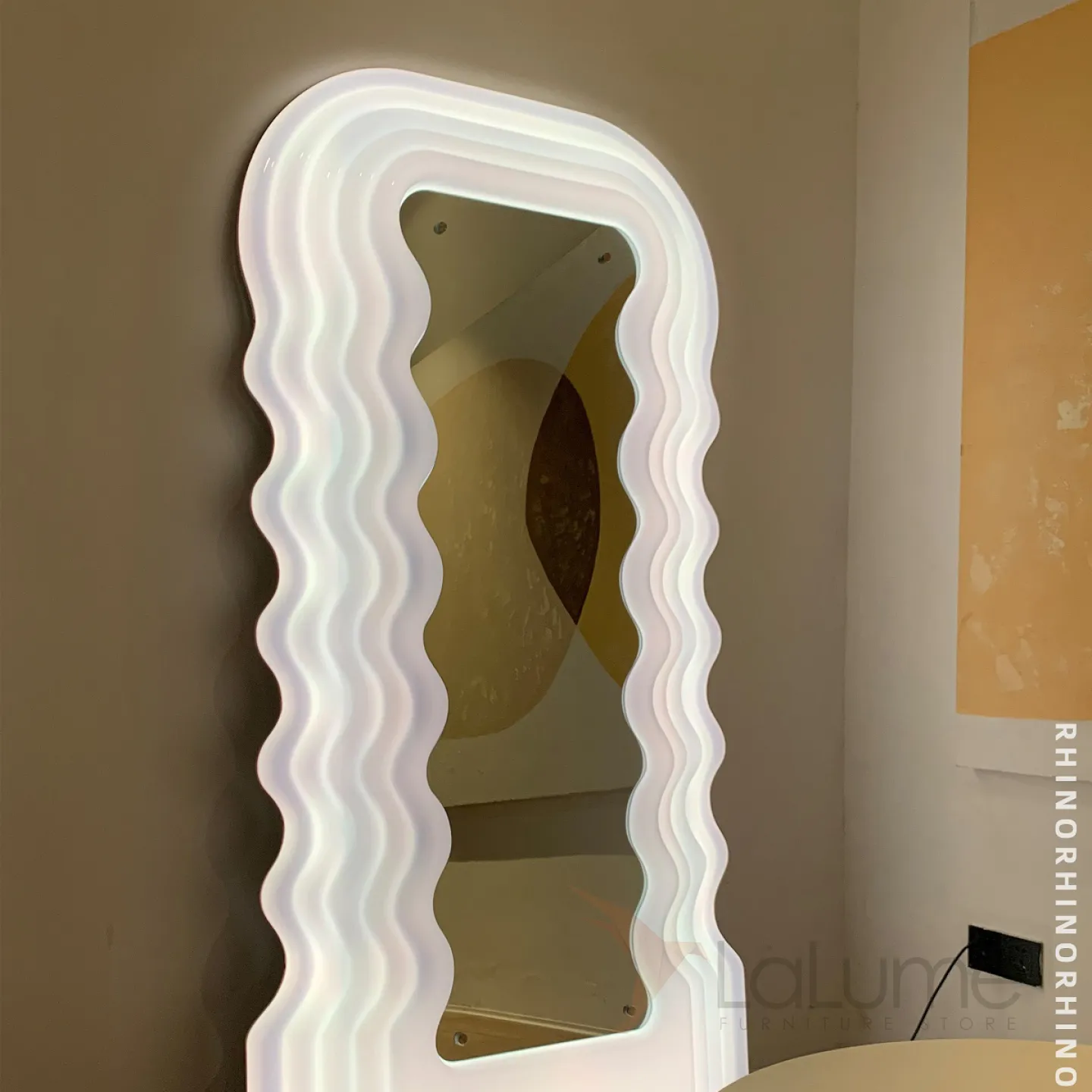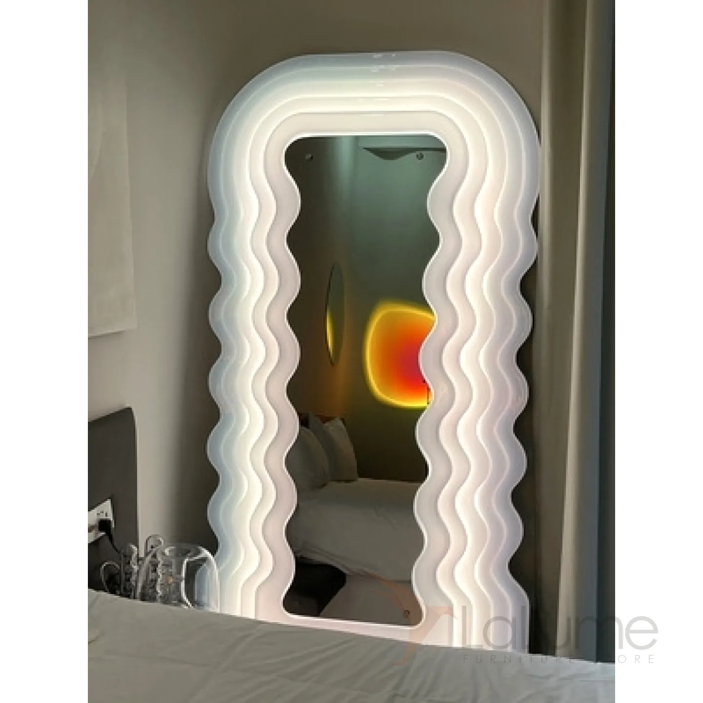 Креативный напольный светильник в виде зеркала со светящейся волнообразной рамой TEMME Семицветный свет