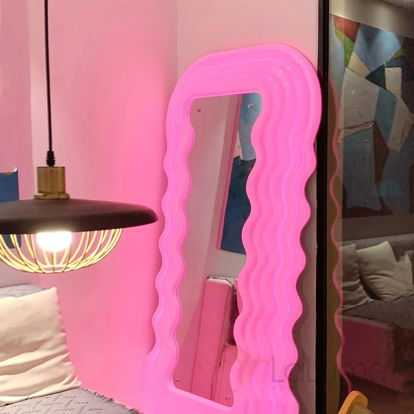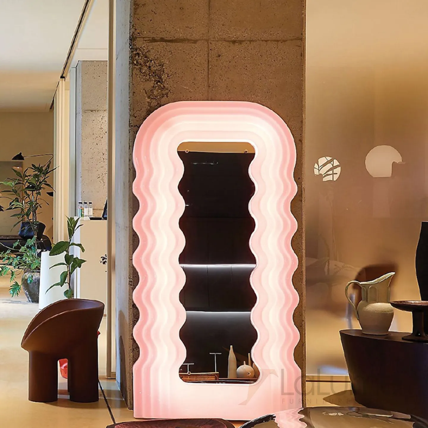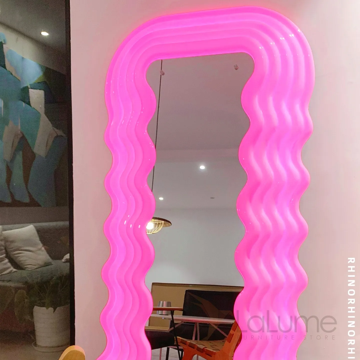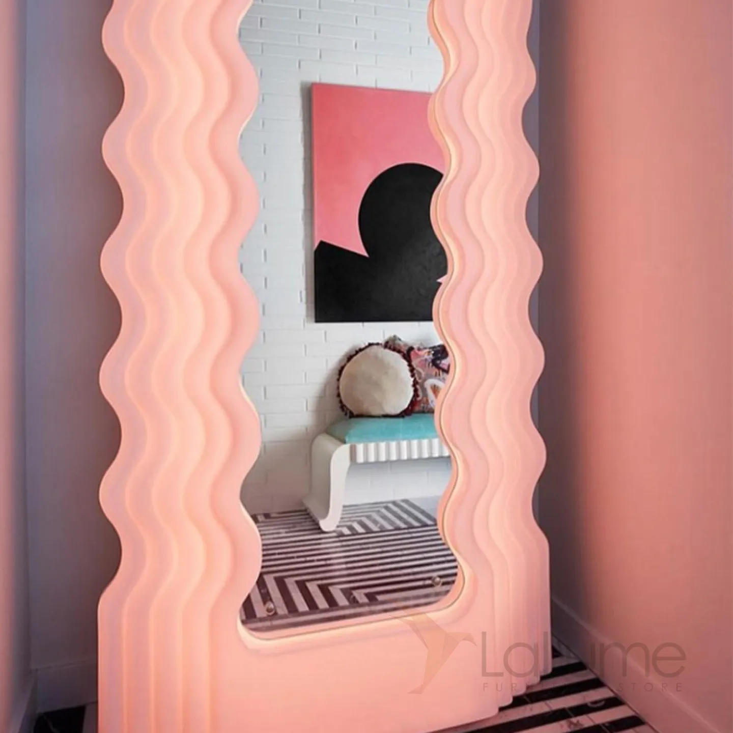Креативный напольный светильник в виде зеркала со светящейся волнообразной рамой TEMME Семицветный свет