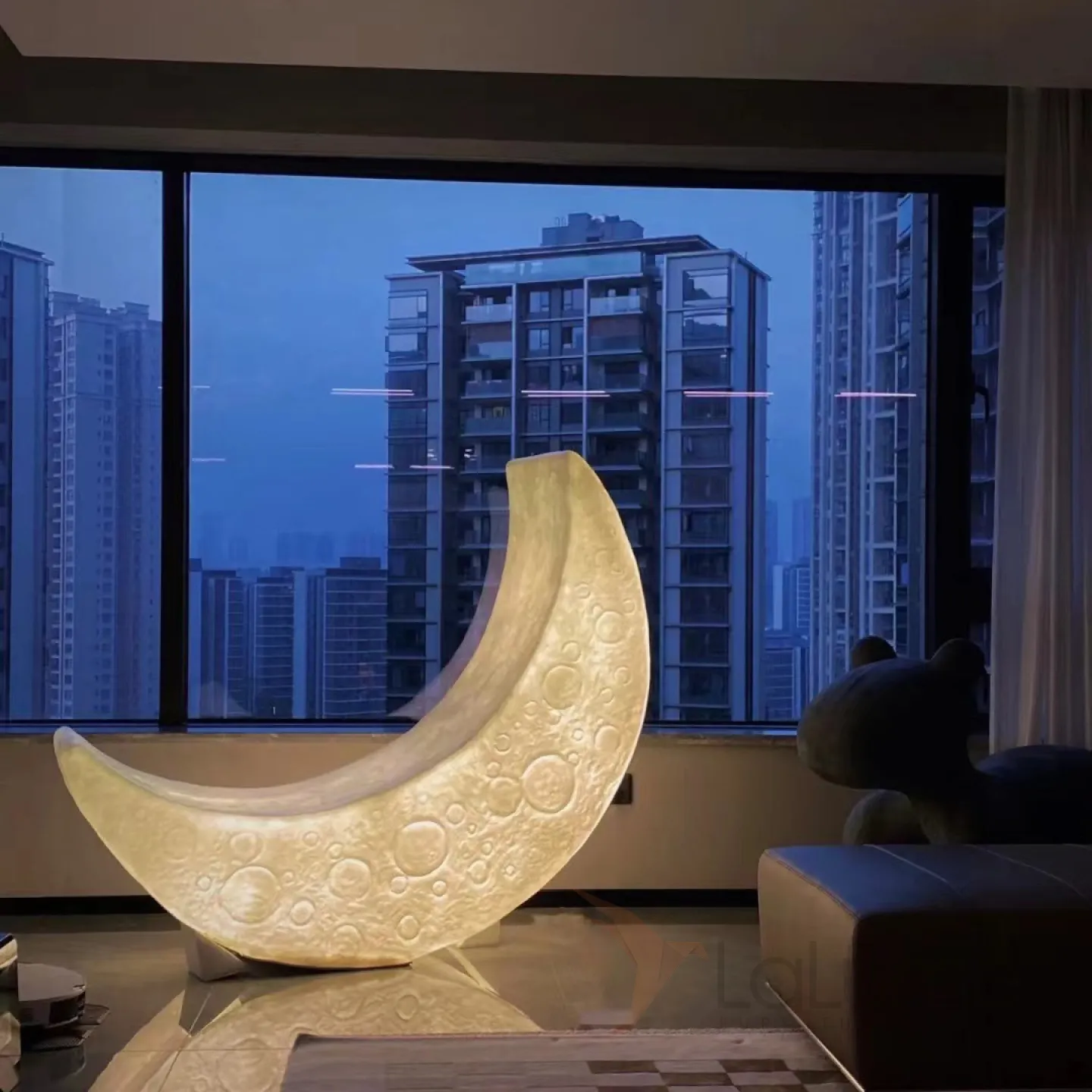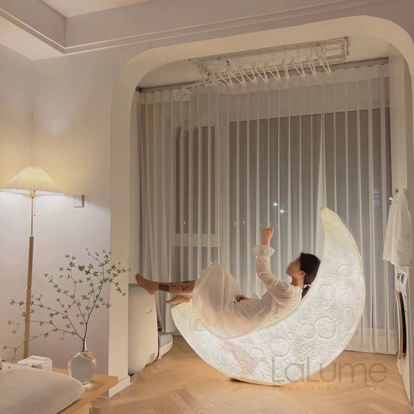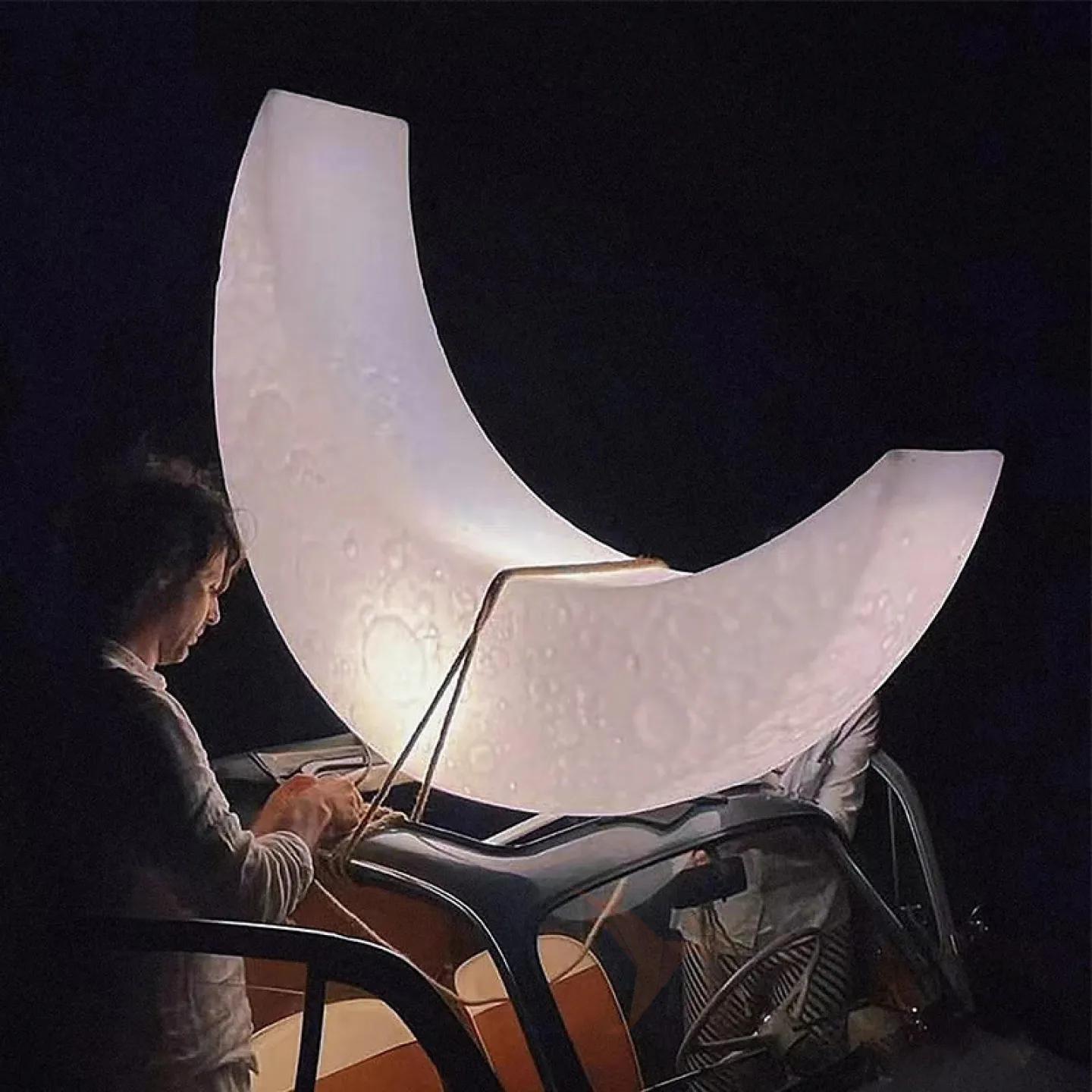 Дизайнерский напольный светильник в форме луны с рельефной поверхностью и на металлической стойке SONNI B