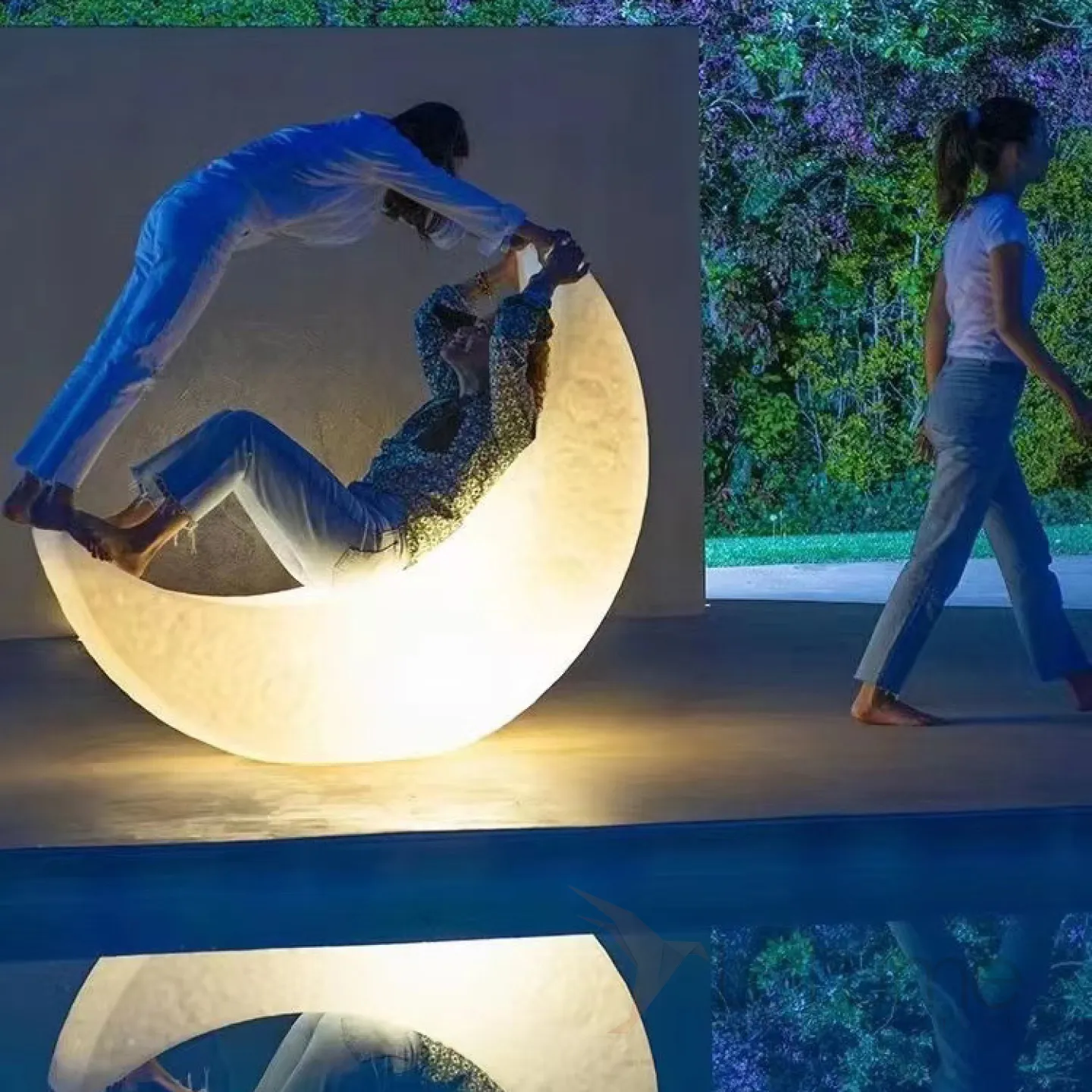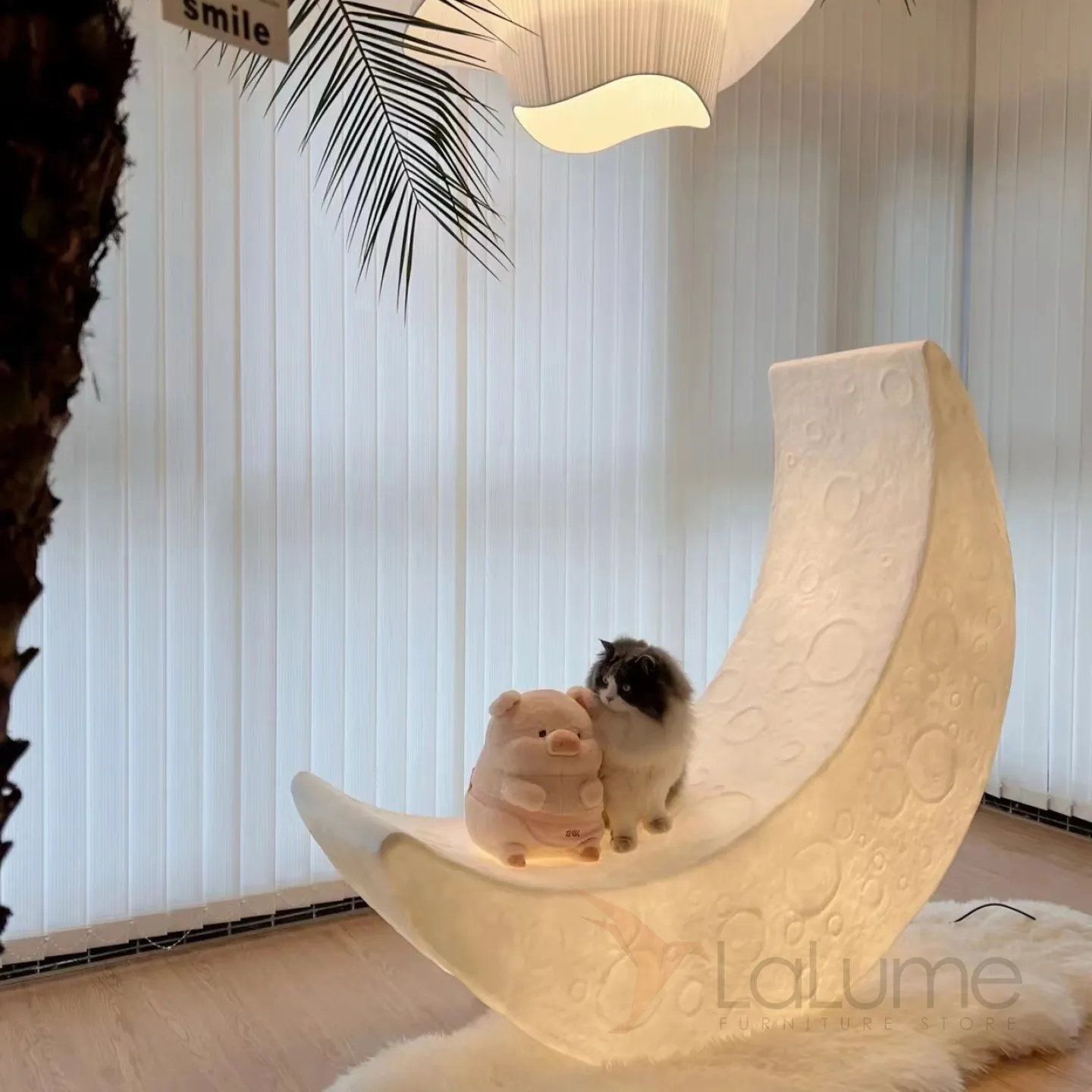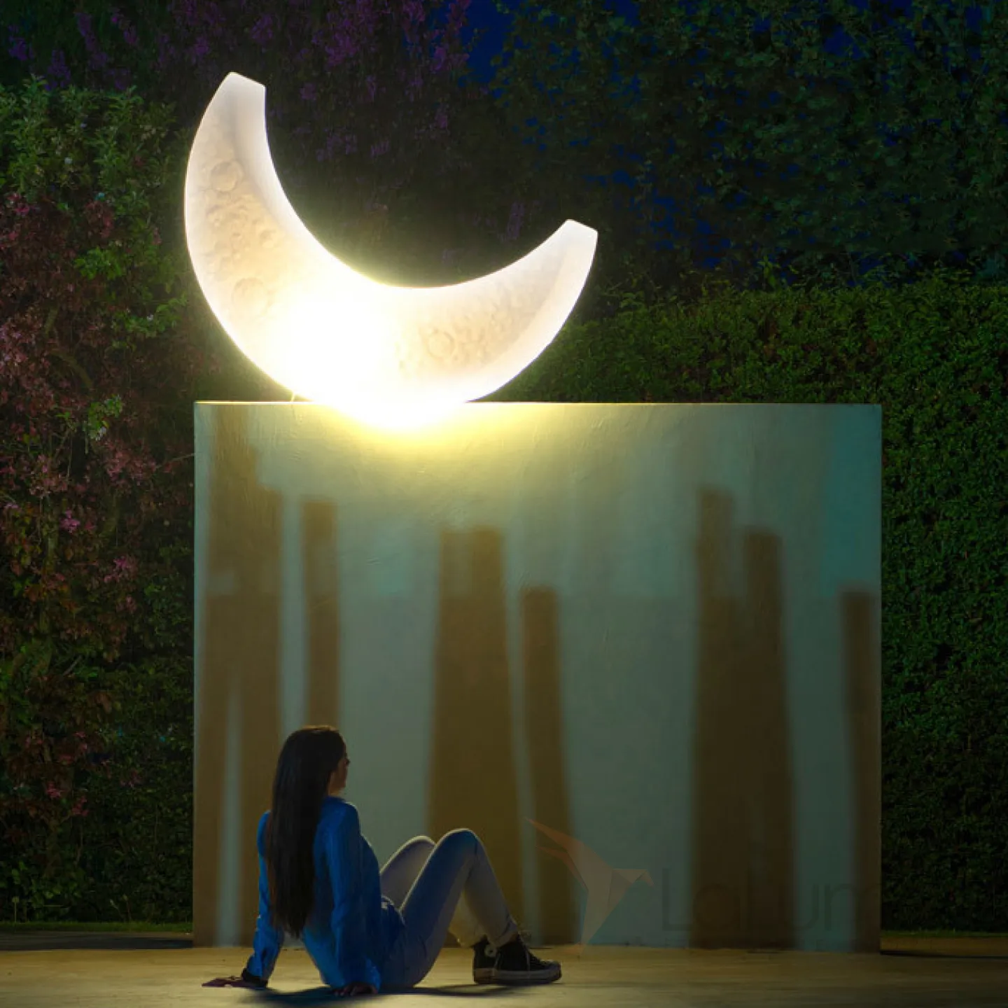 Дизайнерский напольный светильник в форме луны с рельефной поверхностью и на металлической стойке SONNI B