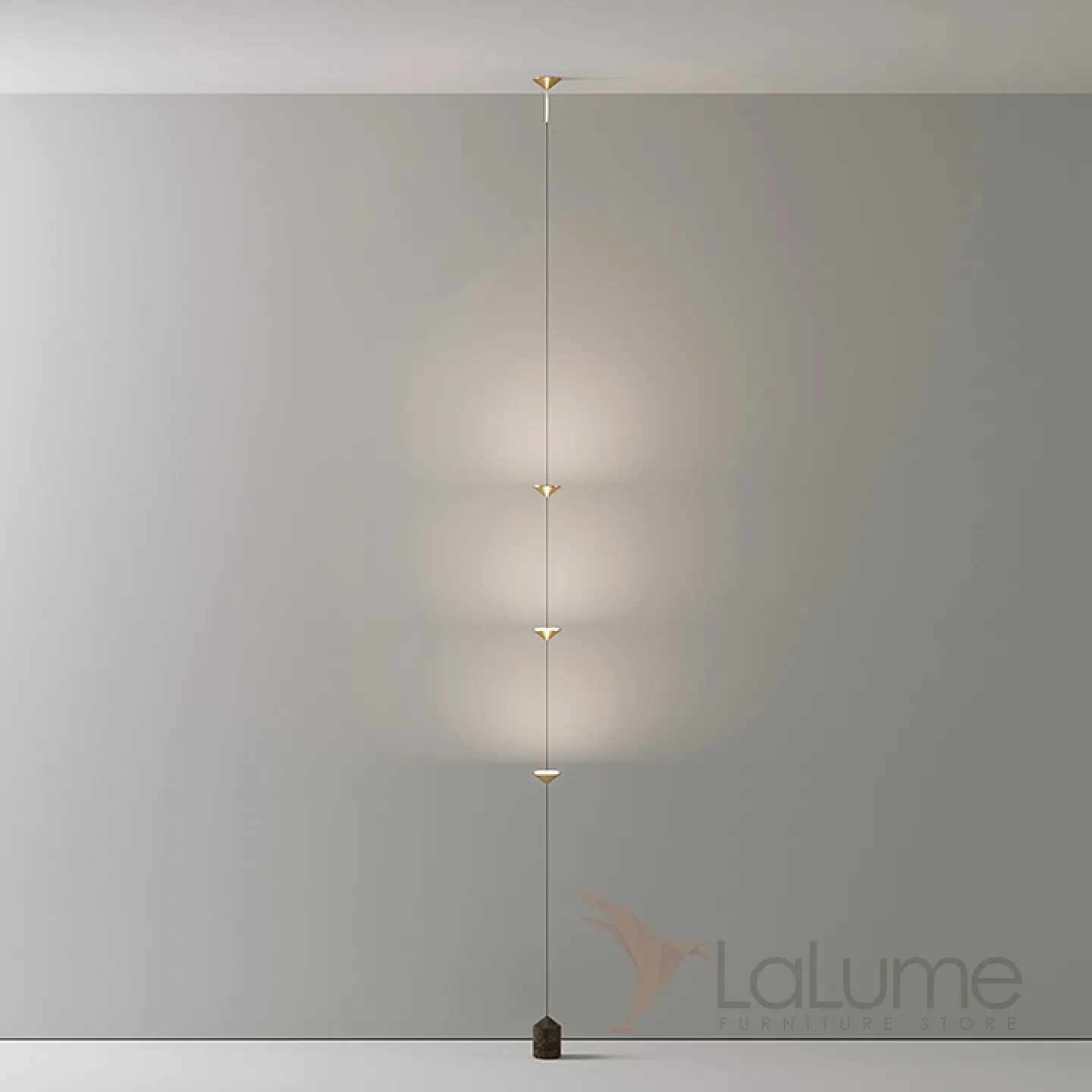 Светодиодный напольный светильник в виде вертикальной струны с конусными плафонами CLAAS Gold