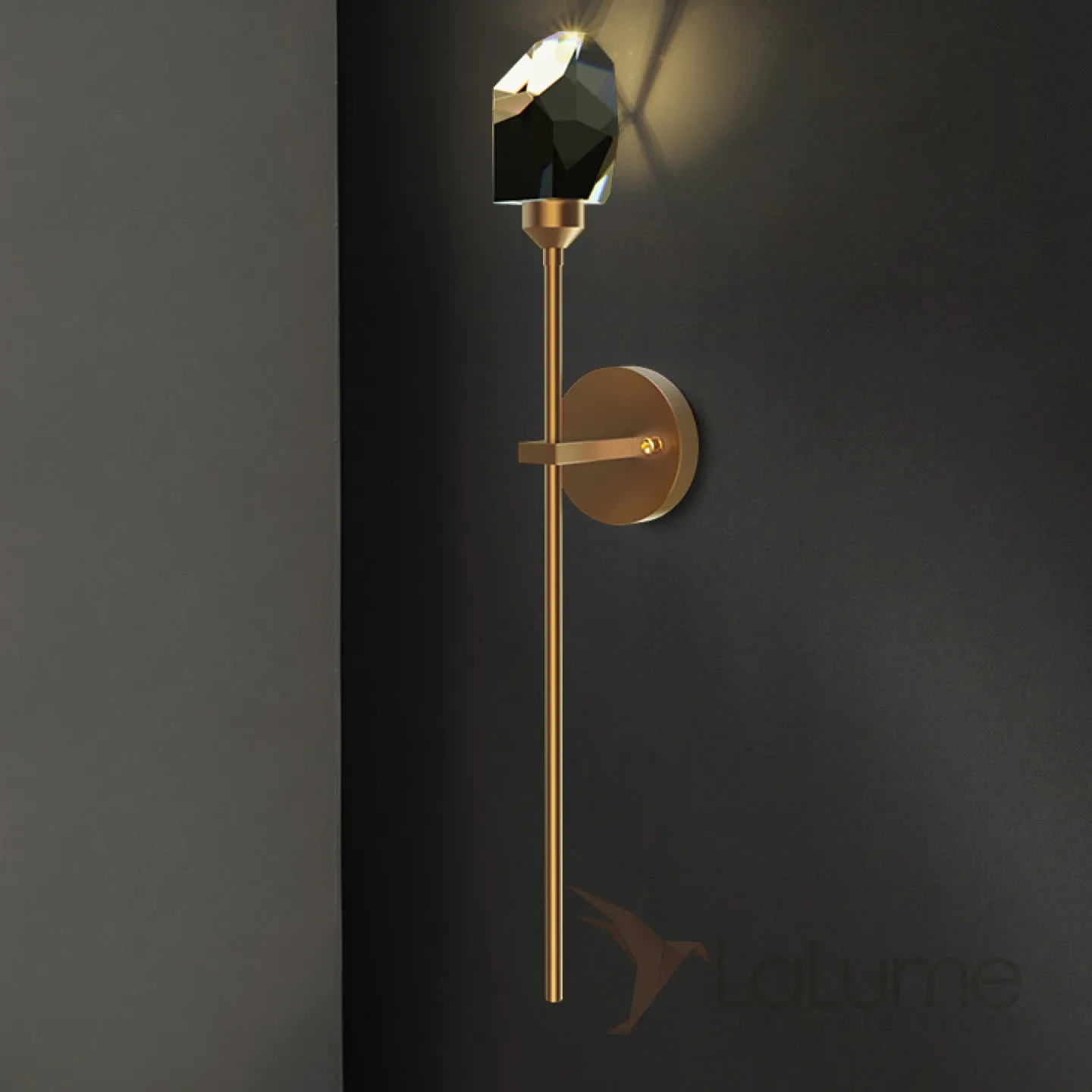 Серия настенных светодиодных светильников с хрустальным рассеивателем в форме кристалла CRISTEL D WALL Brass
