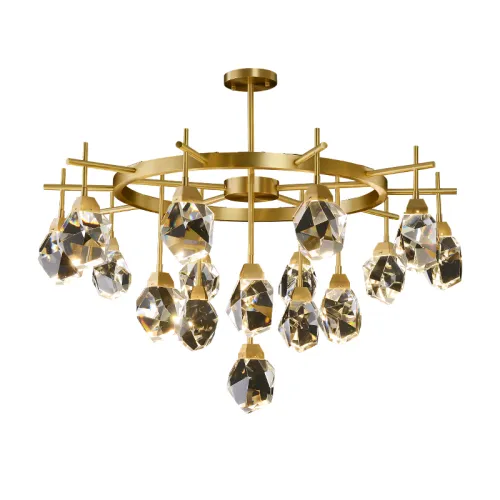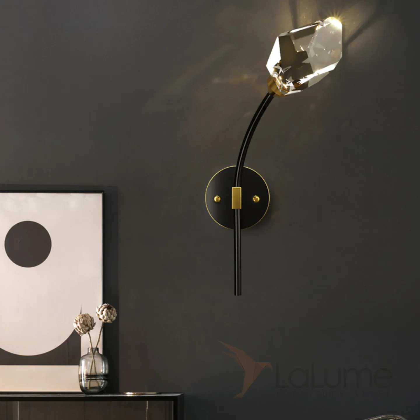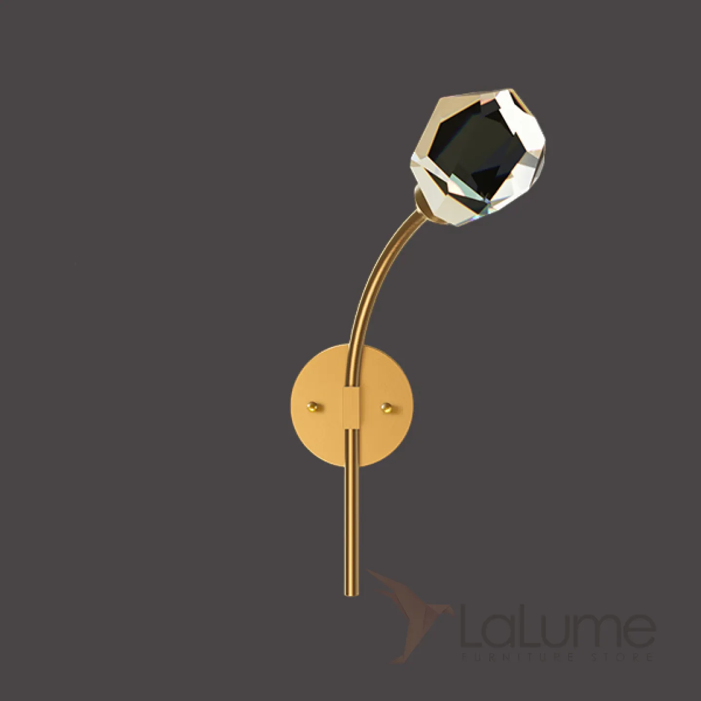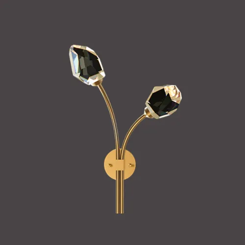 Серия настенных светодиодных светильников с хрустальными рассеивателями в форме кристаллов на изогнутых рожках CRISTEL C WALL L23 Right Brass