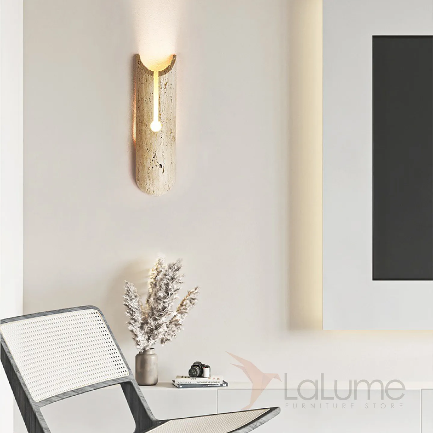 Настенный светодиодный светильник с фигурным корпусом со скругленными краями из желтого камня травертина RIMBERT