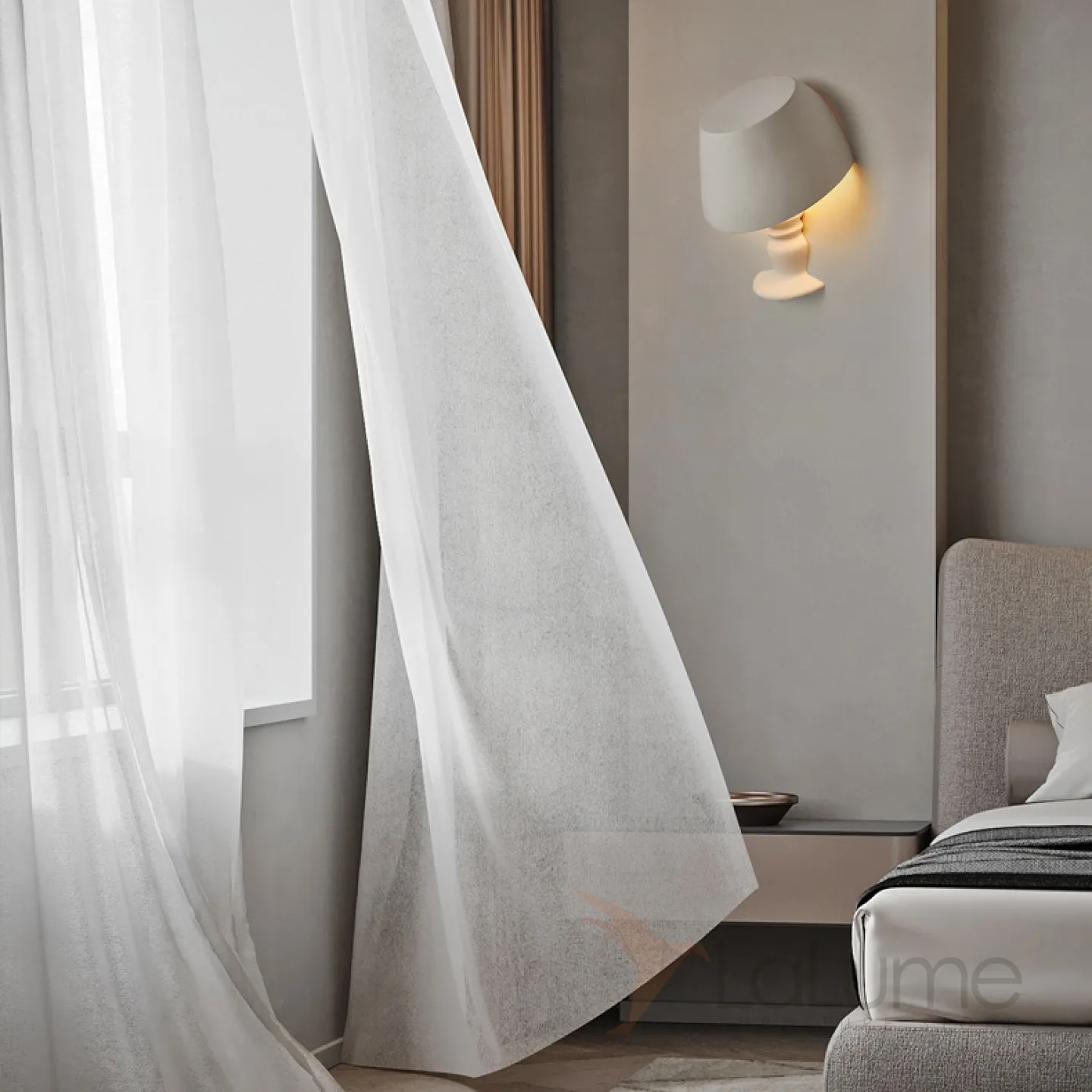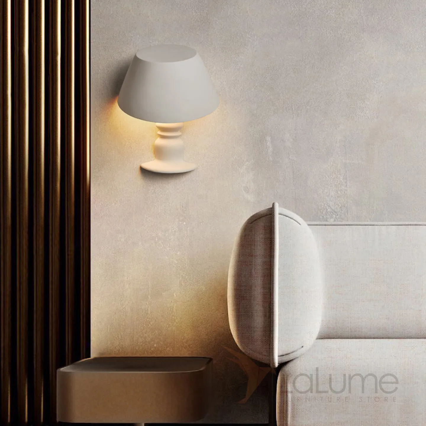 Креативный настенный светильник из белого гипса в виде настольной лампы с абажуром BEATUS B 10W Трехцветный свет