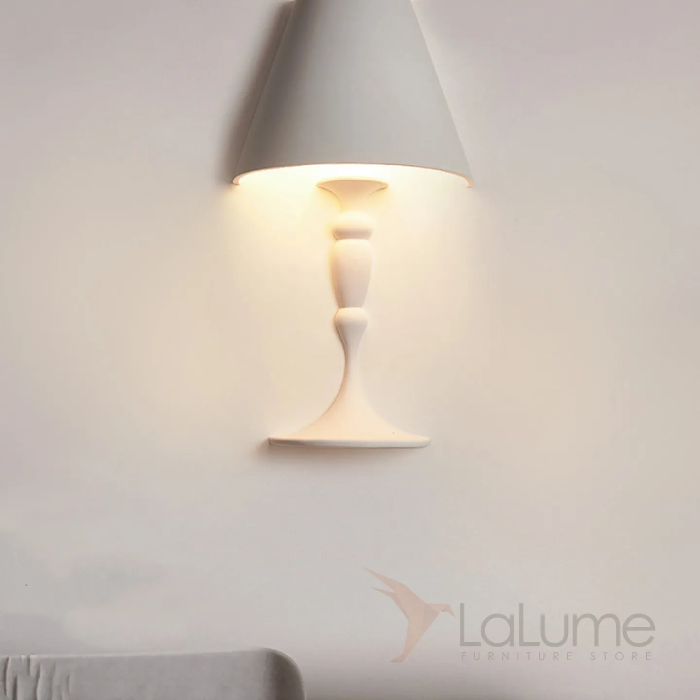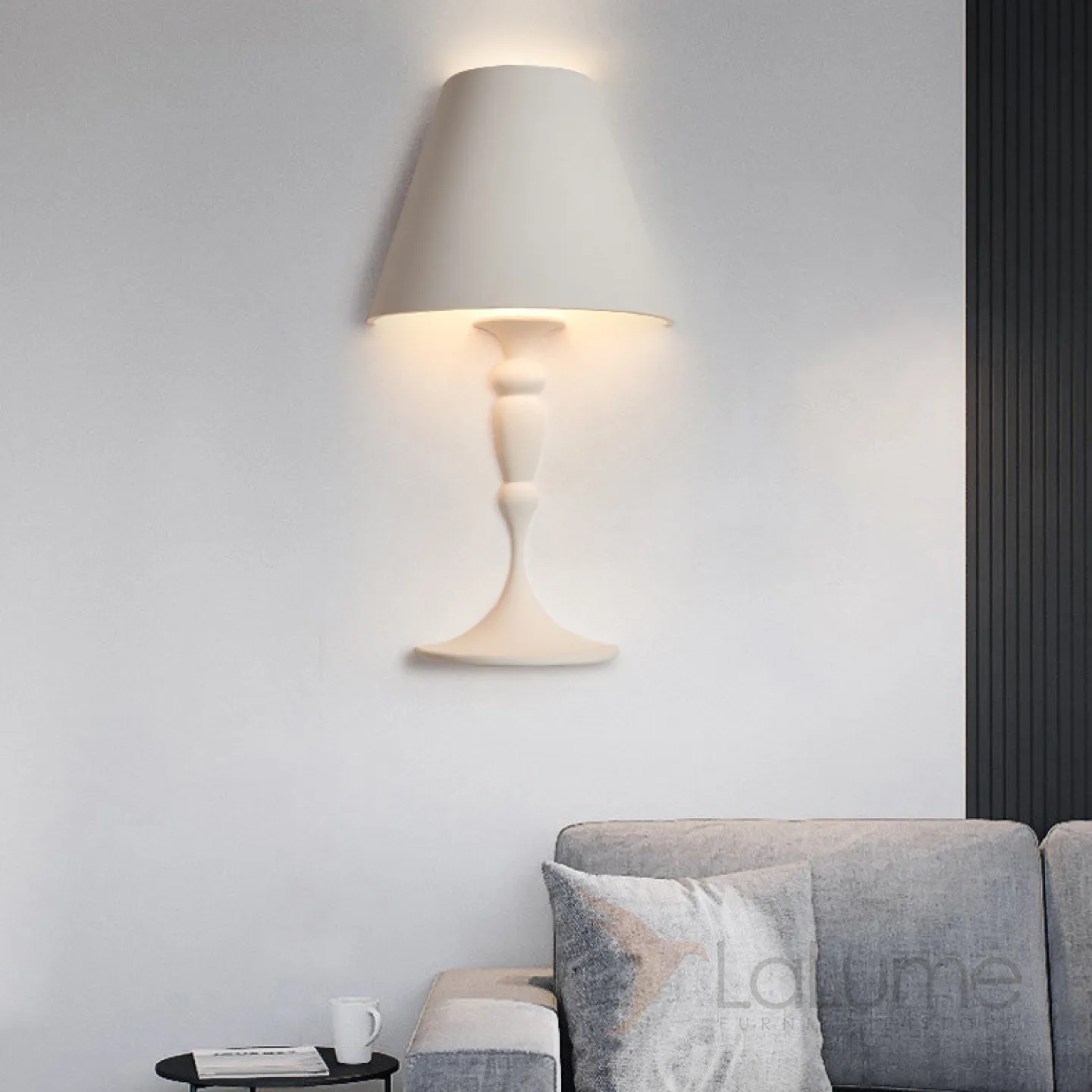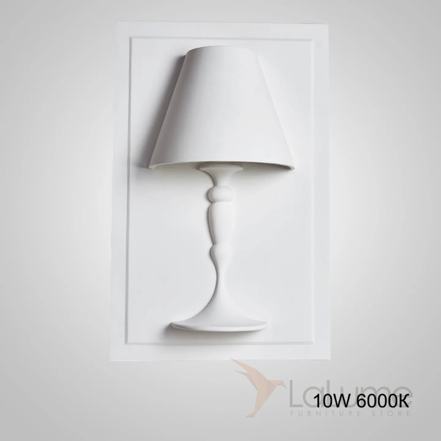 Креативный настенный светильник из белого гипса в виде настольной лампы с абажуром BEATUS 10W 6000К