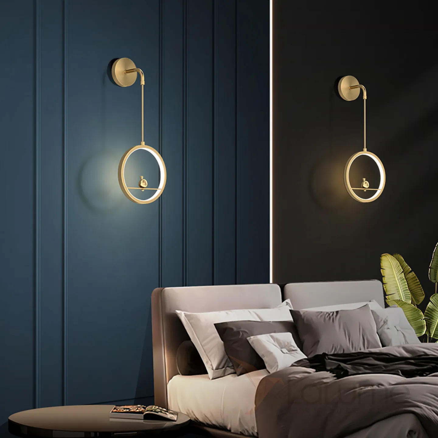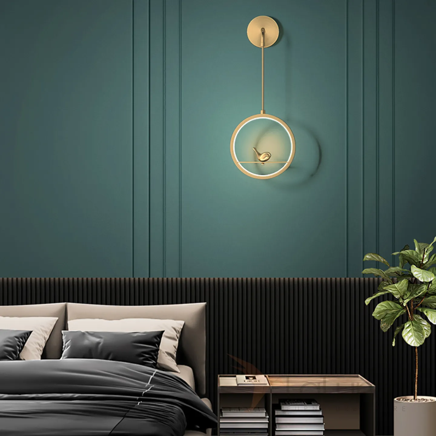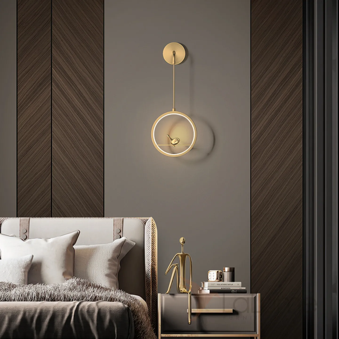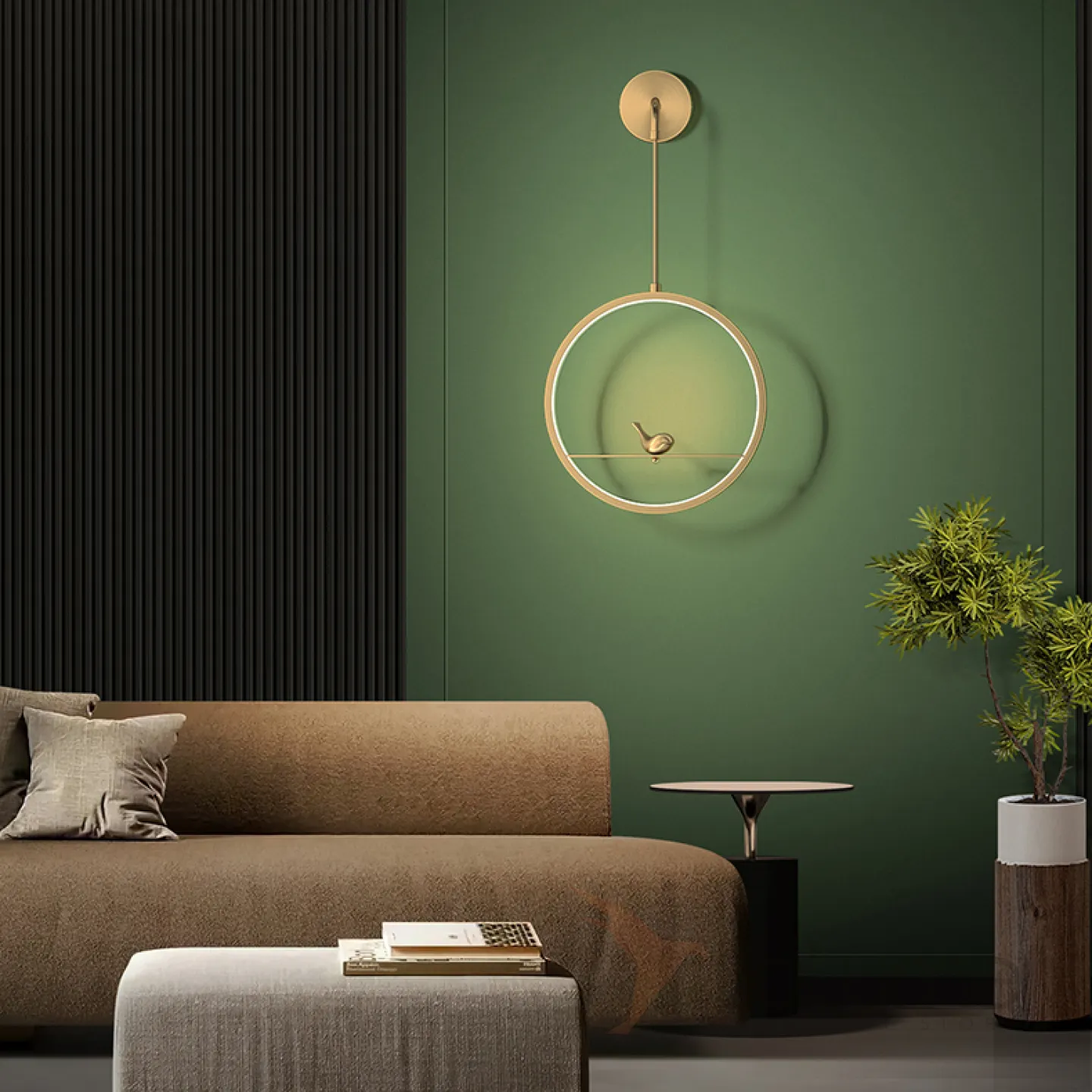 Серия настенных светильников с декоративной птицей на кольцевом каркасе с внутренней LED-подсветкой KOLIBRI WALL D30