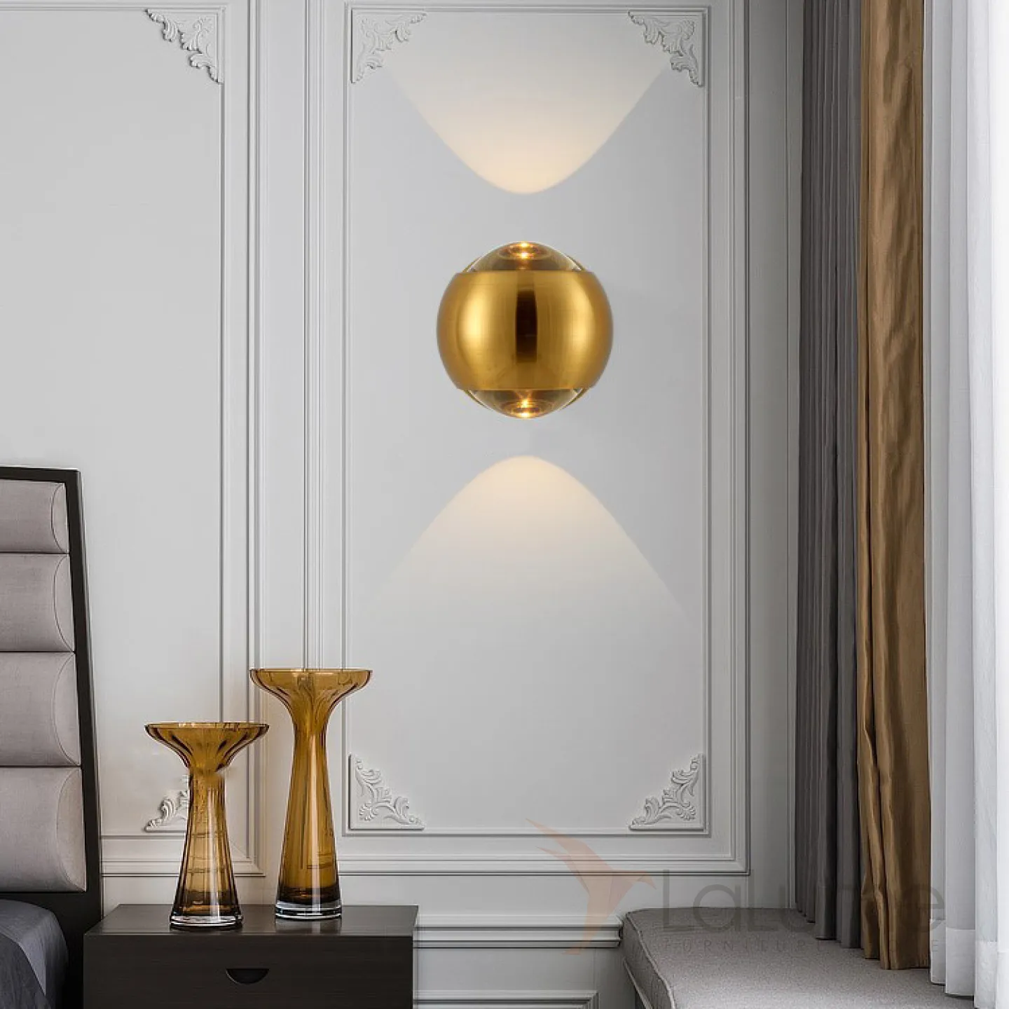 Серия настенных светодиодных светильников с двумя хрустальными оптическими линзами в глянцевом плафоне шарообразной формы JOSS B WALL White