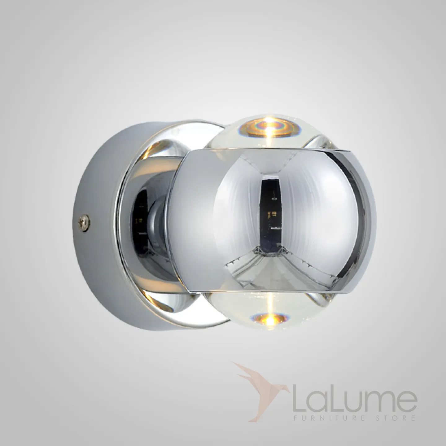 Серия настенных светодиодных светильников с двумя хрустальными оптическими линзами в глянцевом плафоне шарообразной формы JOSS B WALL Chrome