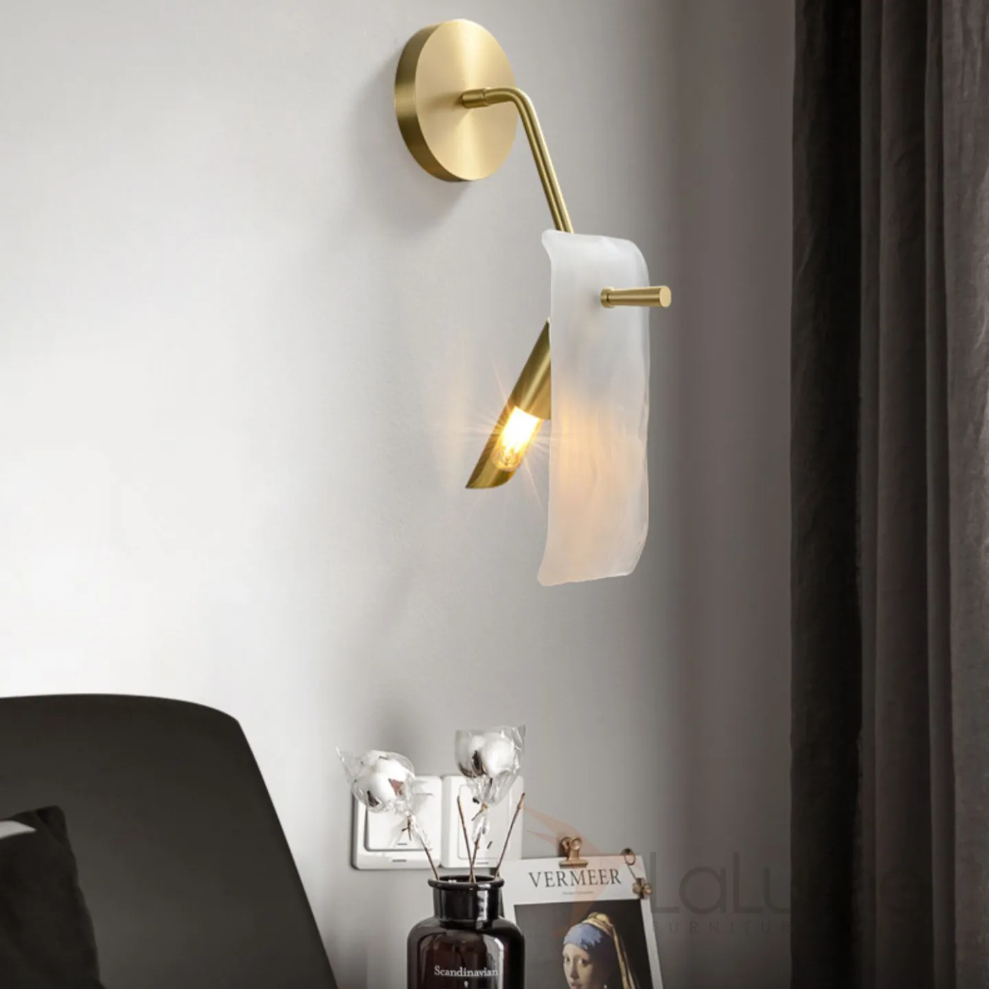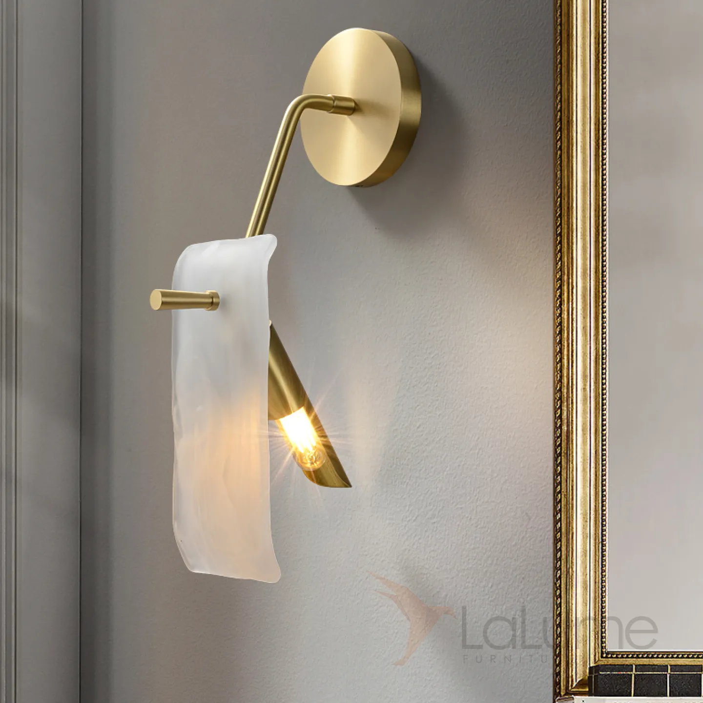 Настенный светильник с прямоугольным рассеивателем из стекла с морозным эффектом на угловом кроншейне HELMAR WALL