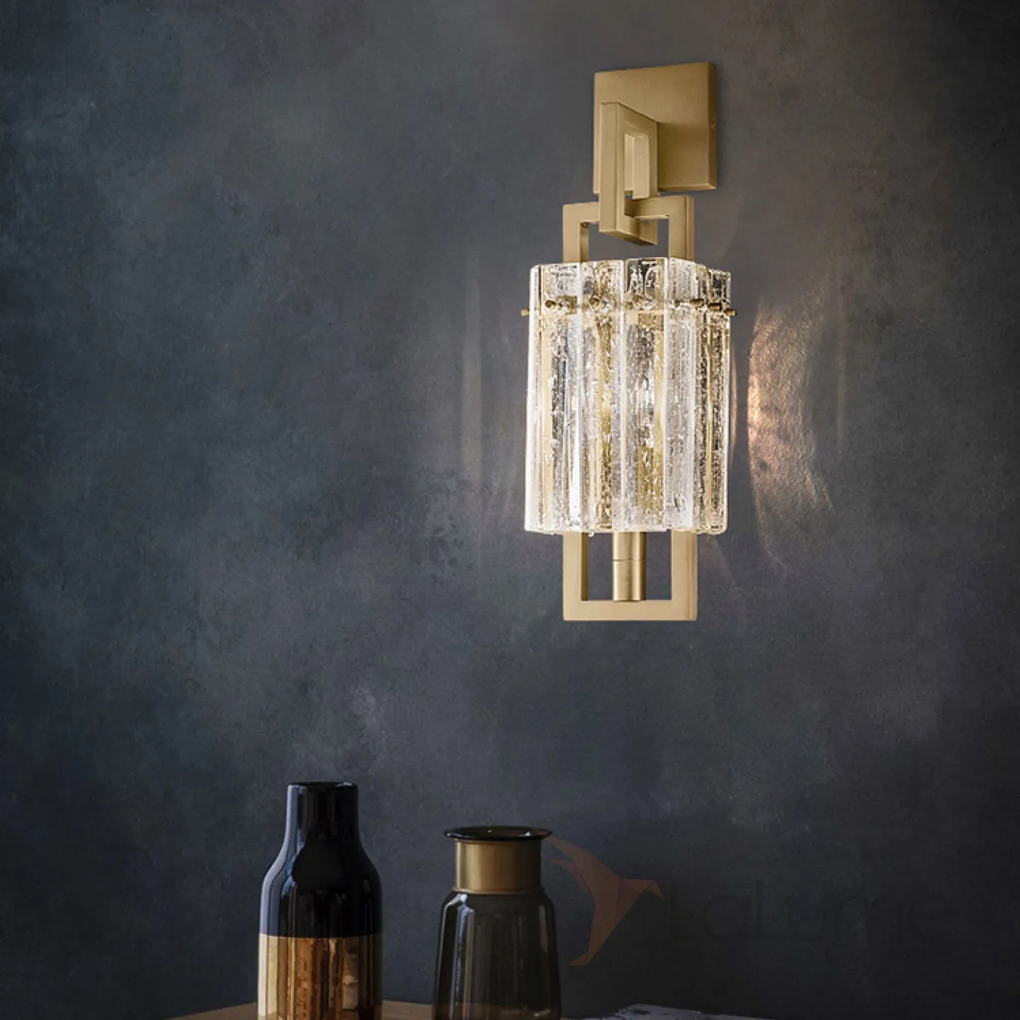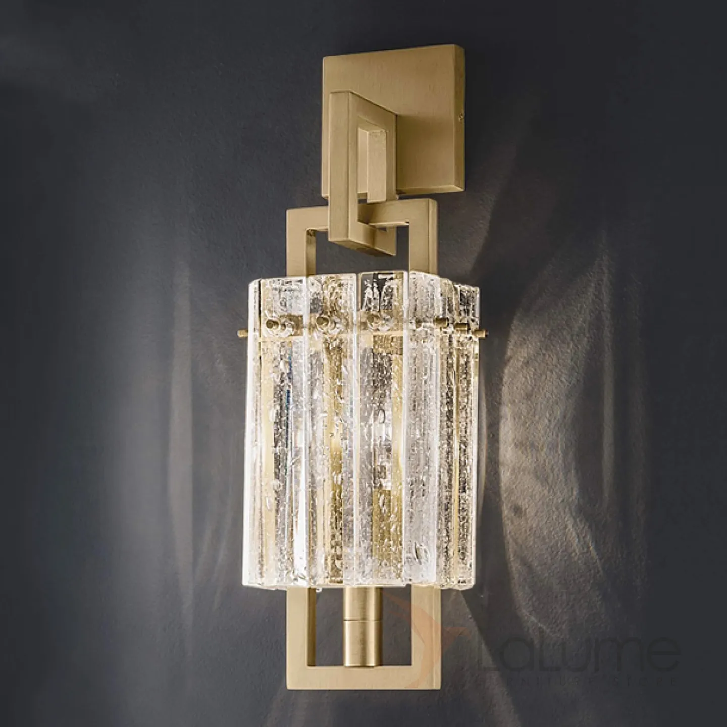 Бра с прямоугольным плафоном из хрустальных пластин с эффектом льда на кронштейне из металлических рамок BENNA WALL