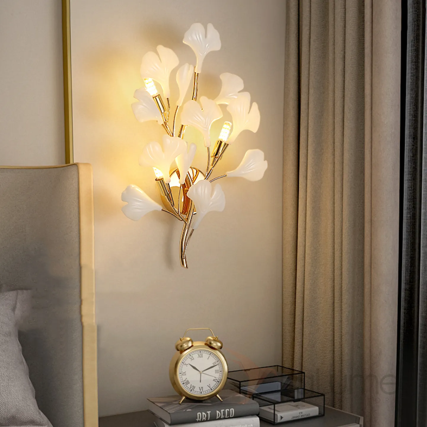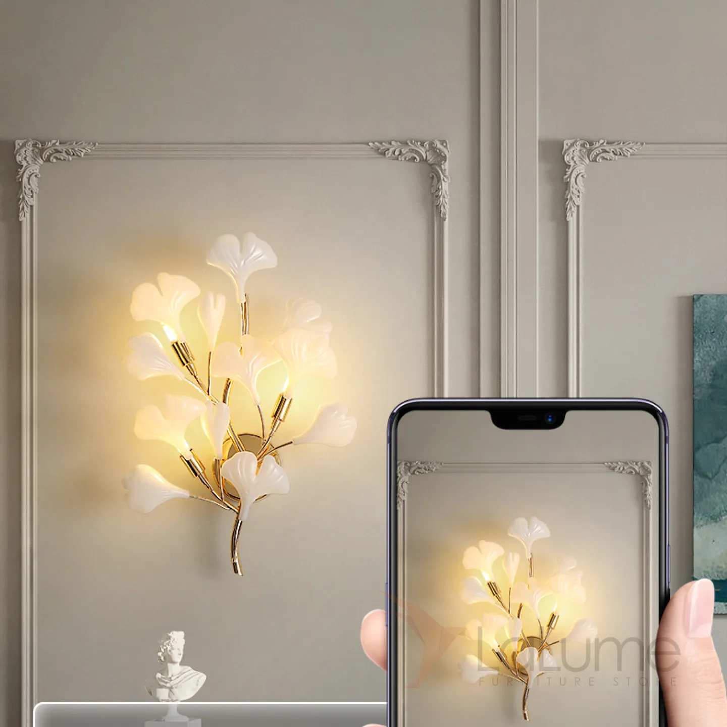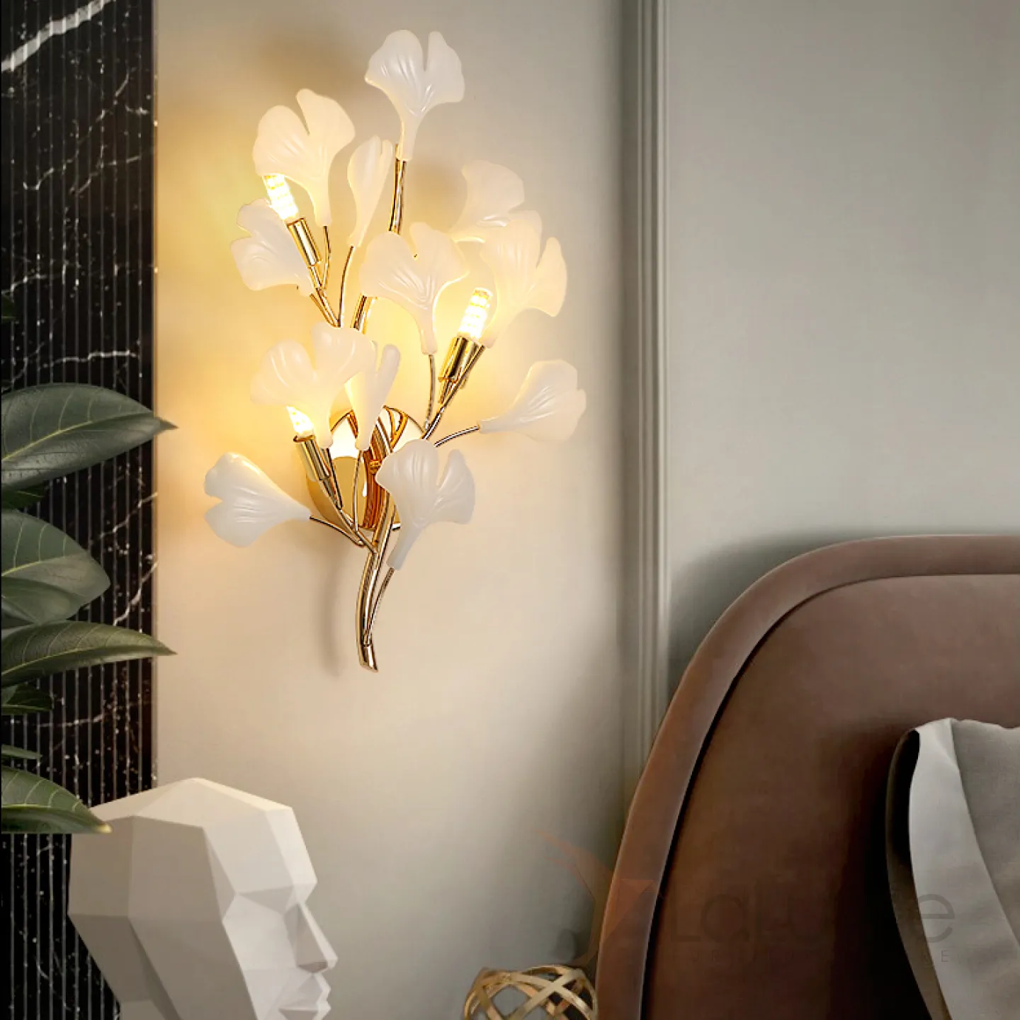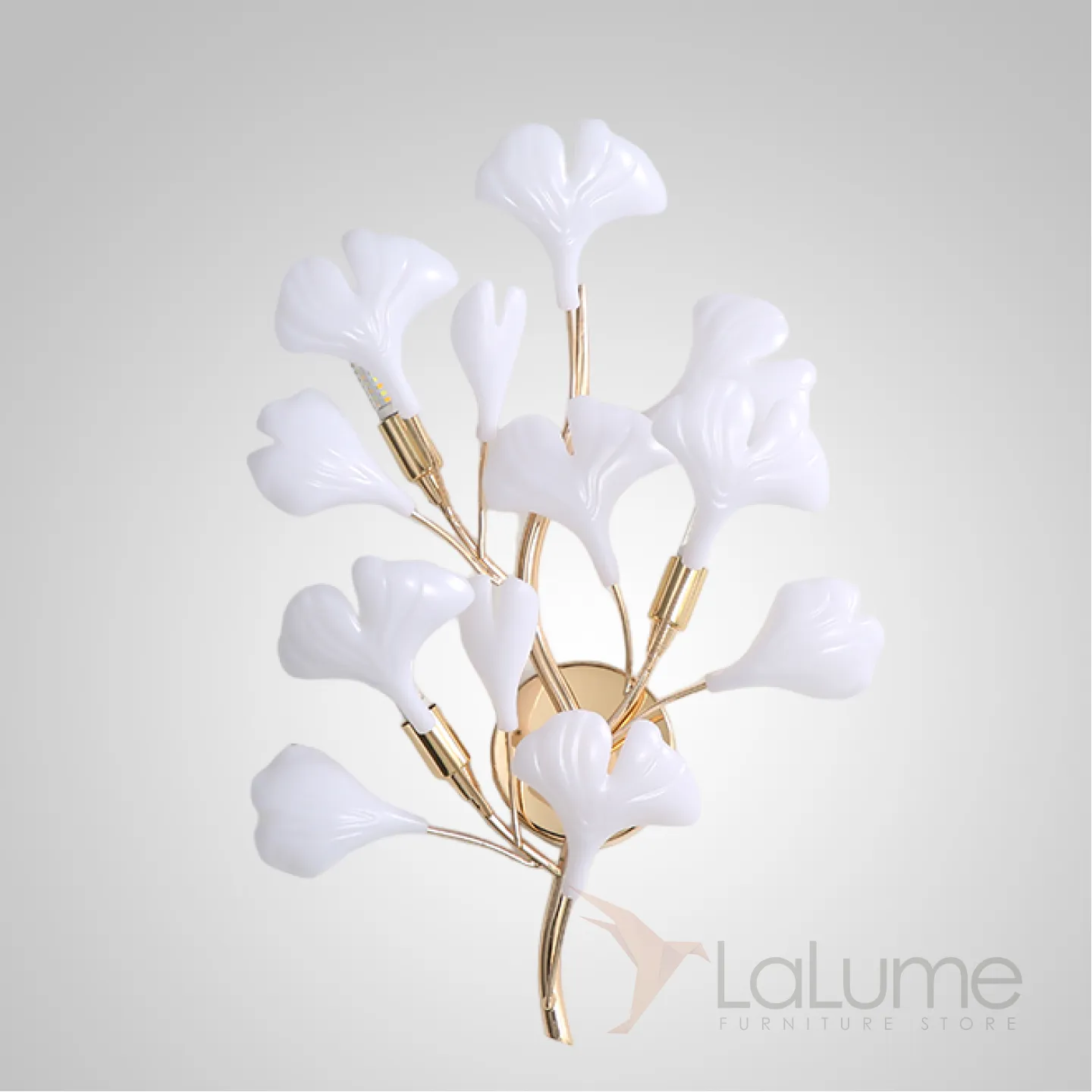 Серия настенных светильников на ветвистом каркасе с белыми и латунными рассеивателями с природными мотивами JULIETTA B WALL L35