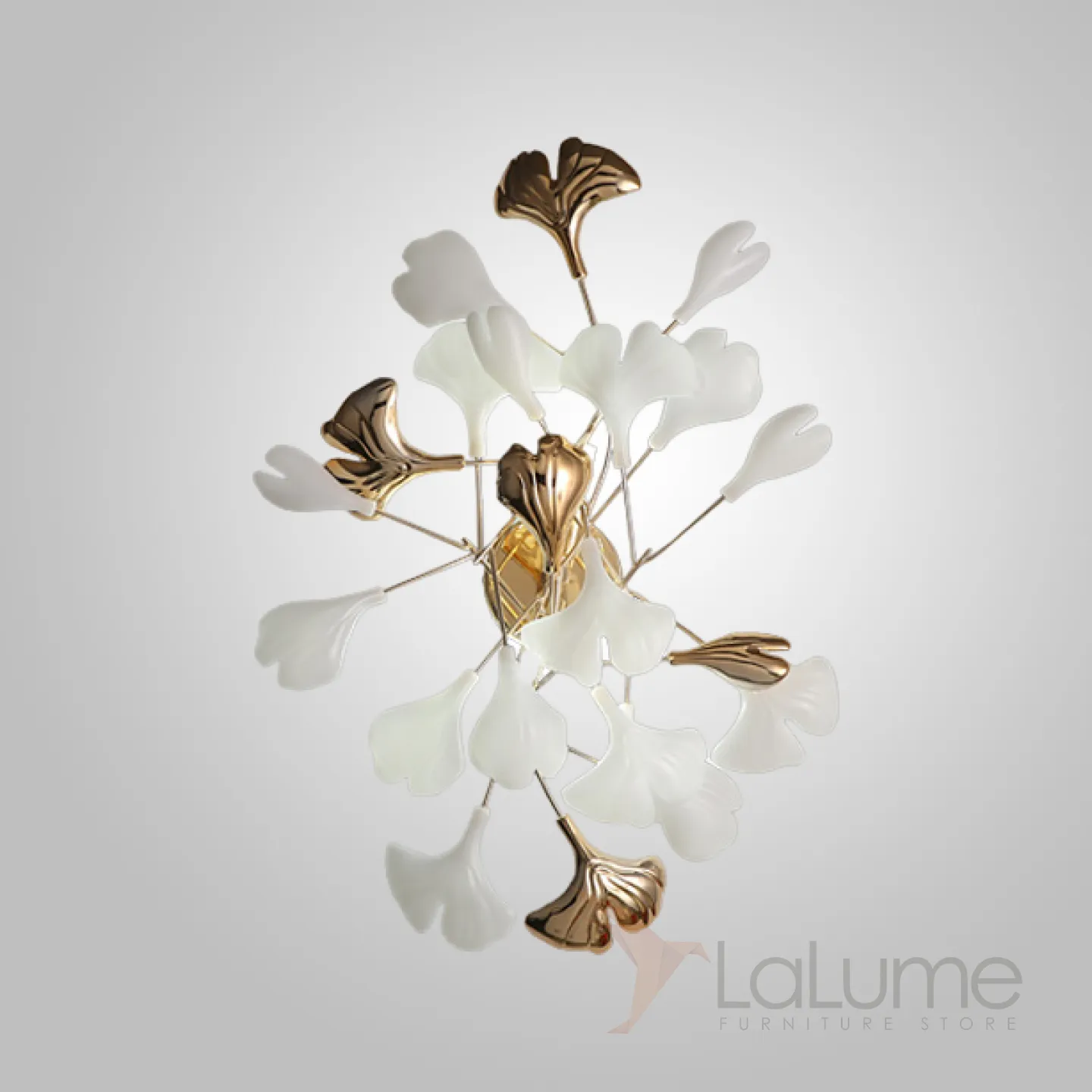 Серия настенных светильников на ветвистом каркасе с белыми и латунными рассеивателями с природными мотивами JULIETTA B WALL L40