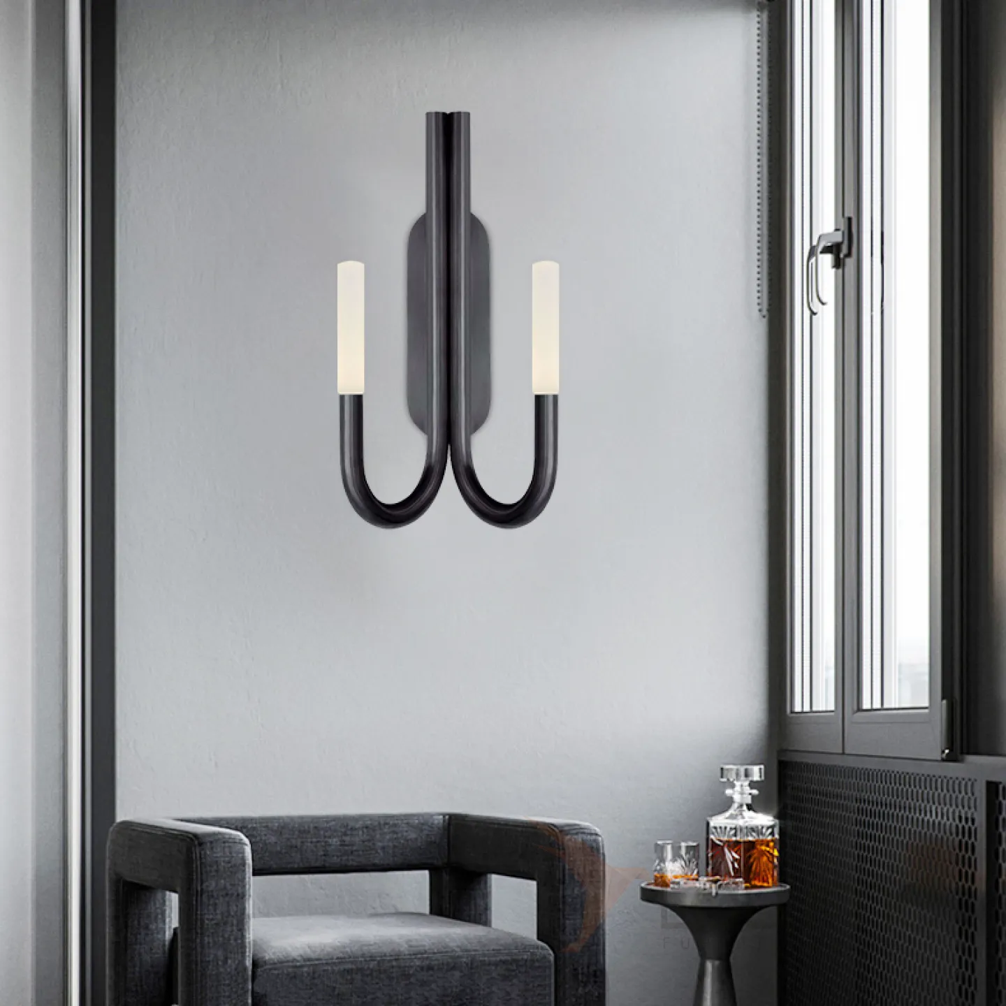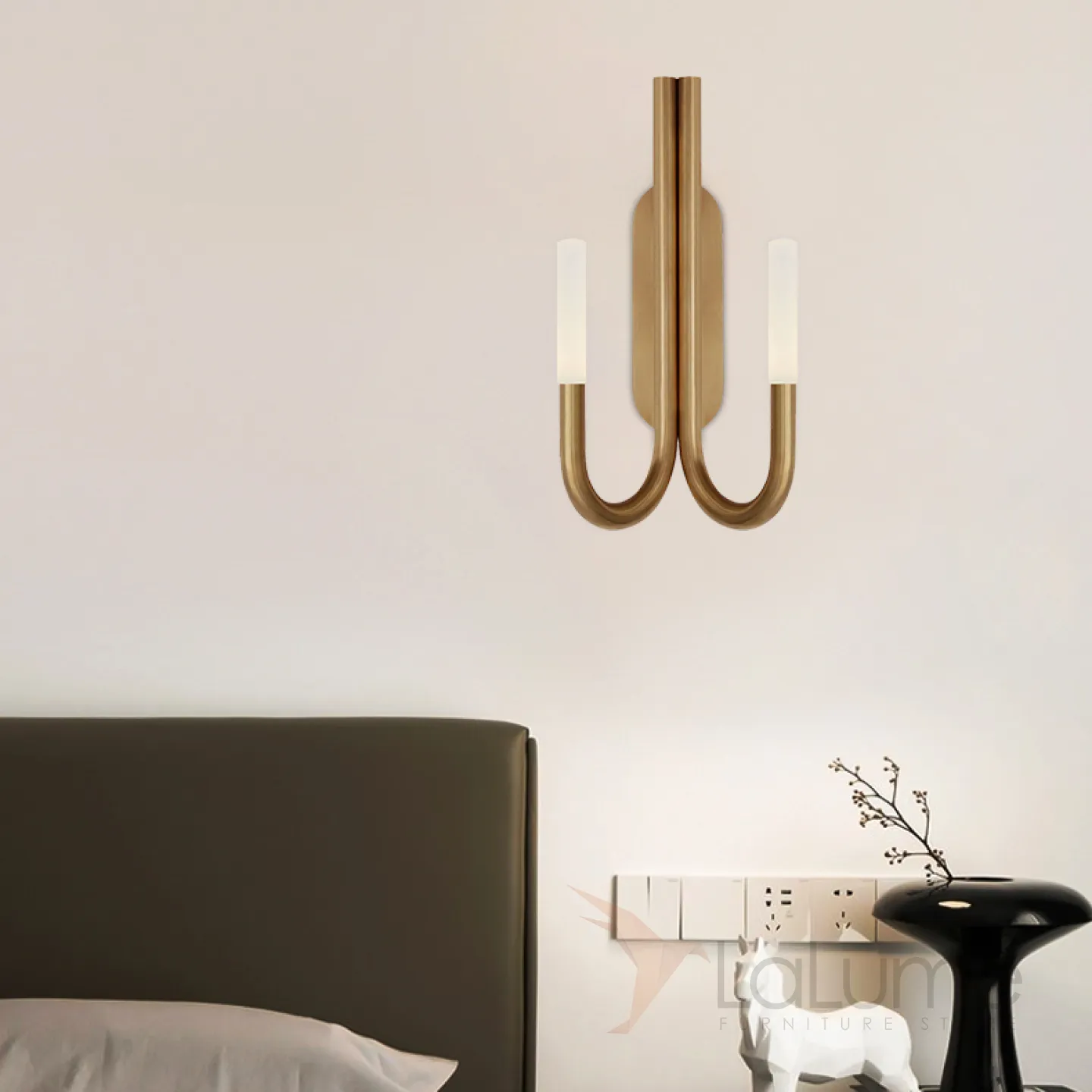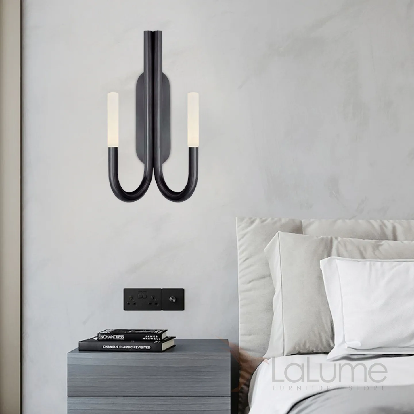 Серия настенных светильников в классическом стиле с двумя матовыми рассеивателями на изогнутых рожках LAURA WALL Black