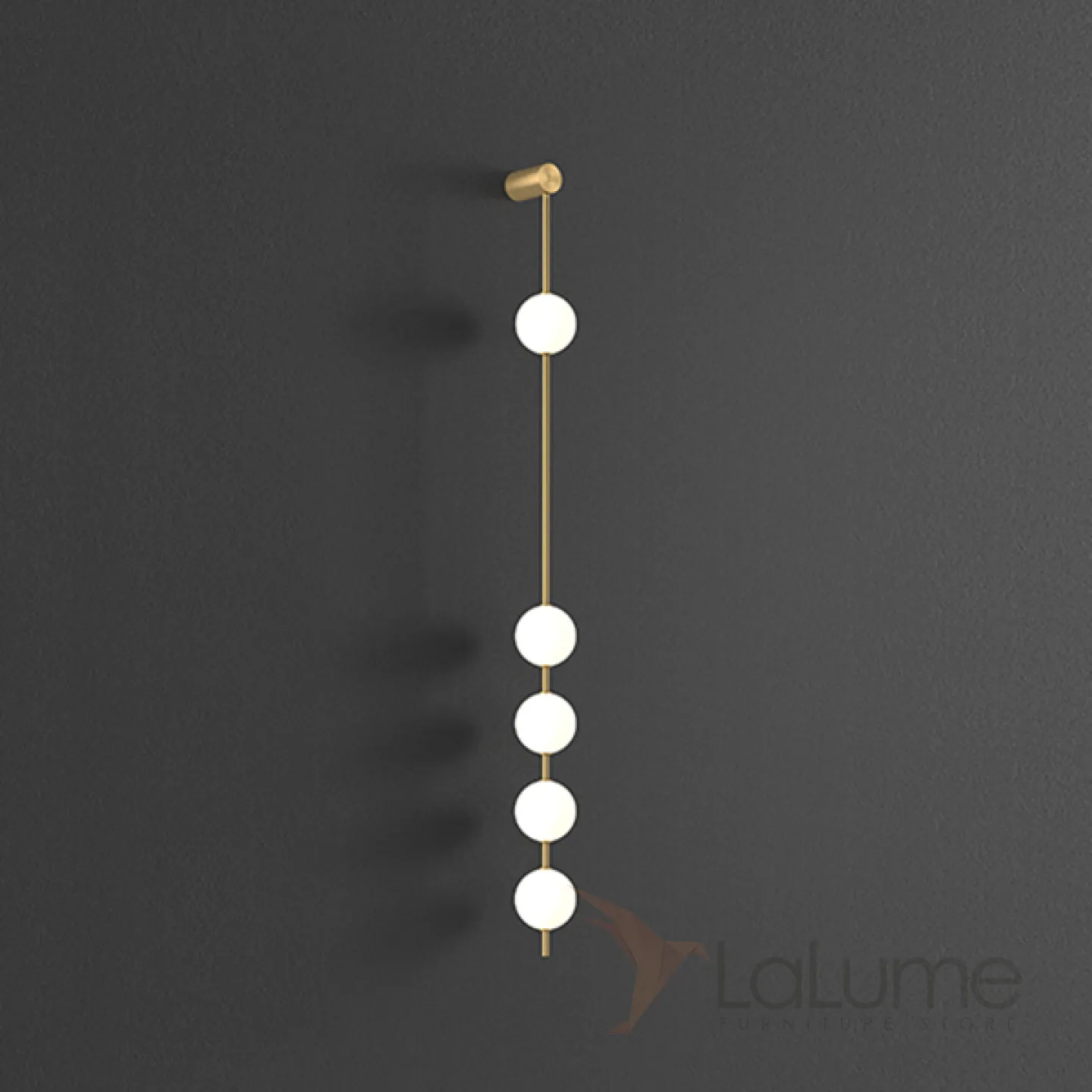 Серия настенных светильников с белыми шарообразными плафонами на вертикальной стойке из настоящей латуни ADILS WALL H158