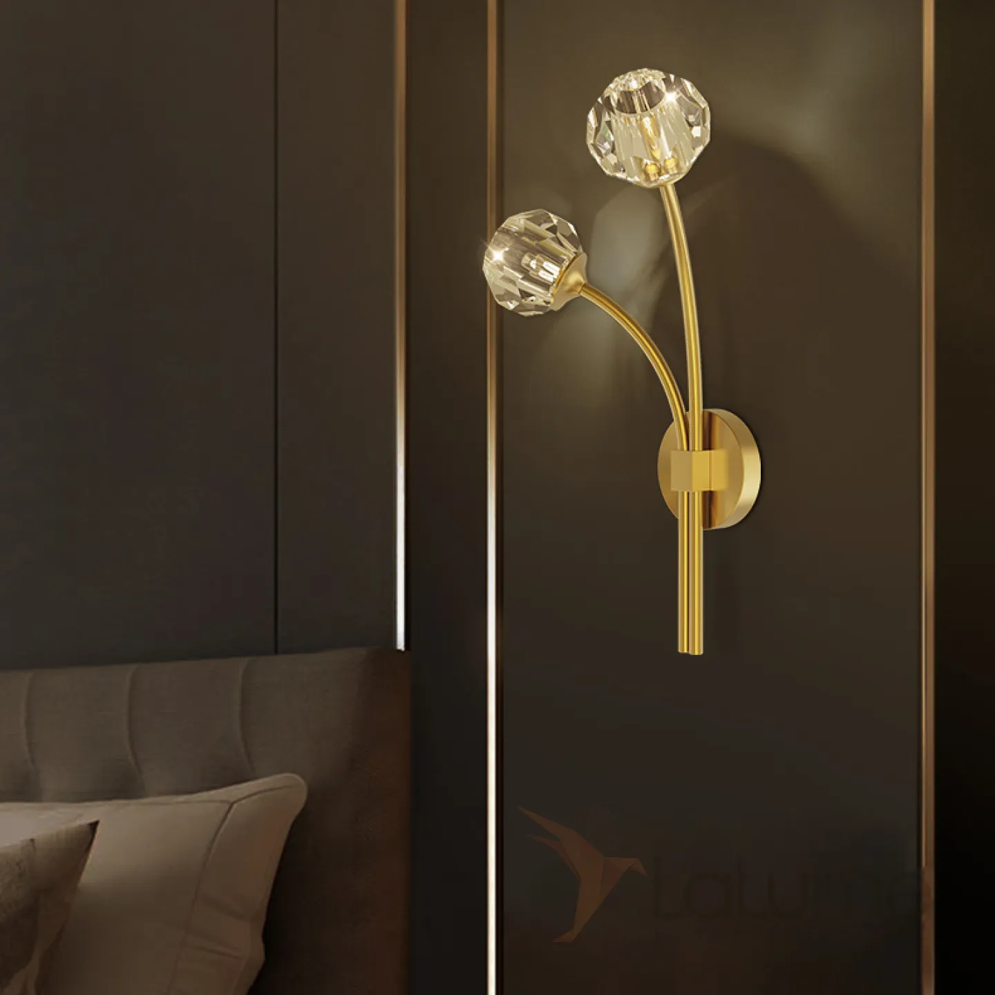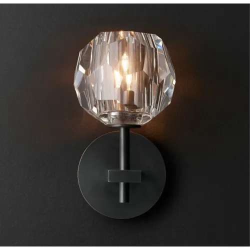 Серия настенных светодиодных светильников с хрустальными плафонами в форме кристаллов на изогнутых рожках RH E WALL L2 Left Black