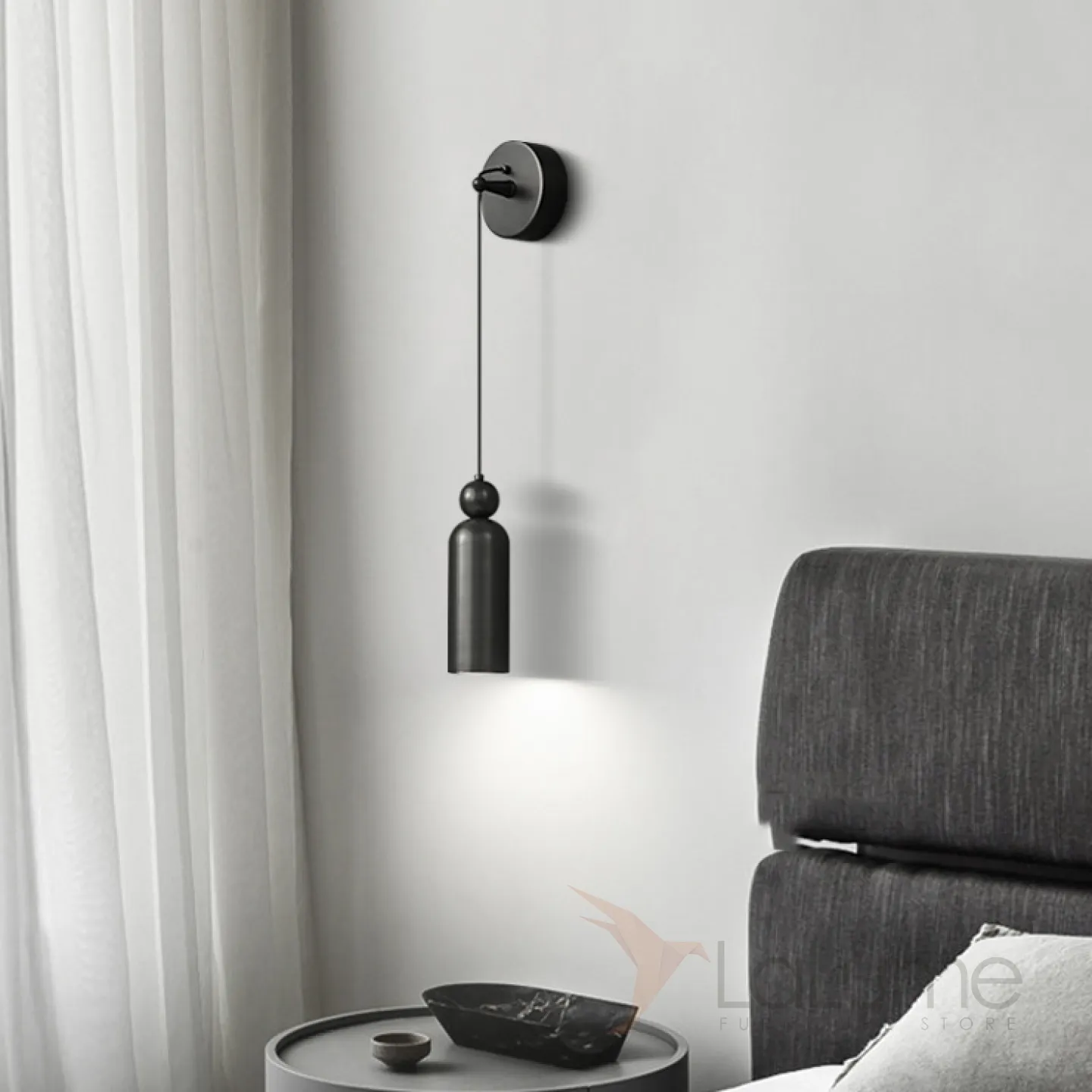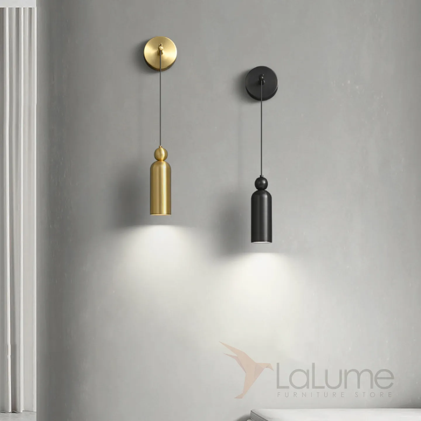 Серия настенных светодиодных светильников с цилиндрическим корпусом и шарообразным клипом из натуральной и черненой латуни LEFFE WALL Black