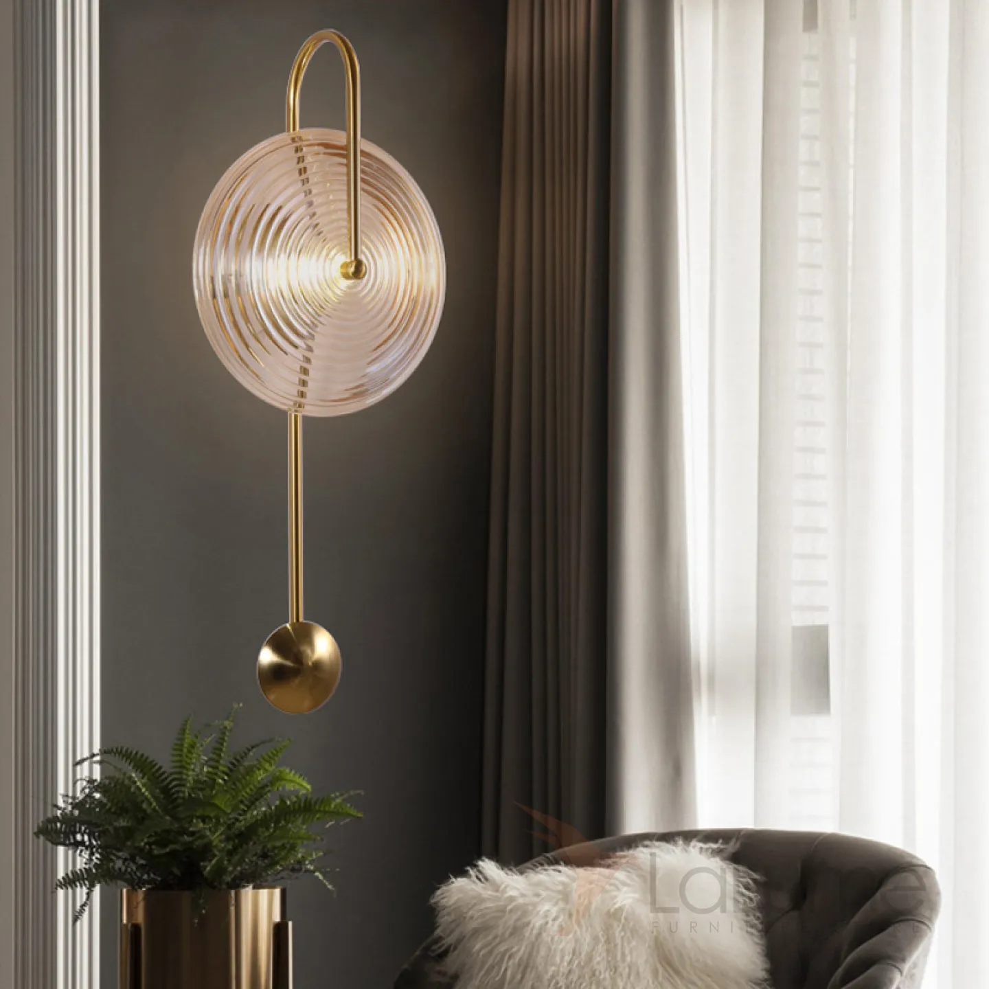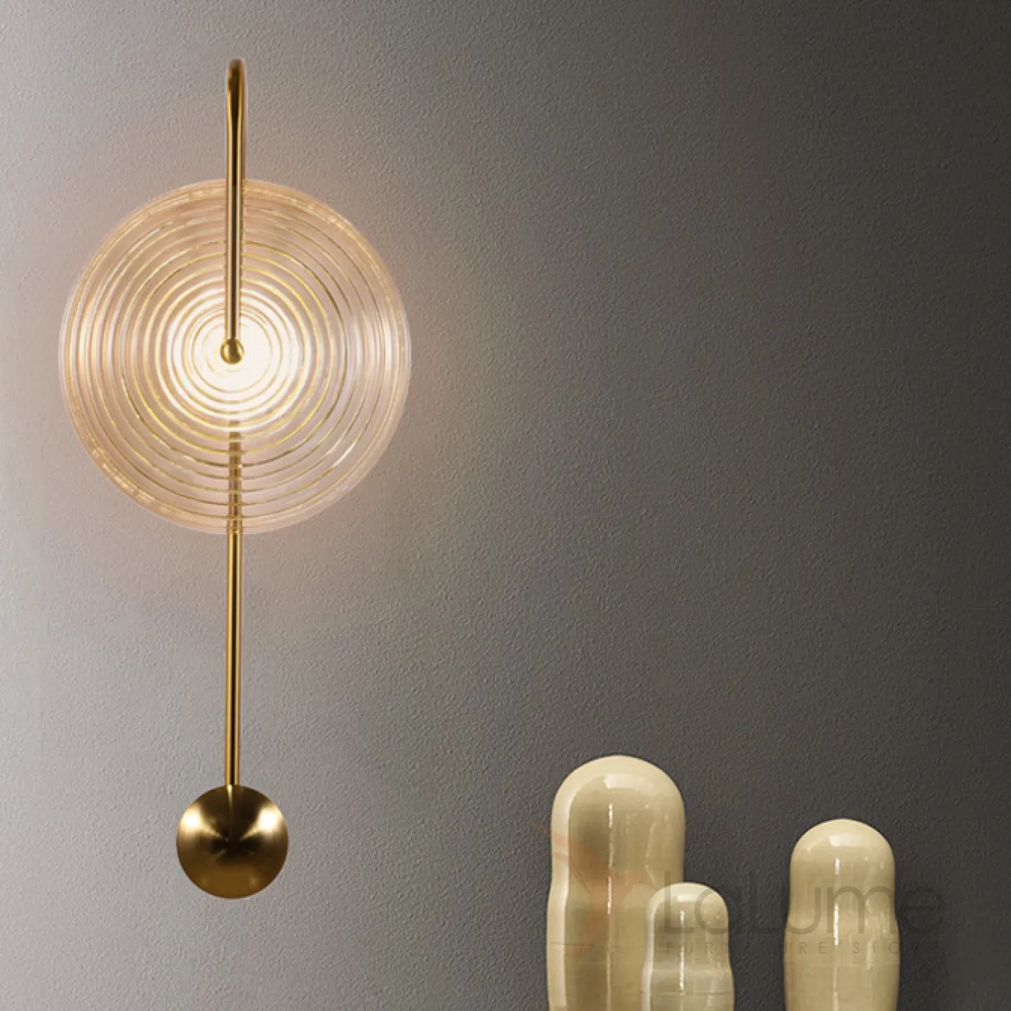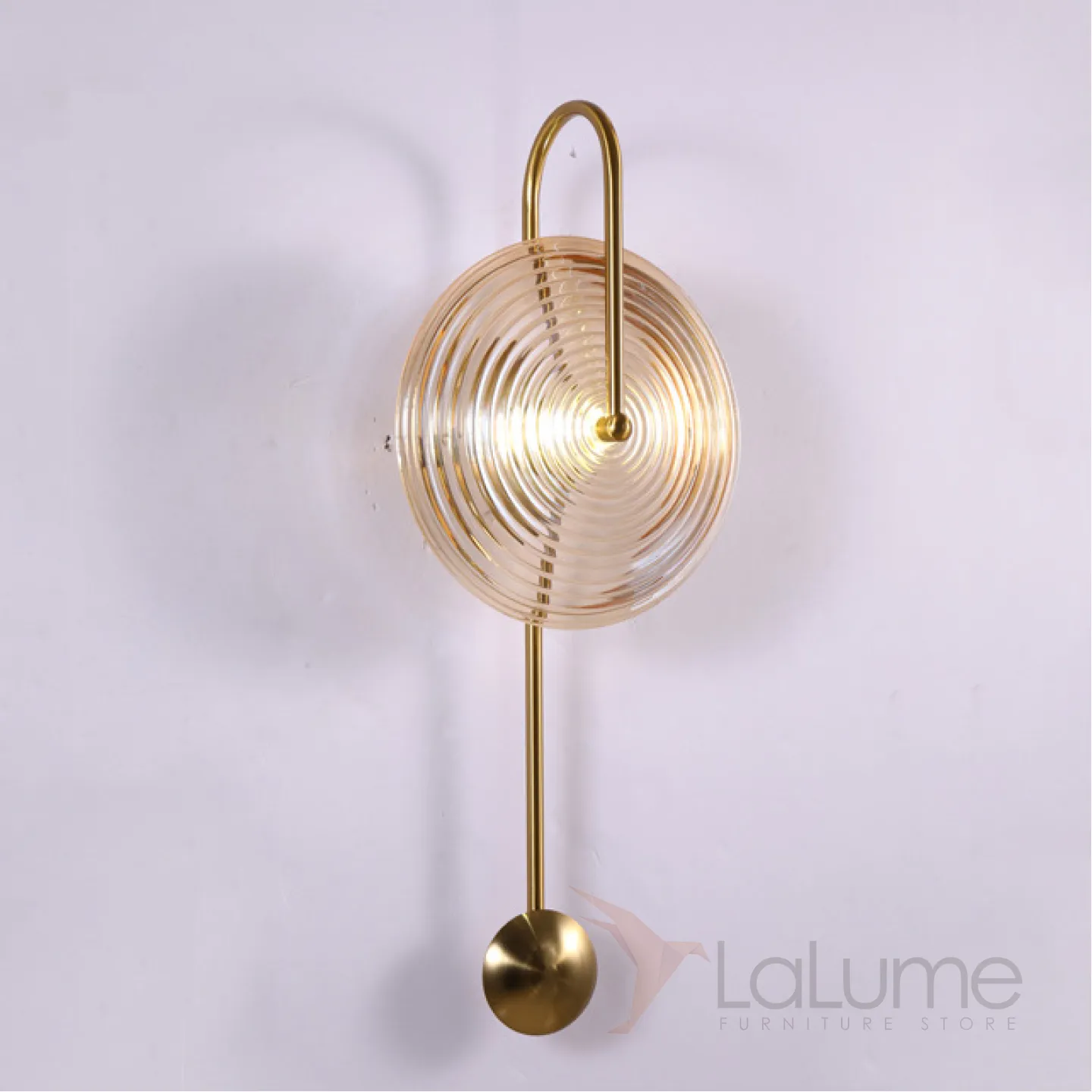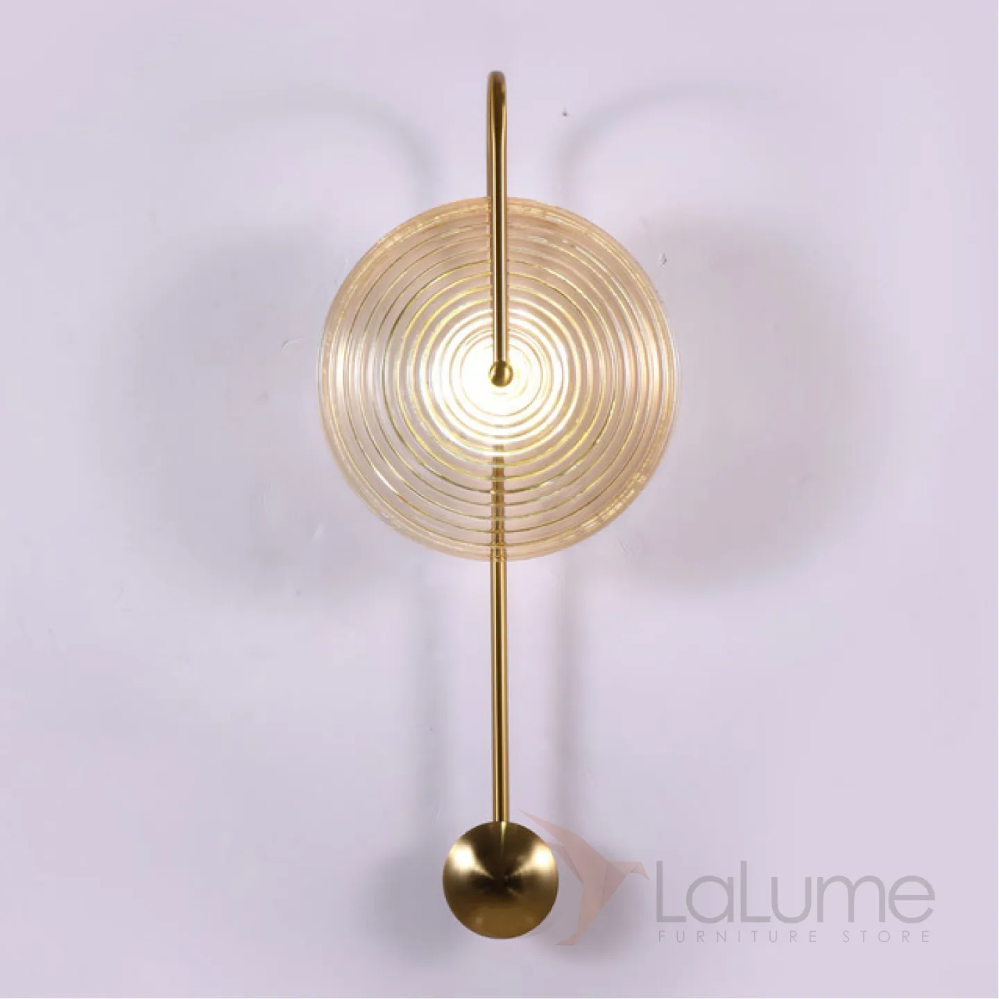 Настенный светильник с рассеивателем в форме диска из рельефного стекла на дуговом кронштейне MOGENS