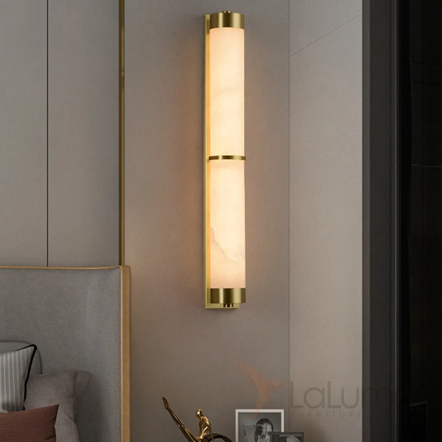Серия настенных светодиодных светильников с цилиндрическим корпусом из натурального белого мрамора VIEW WALL H80
