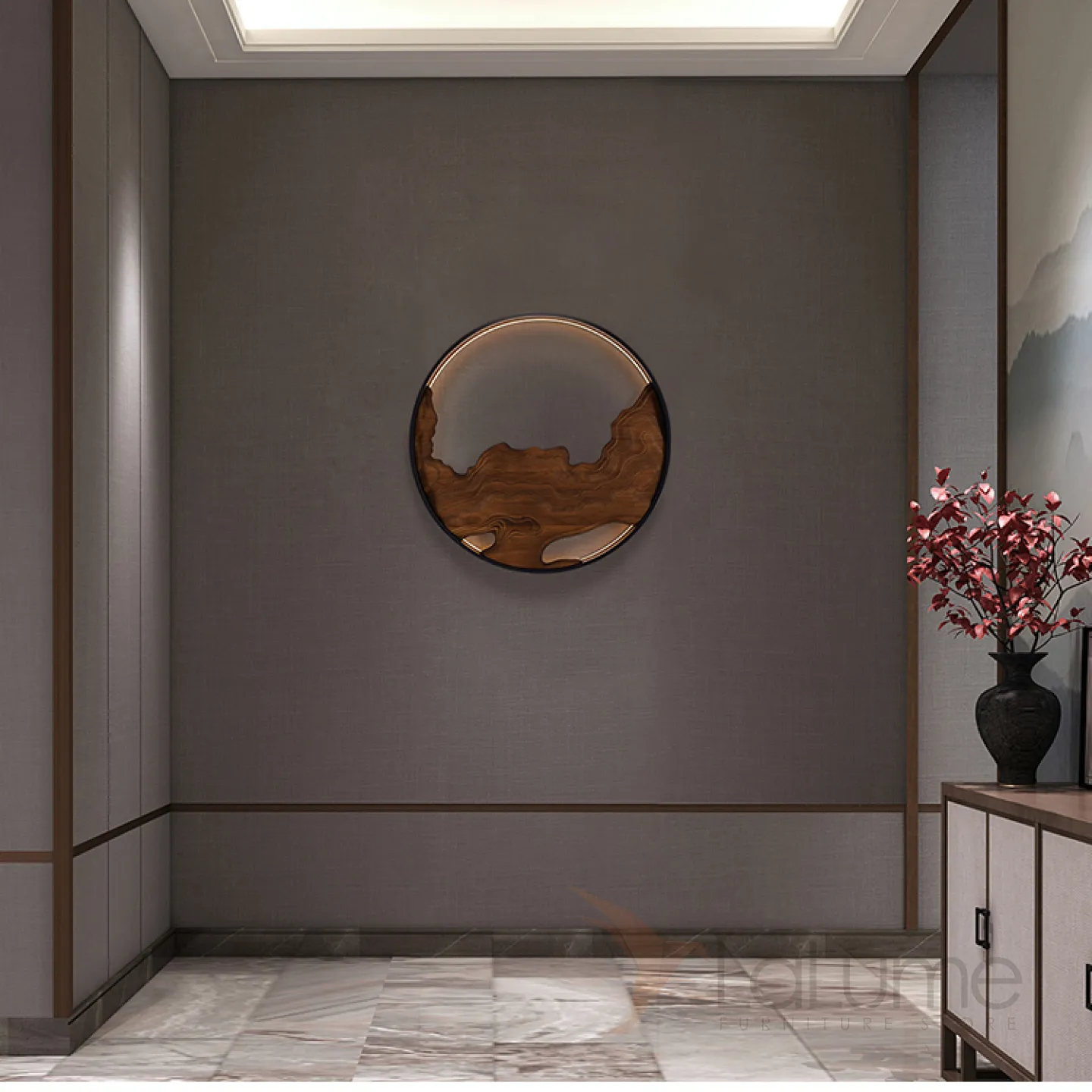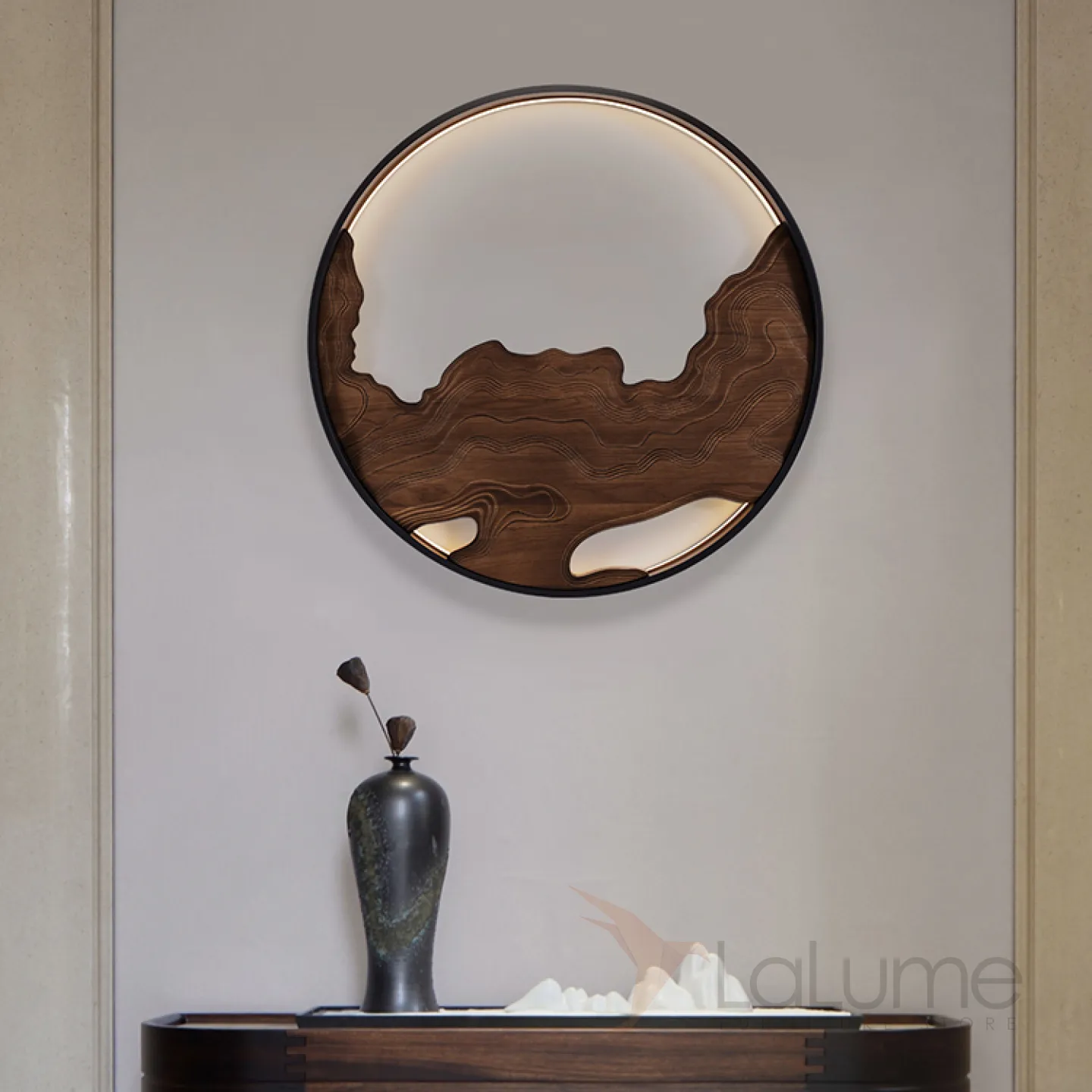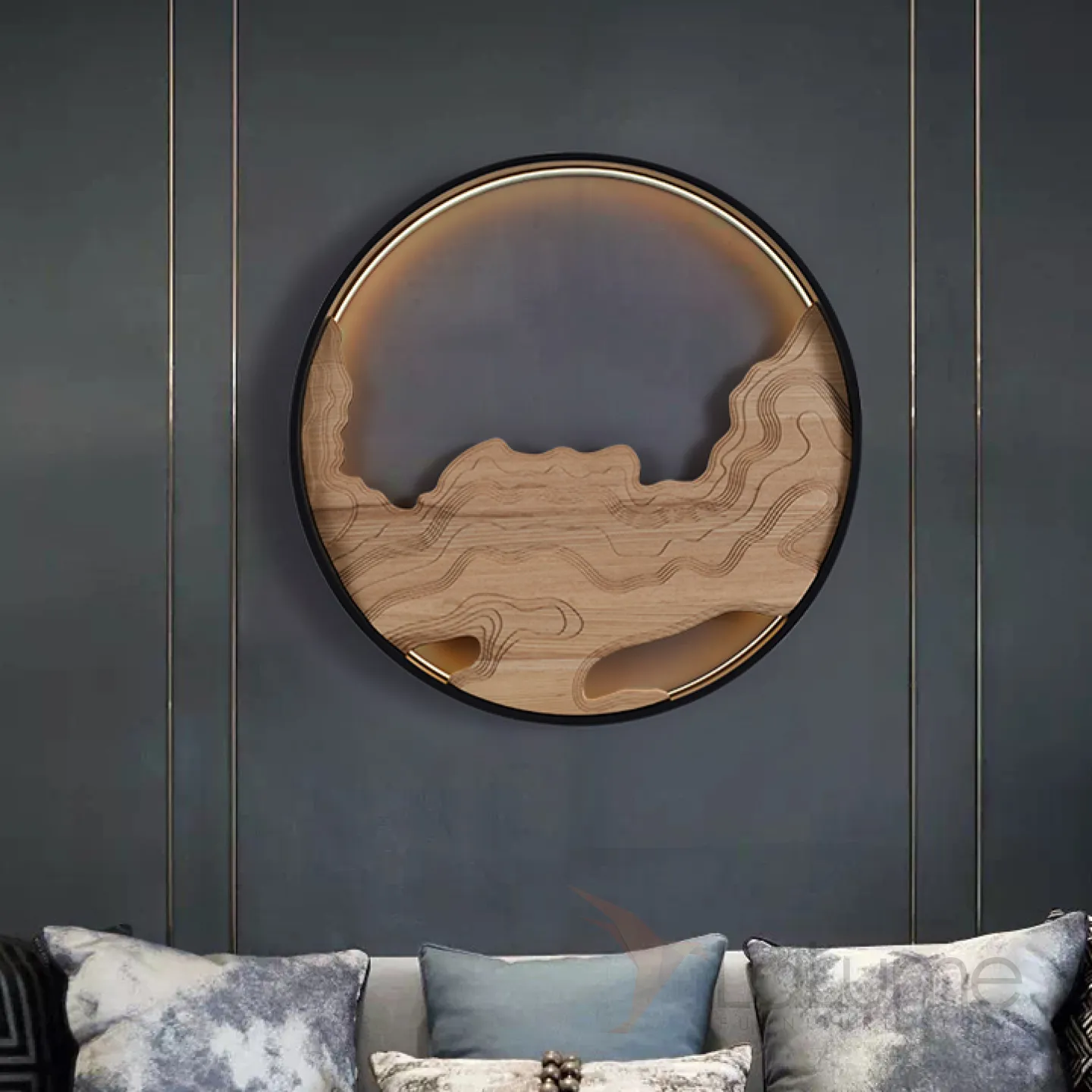 Серия настенных светодиодных светильников с деревянным декором на кольцевом корпусе ARNAR D81,5 Sand