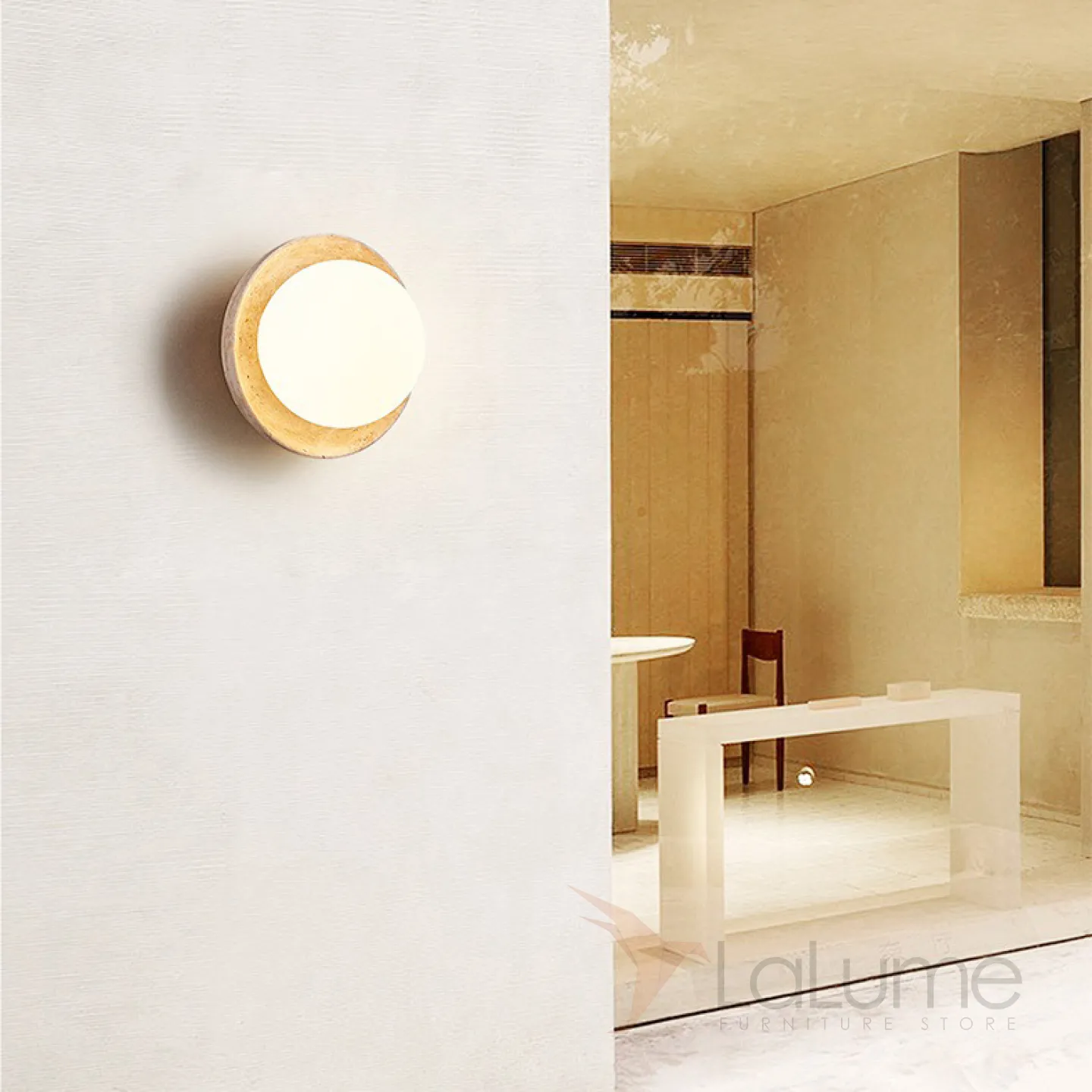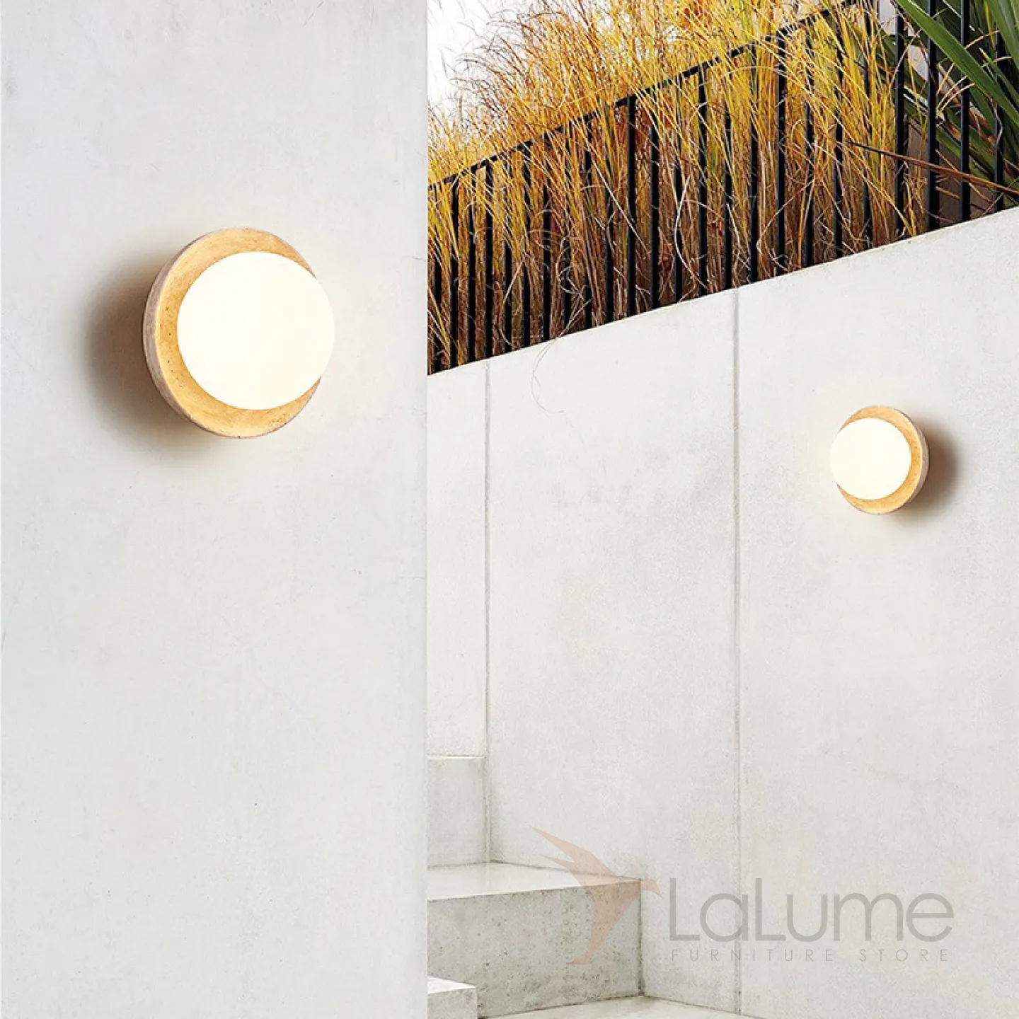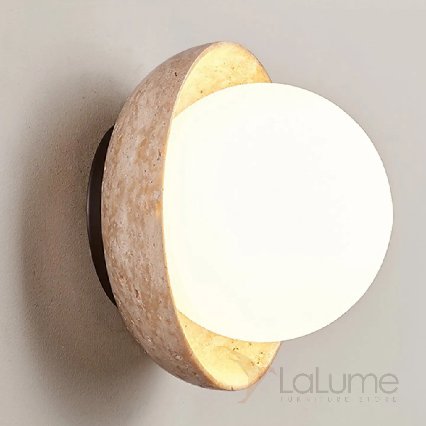 Настенный светильник с белым шарообразным плафоном на каменном основании в форме чаши SAMPE WALL