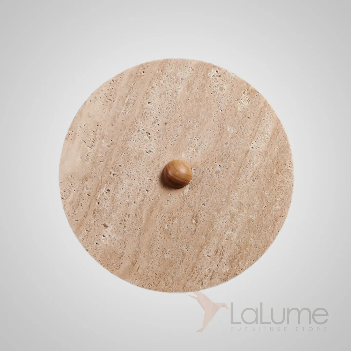 Настенный светодиодный светильник с плоским дисковидным рассеивателем с каменной текстурой и деревянным центром JOAR B D30