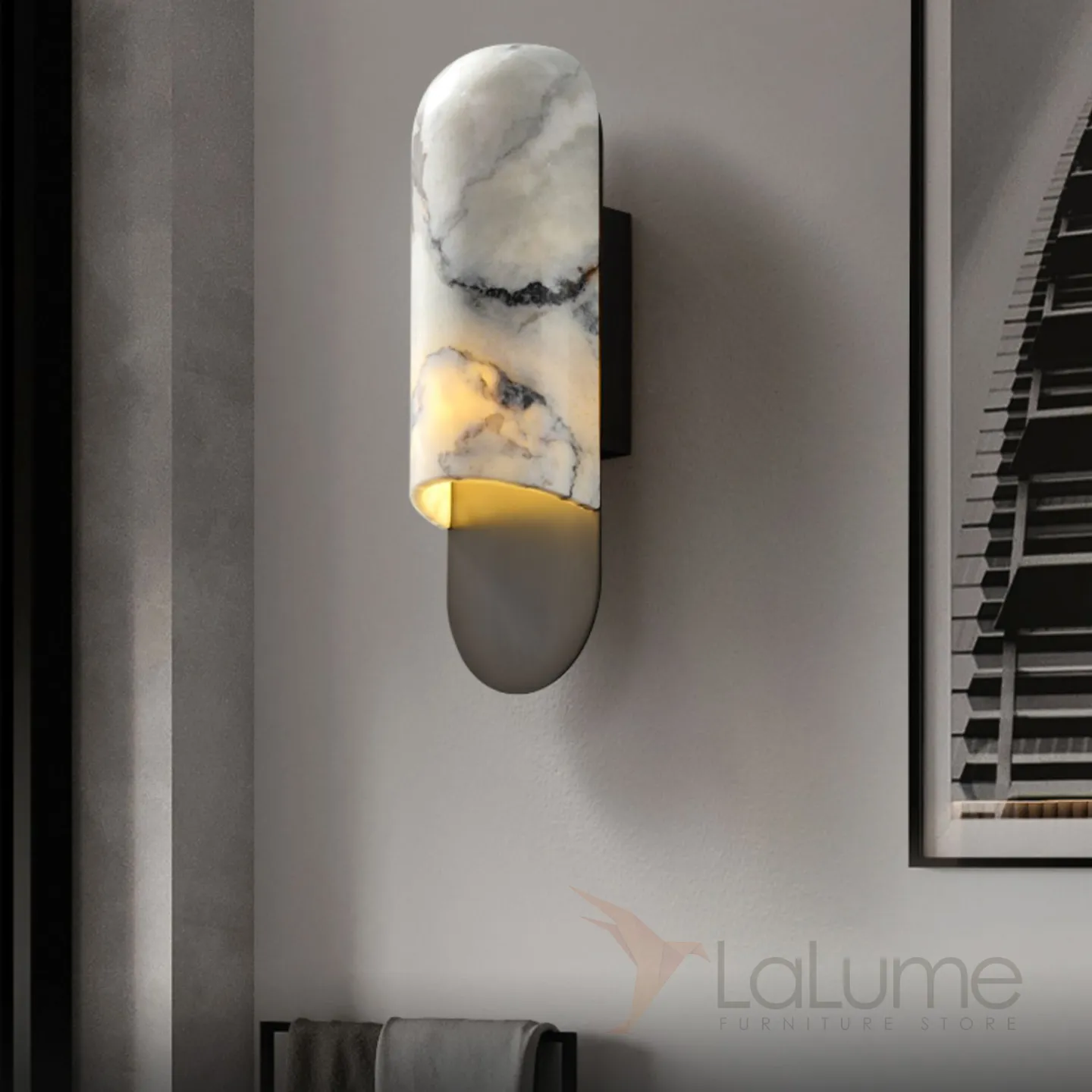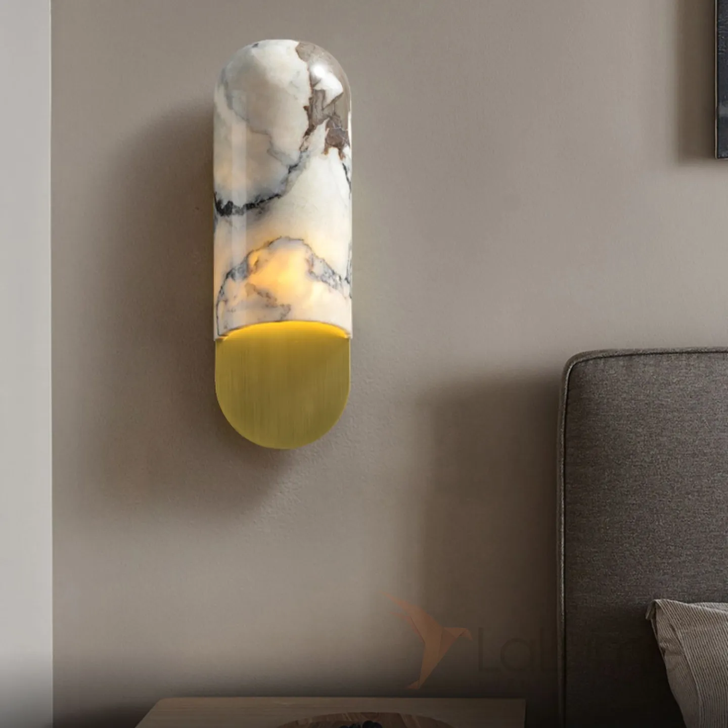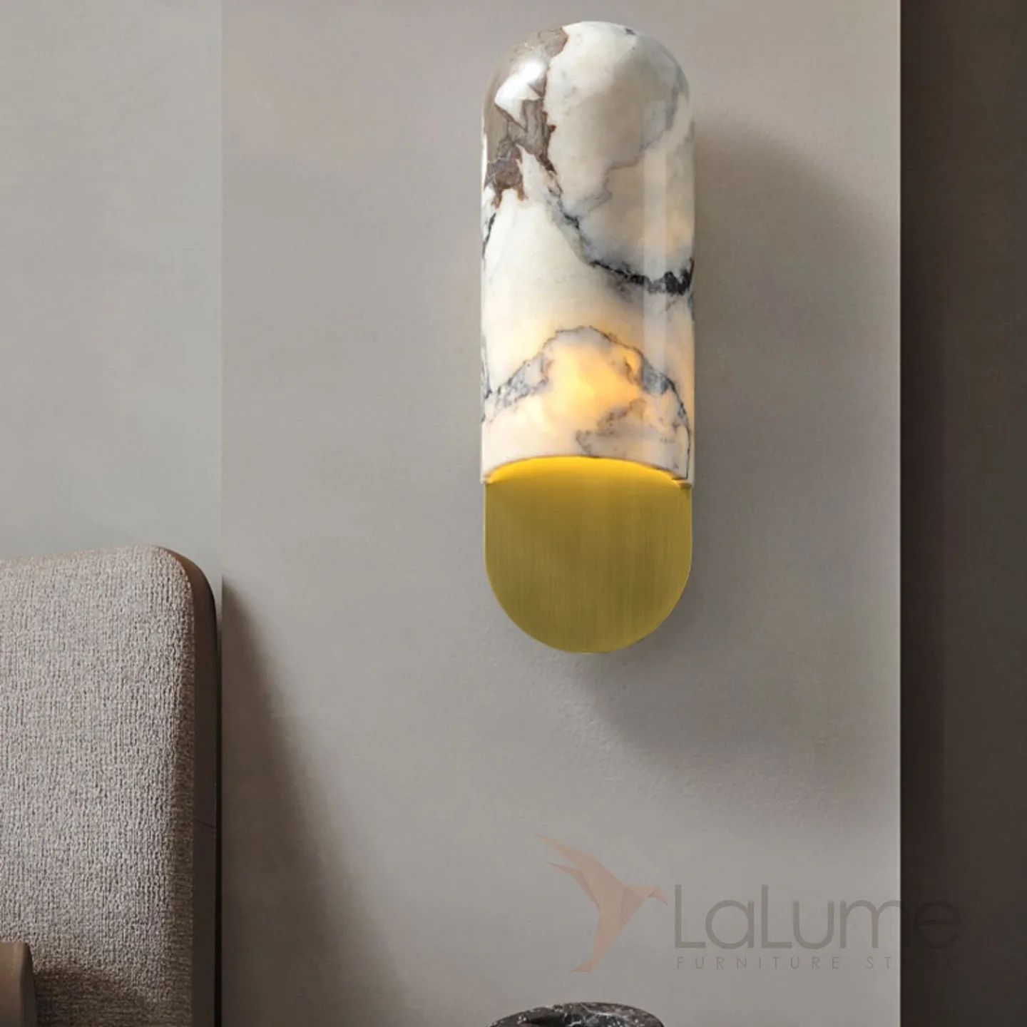 Серия настенных светильников с выгнутым округлым рассеивателем из натурального мрамора VILHO Brass