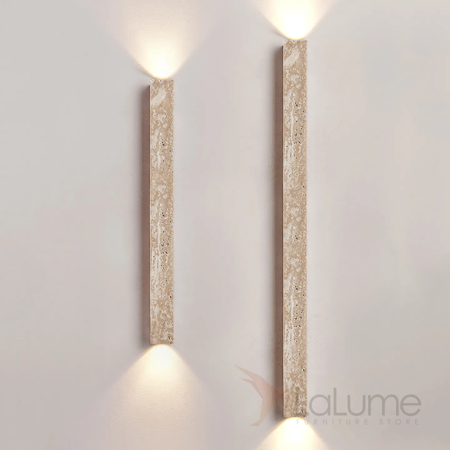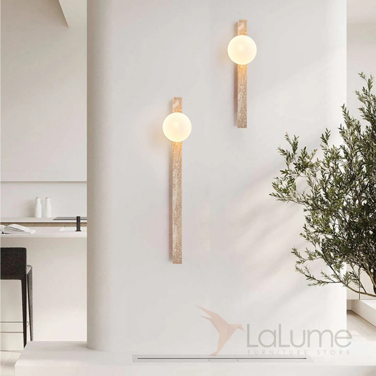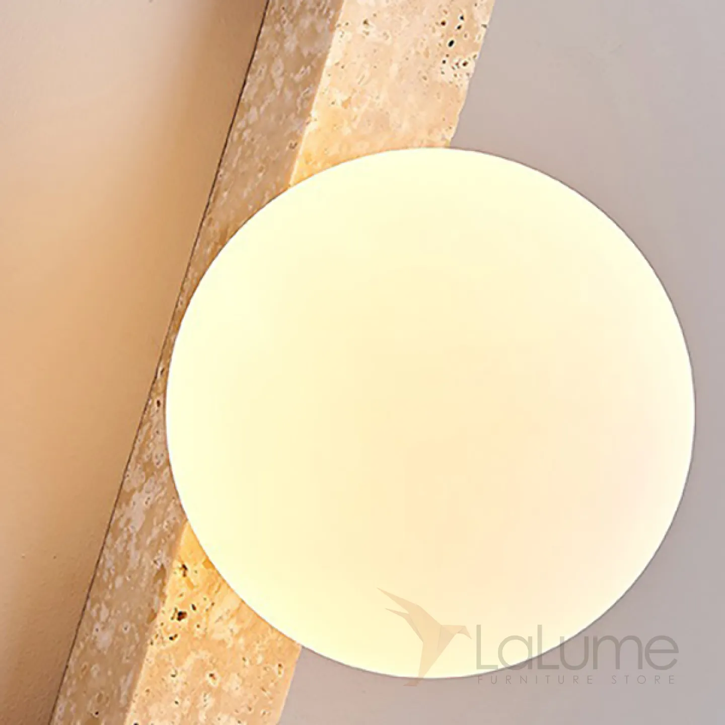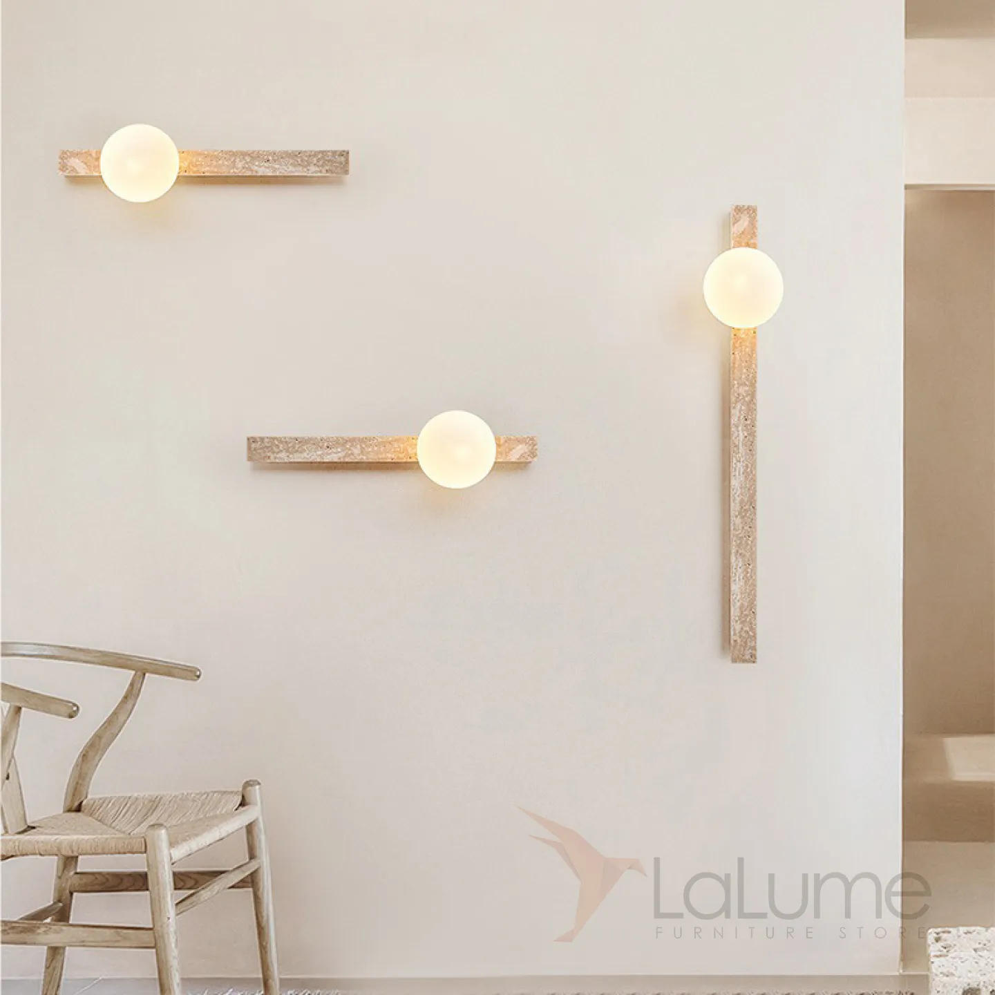 Серия настенных светильников с вытянутым прямоугольным корпусом из камня и шарообразным плафоном OBBE A L120
