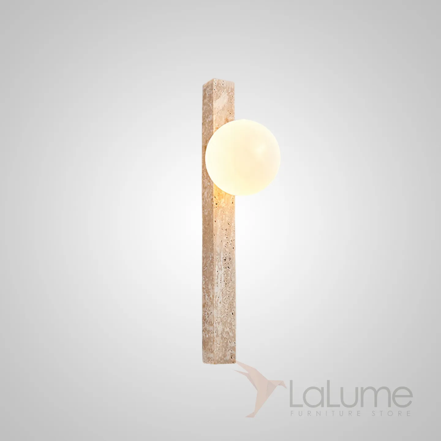Серия настенных светильников с вытянутым прямоугольным корпусом из камня и шарообразным плафоном OBBE B L60
