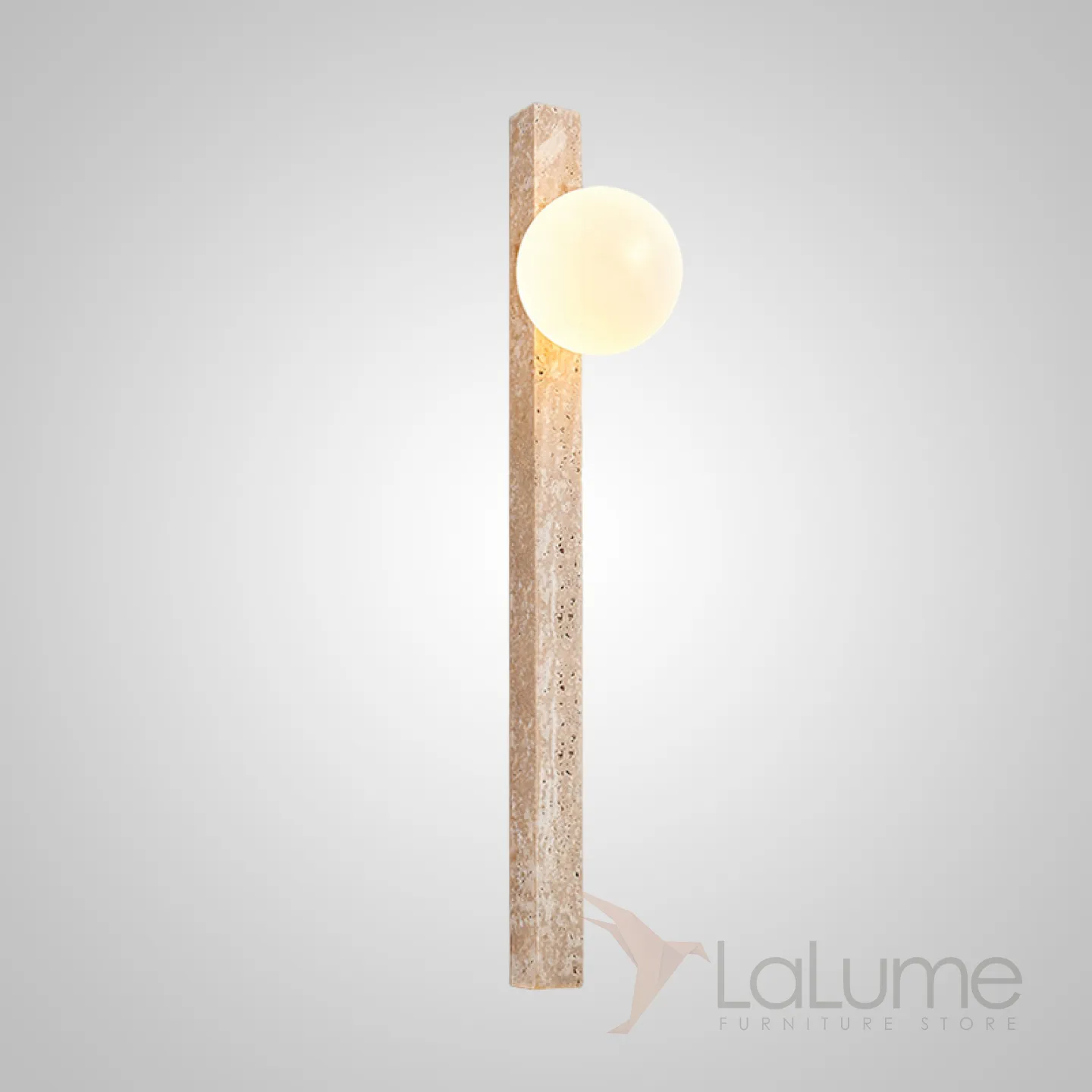 Серия настенных светильников с вытянутым прямоугольным корпусом из камня и шарообразным плафоном OBBE B L120