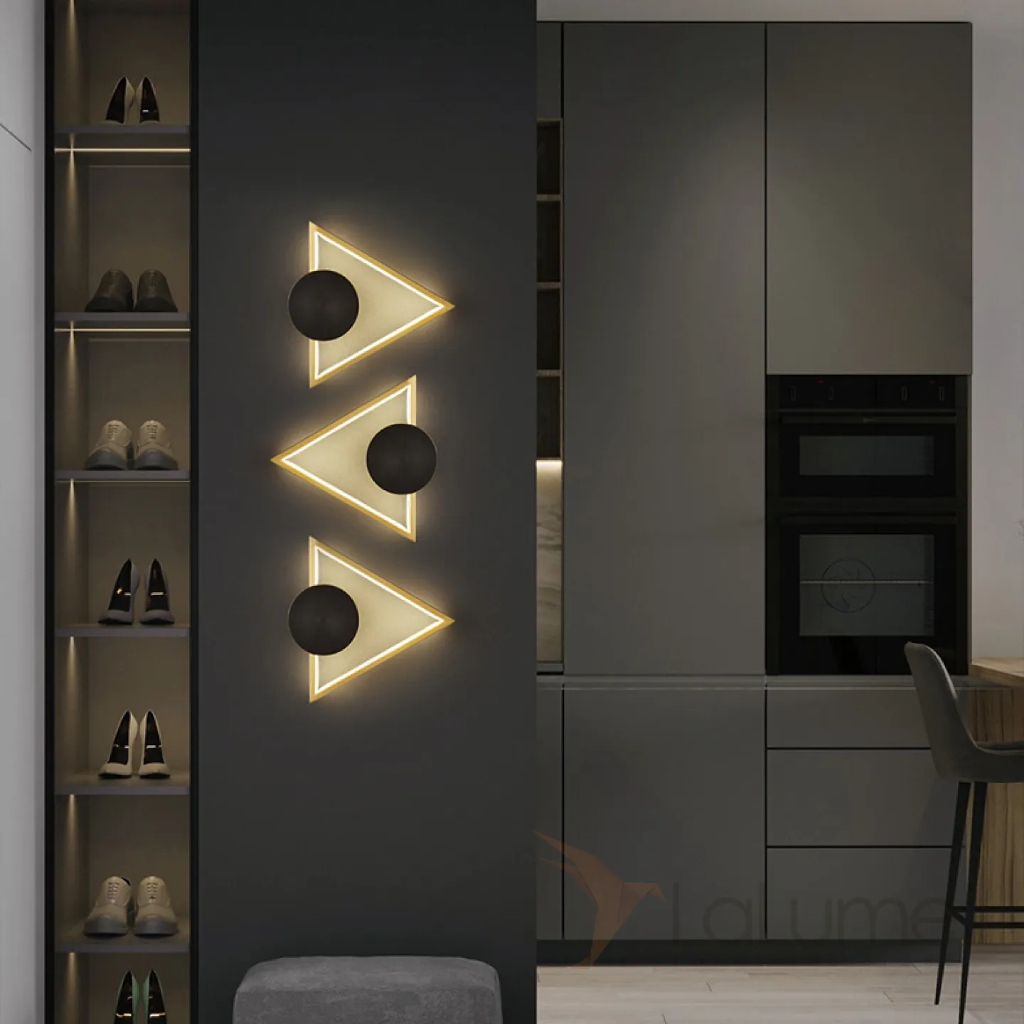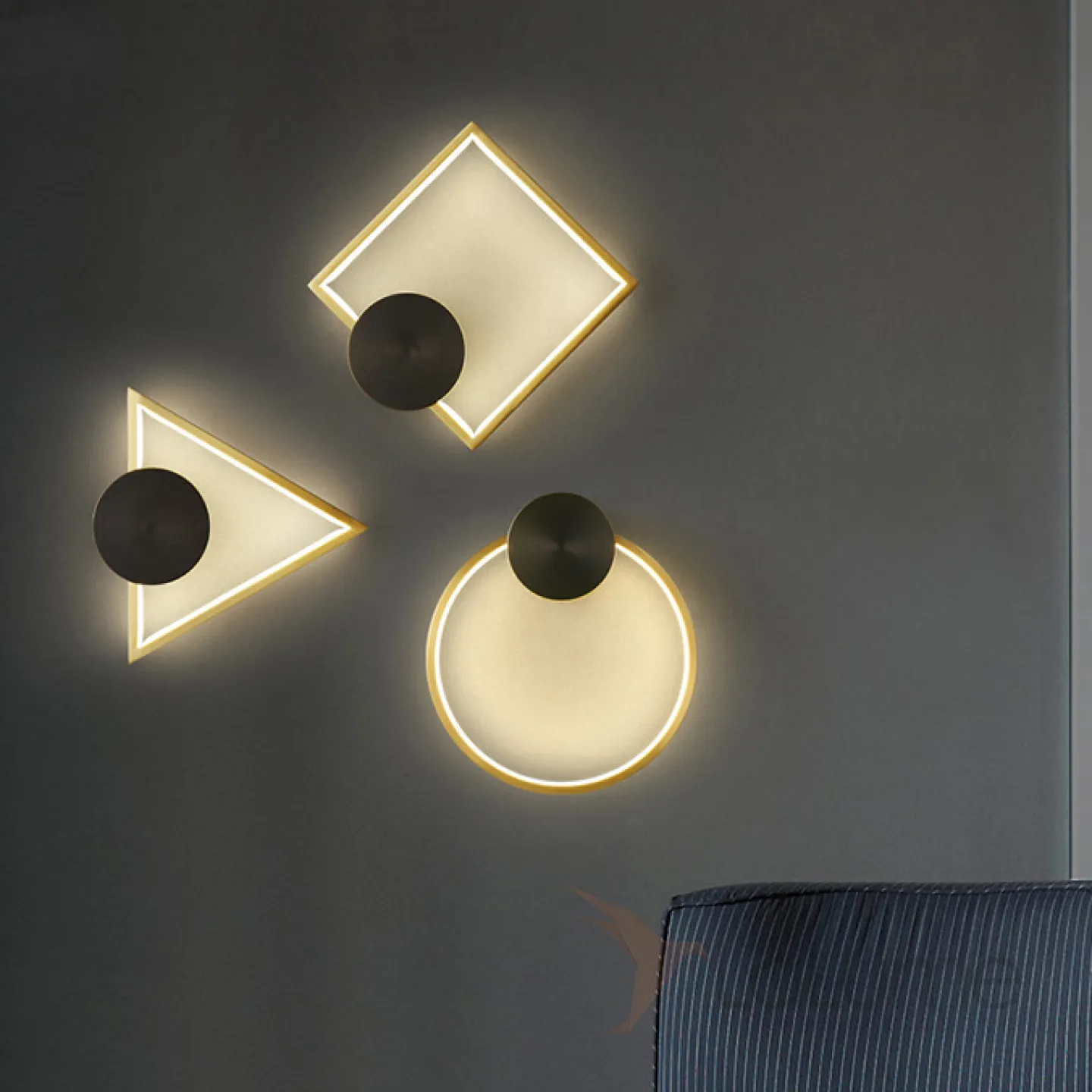 Серия настенных светодиодных светильников c декоративным диском на латунном корпусе геометрической формы WOLKE WIDE L28 Black