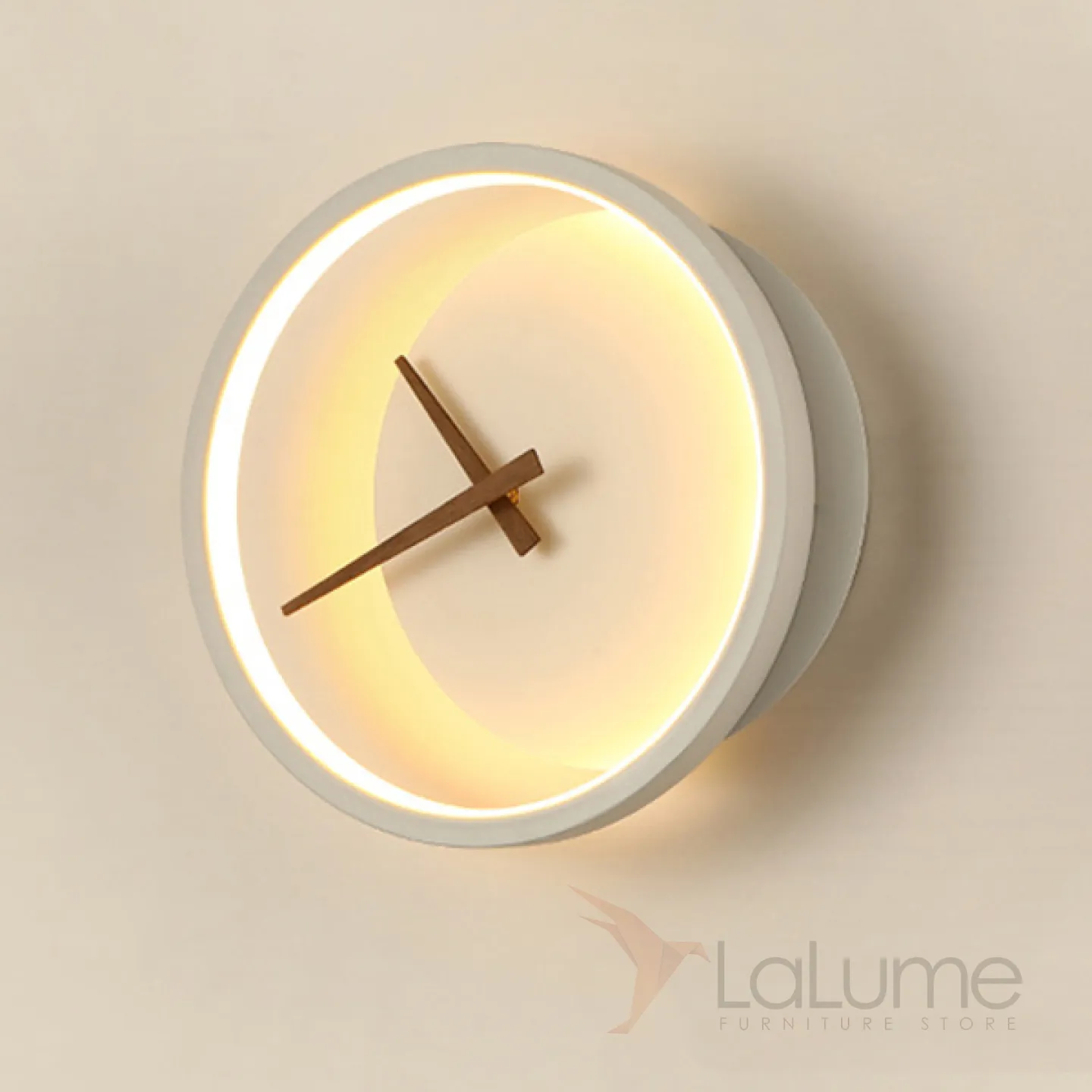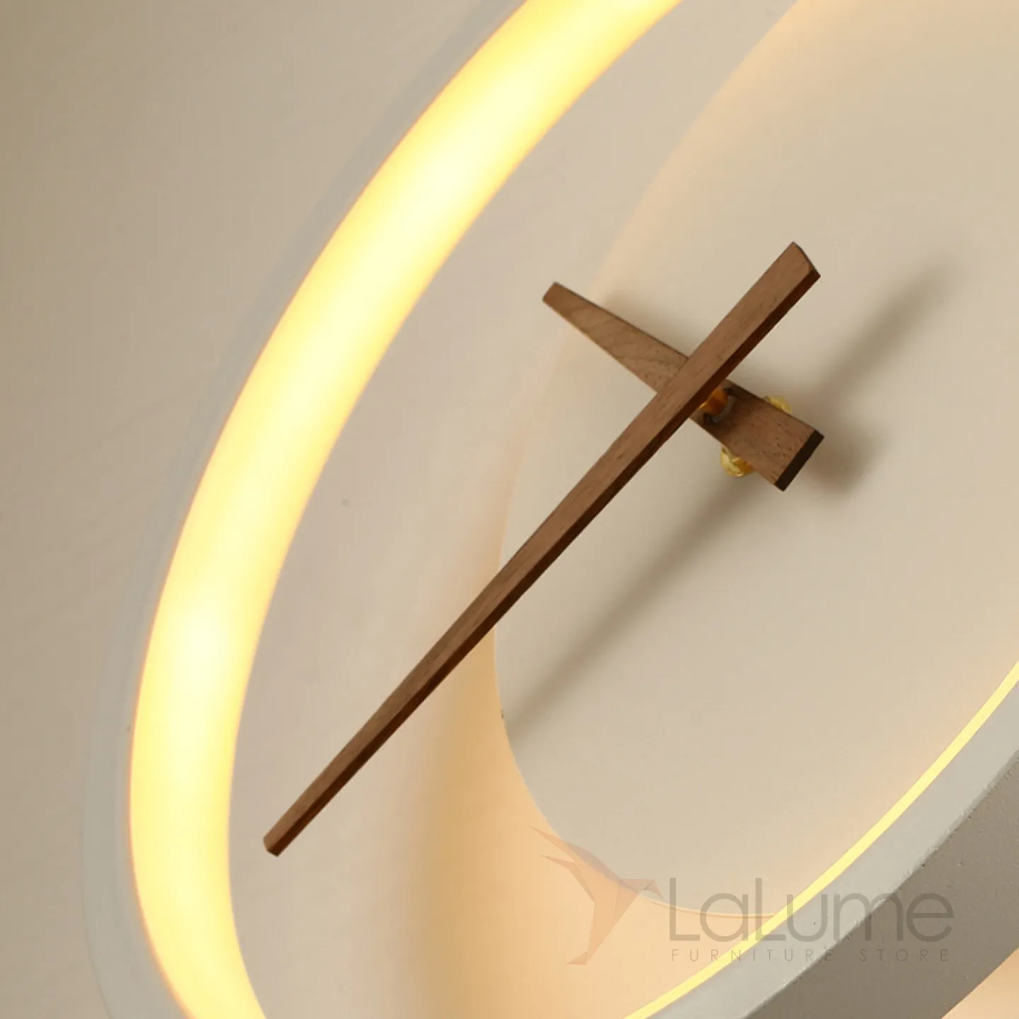 Стрелки часов выполнены из древесины цвета орех.