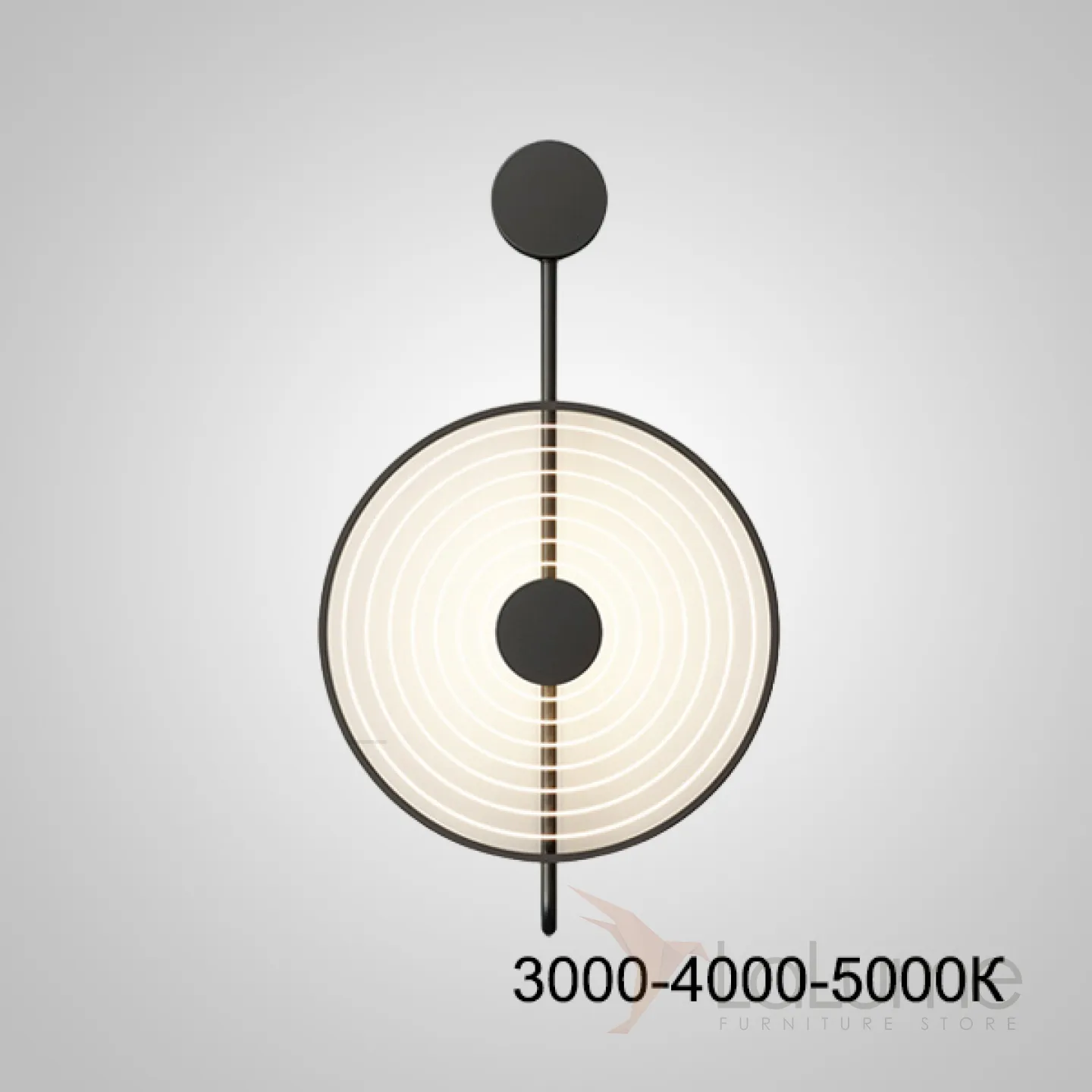 Серия светодиодных бра с прозрачным дисковидным рассеивателем с радиальной гравировкой и прямой штангой с круглыми креплениями WINDSOR Black Трехцветный свет