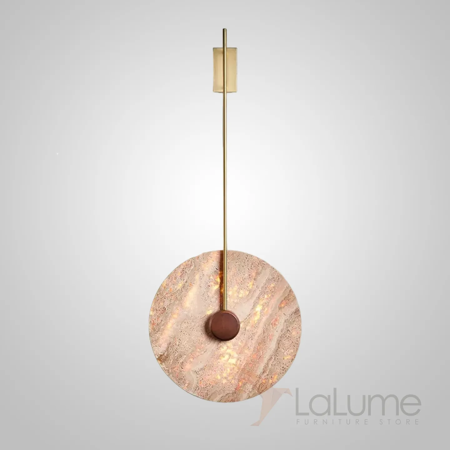 Настенный светодиодный светильник с плоским дисковидным рассеивателем с каменной текстурой и деревянным центром JOAR D40 Brass