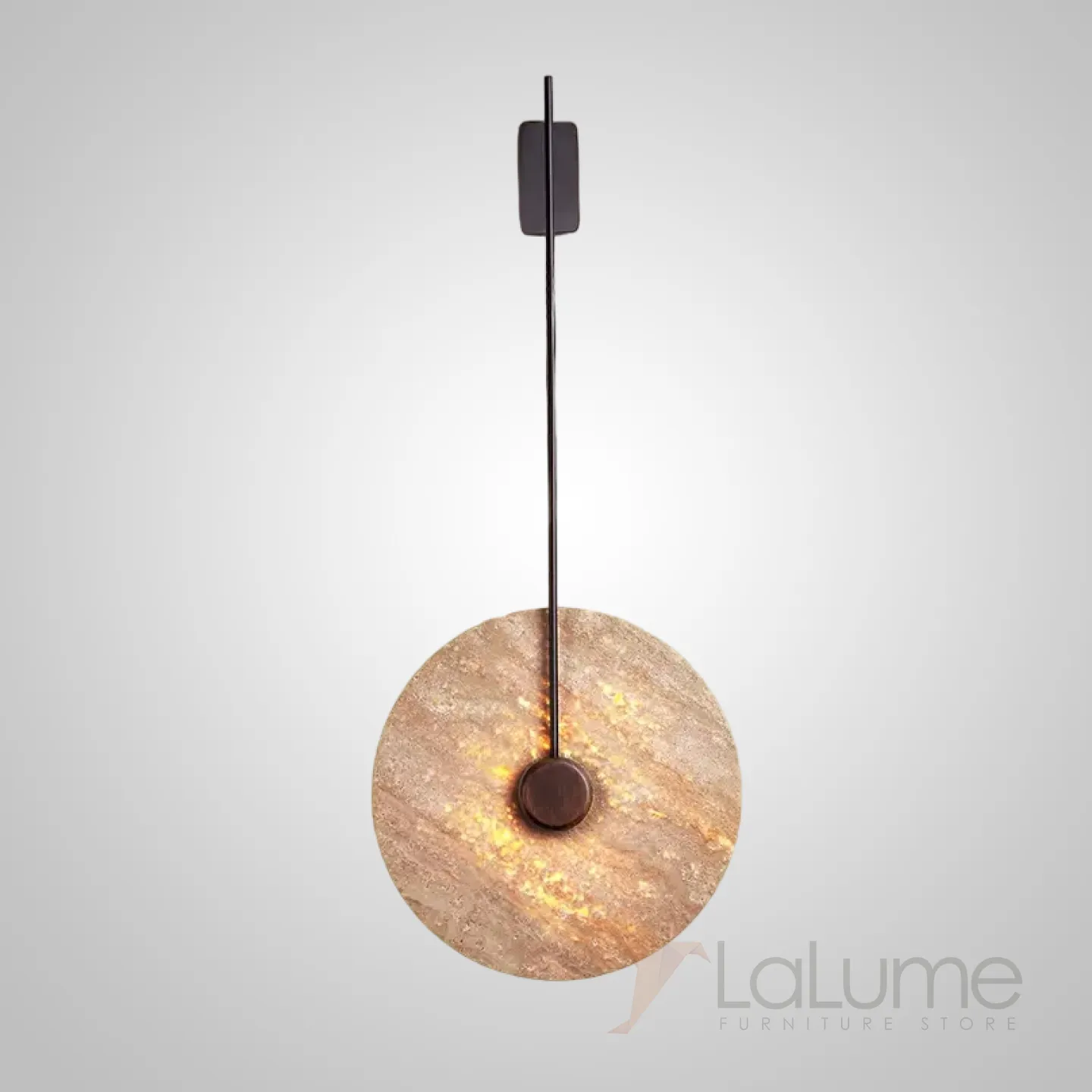 Настенный светодиодный светильник с плоским дисковидным рассеивателем с каменной текстурой и деревянным центром JOAR D40 Black