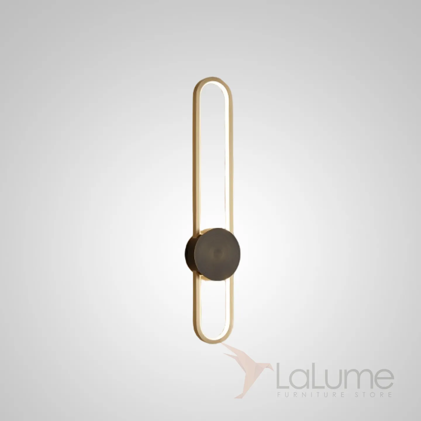 Серия настенных светодиодных светильников с латунным диском на вытянутом закольцованном корпусе HEIDY L H60 Brass Black