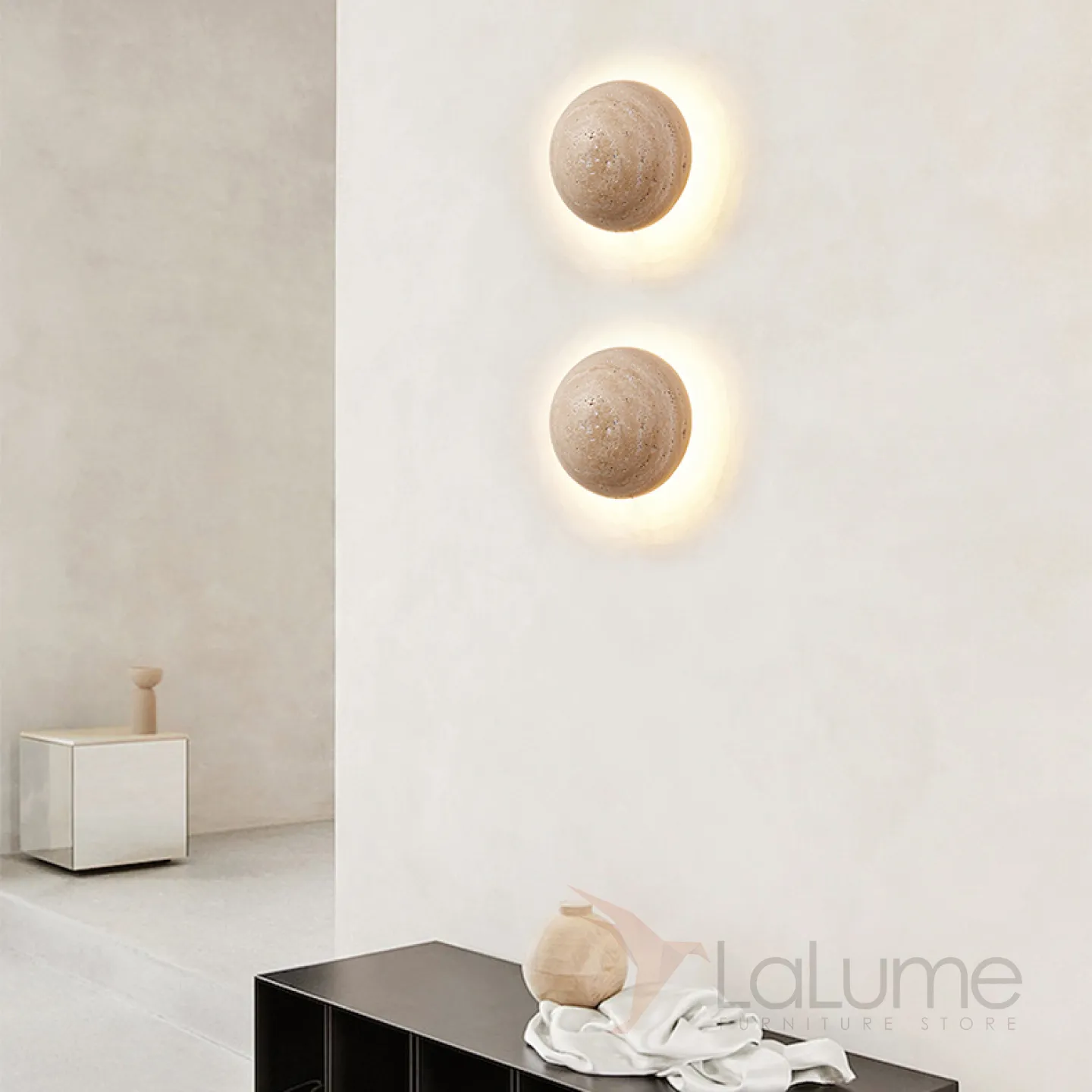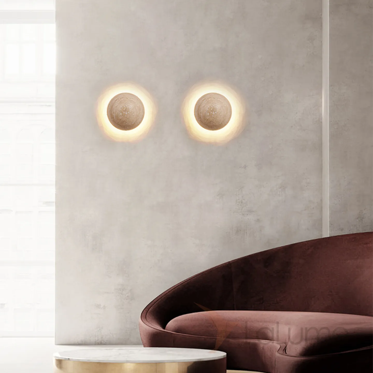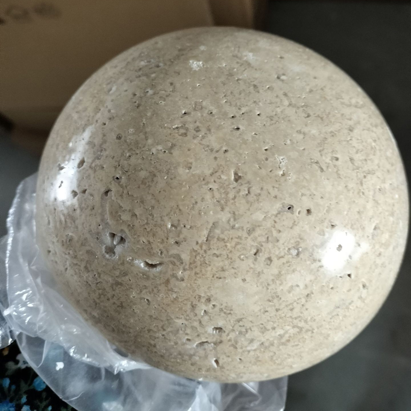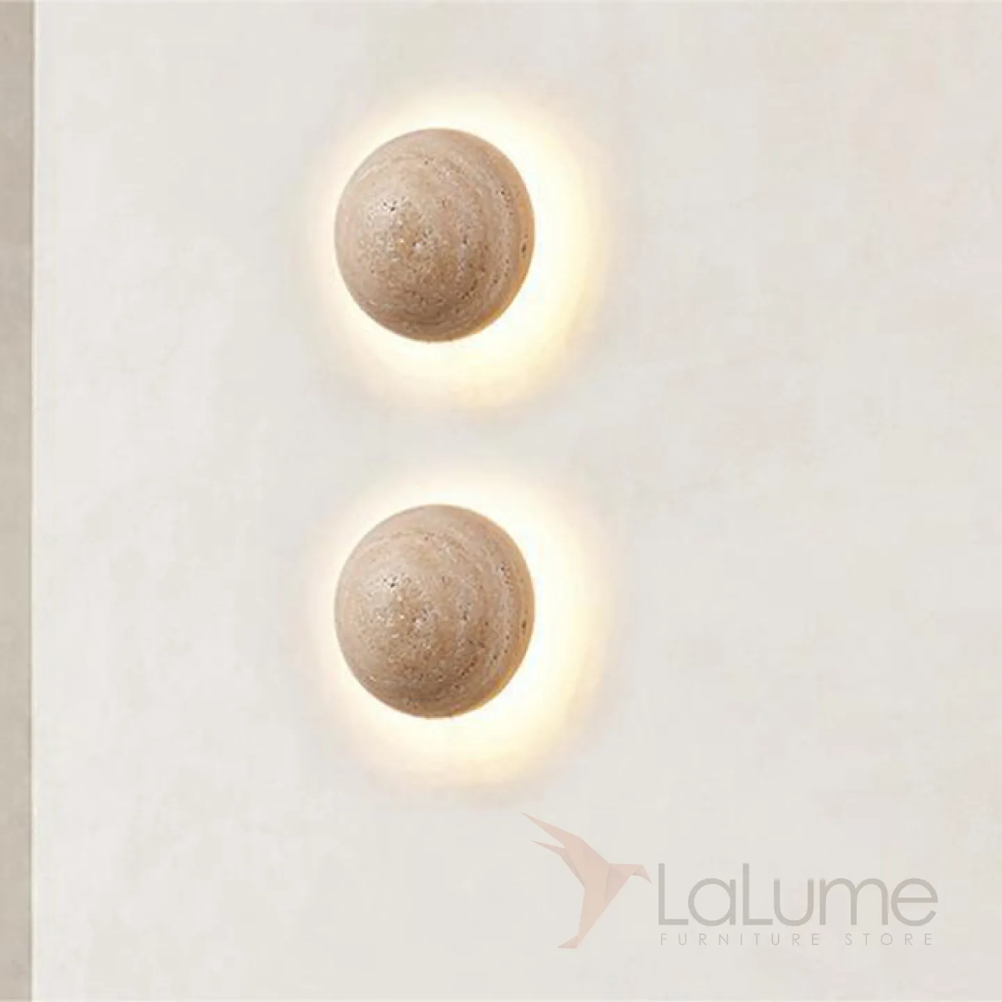 Настенный светодиодный светильник с шаровидным корпусом из желтого камня травертина POVL WALL Без проводного выключателя