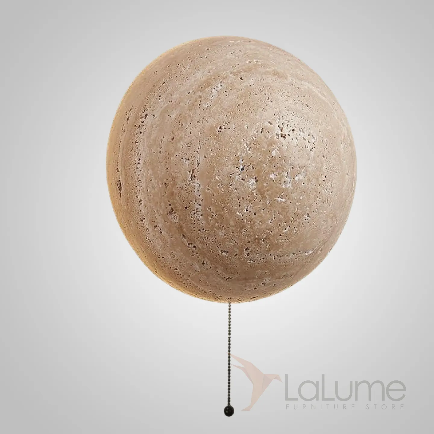 Настенный светодиодный светильник с шаровидным корпусом из желтого камня травертина POVL WALL С выключателем цепочкой